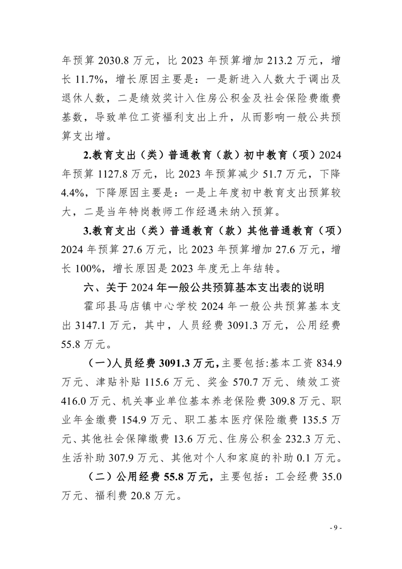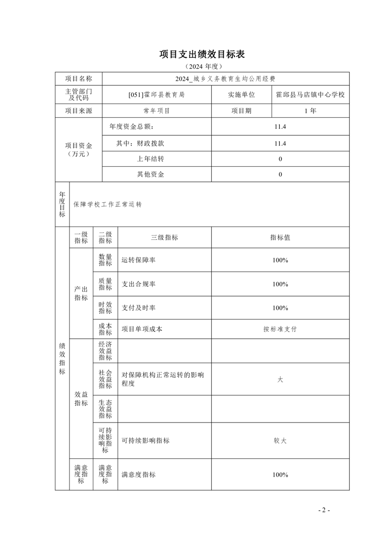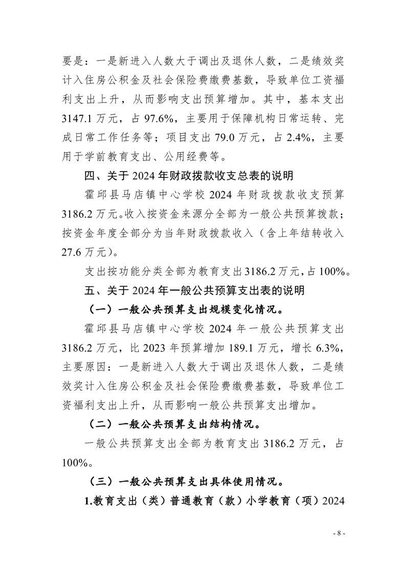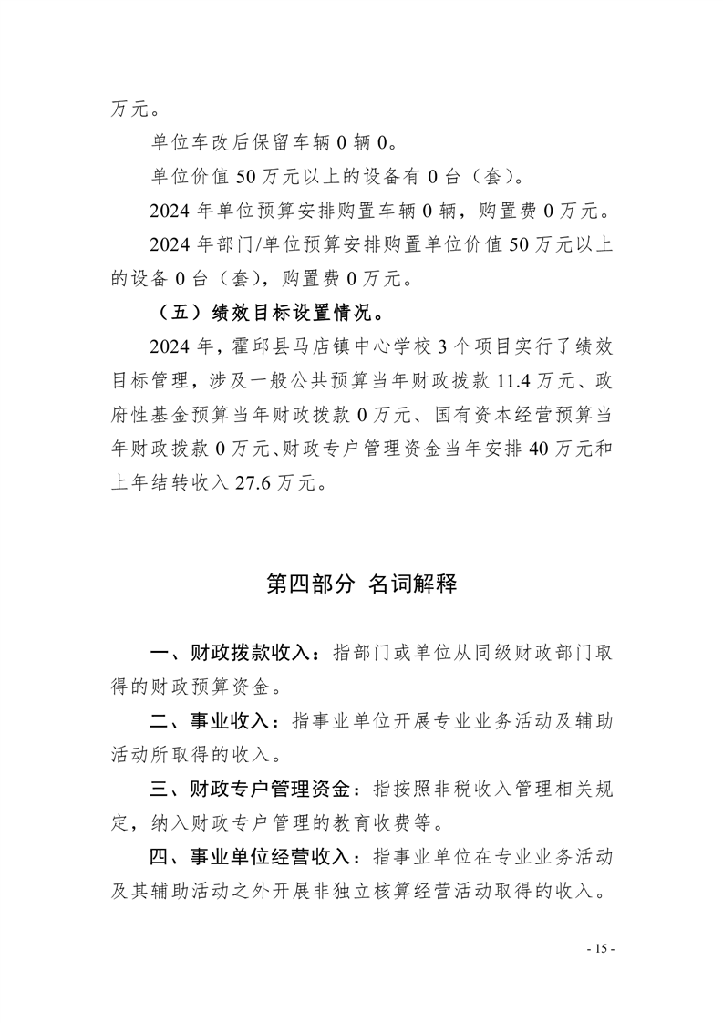 霍邱县马店镇中心学校2024 年单位预算公开