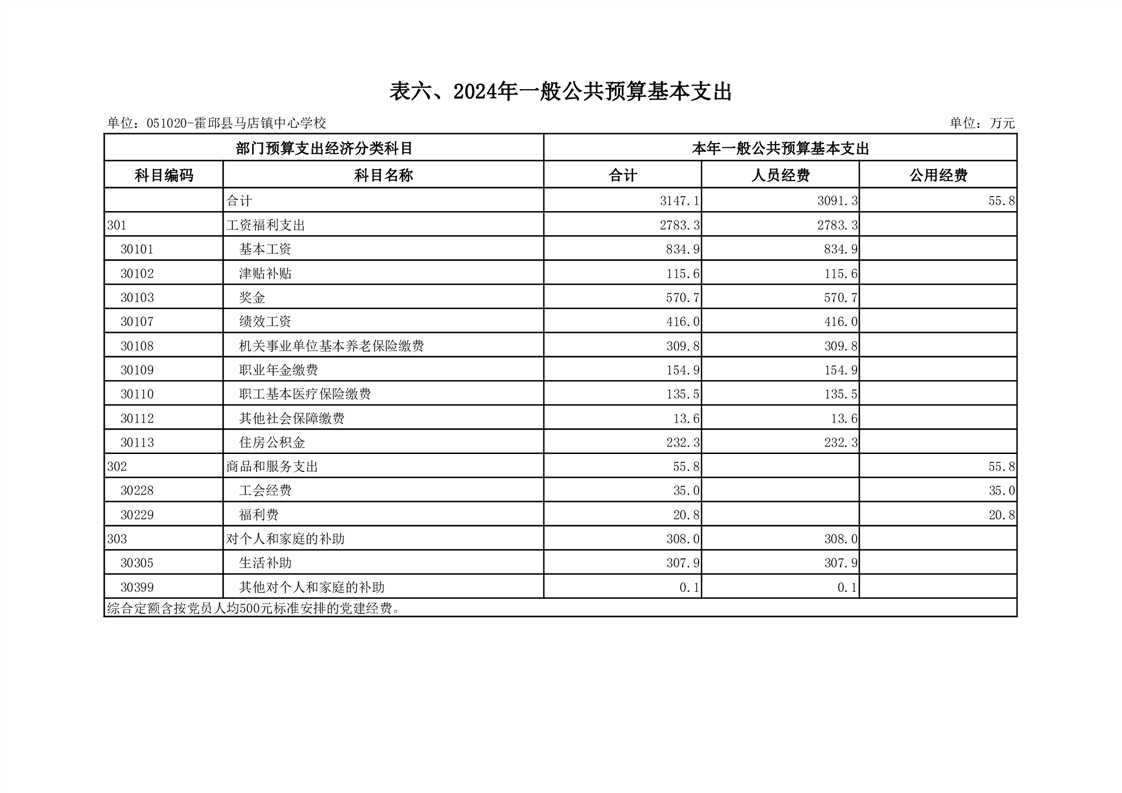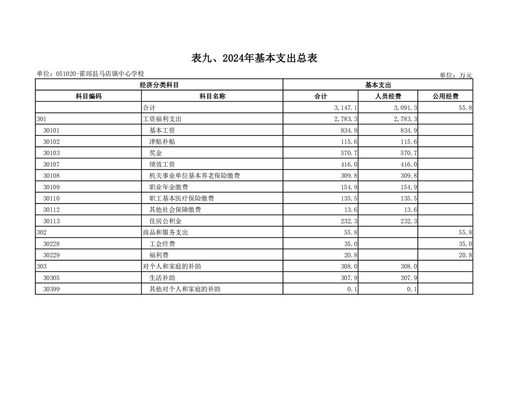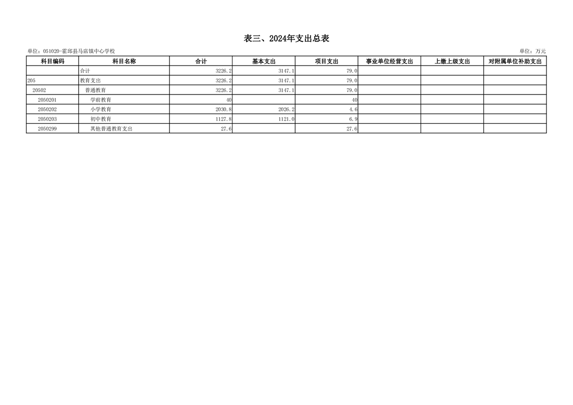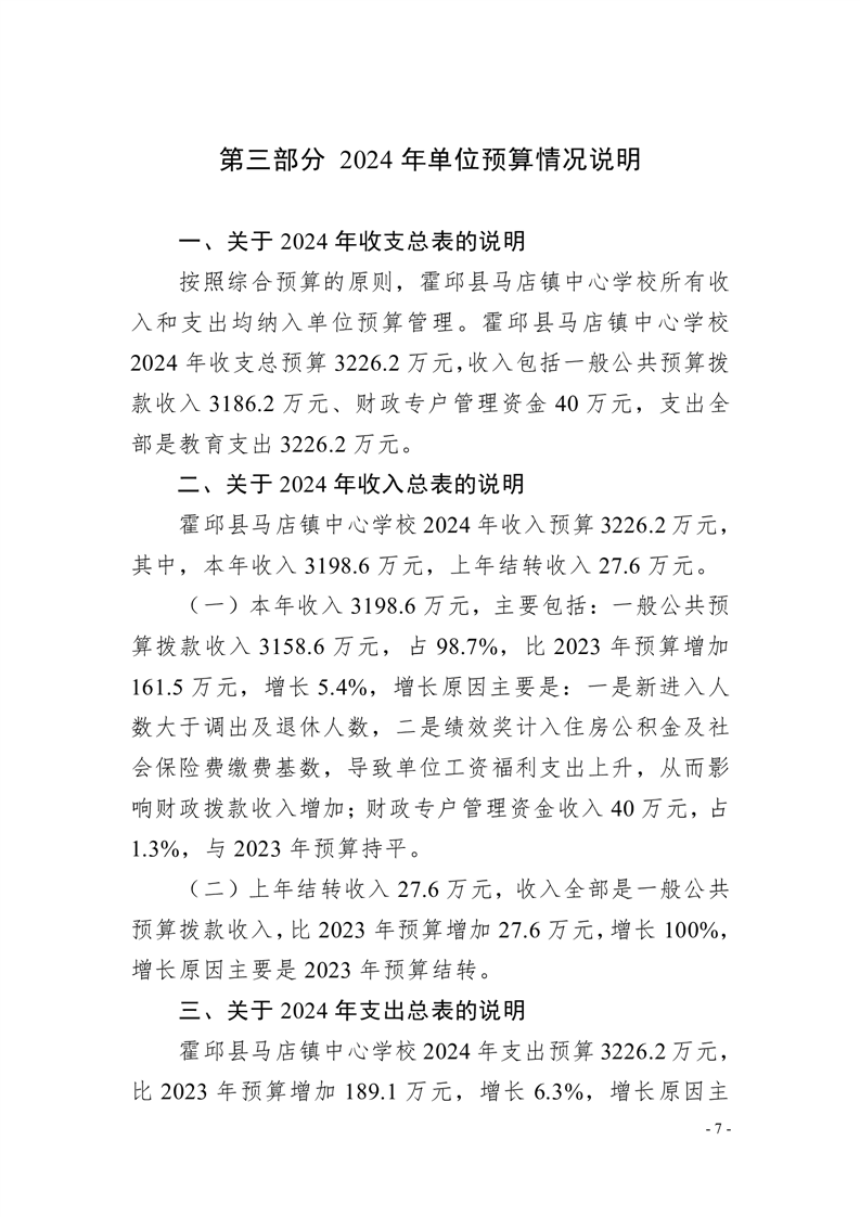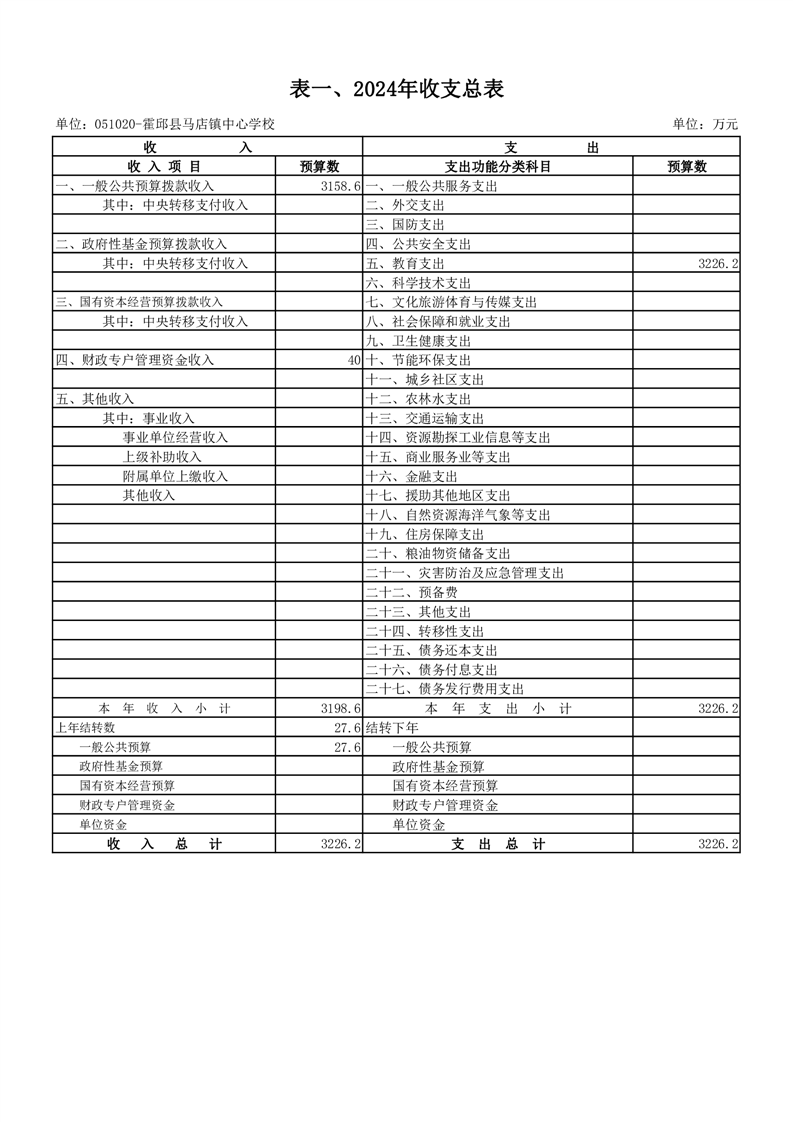 霍邱县马店镇中心学校2024 年单位预算公开