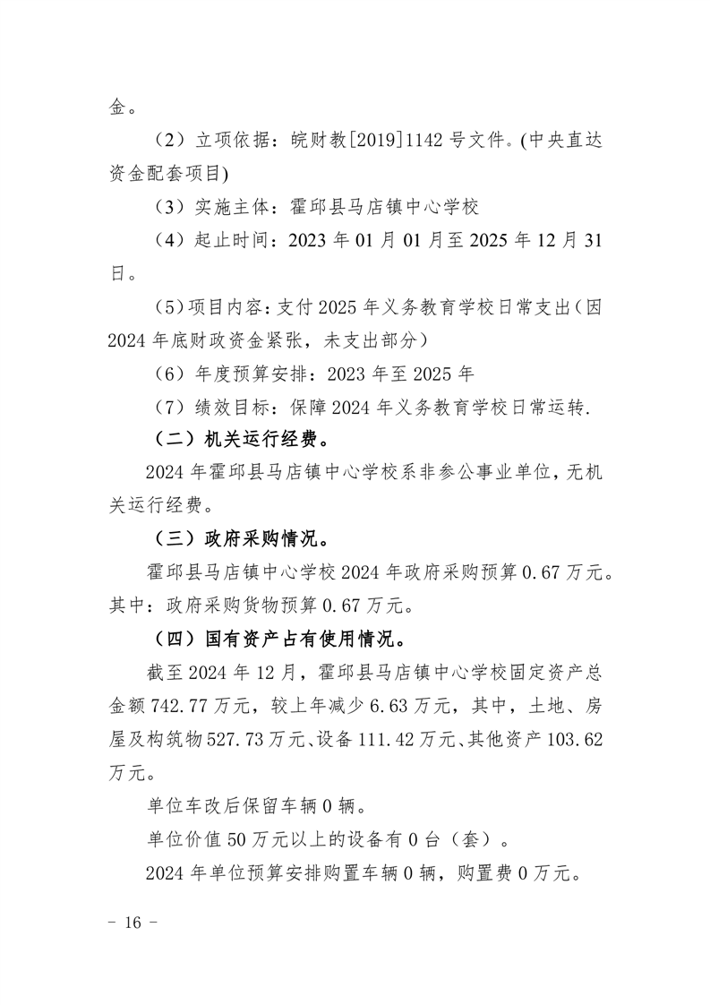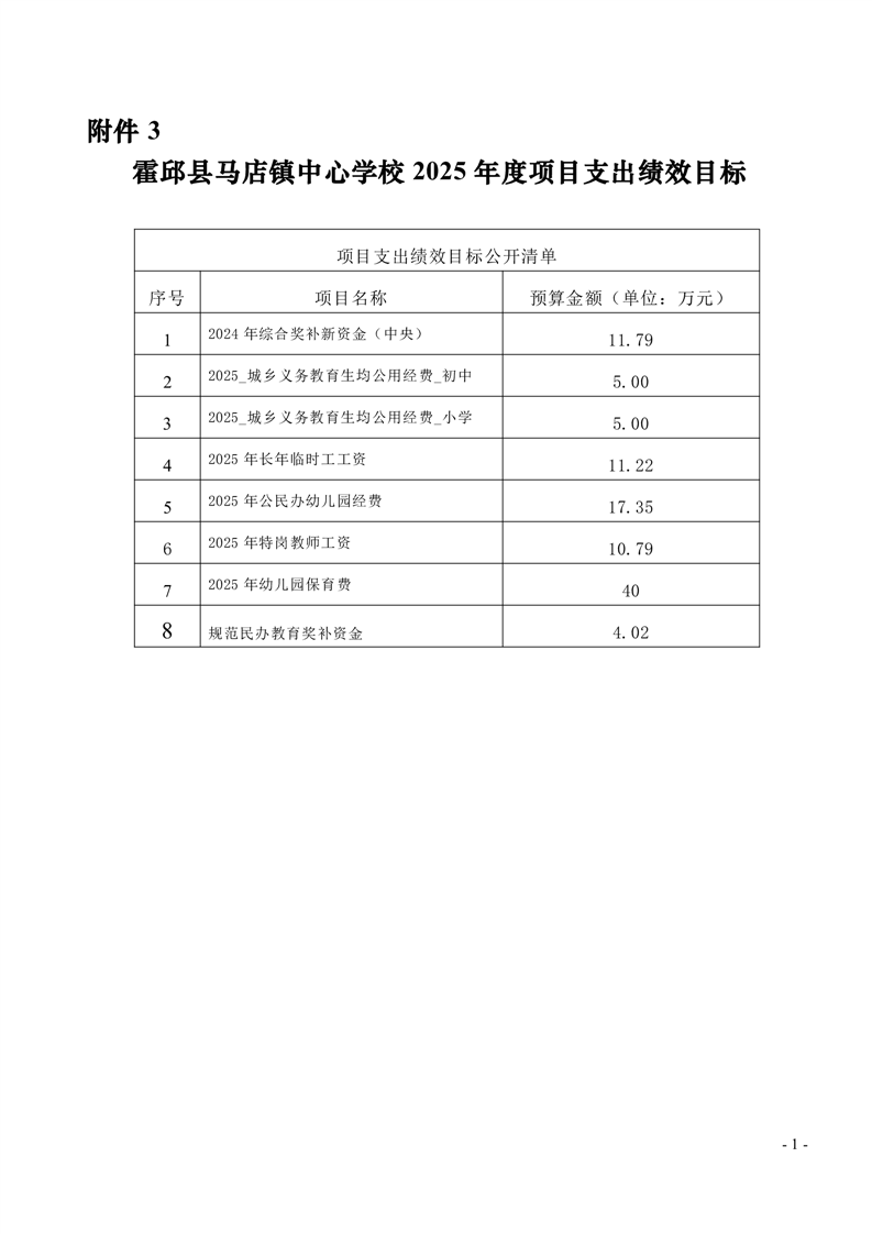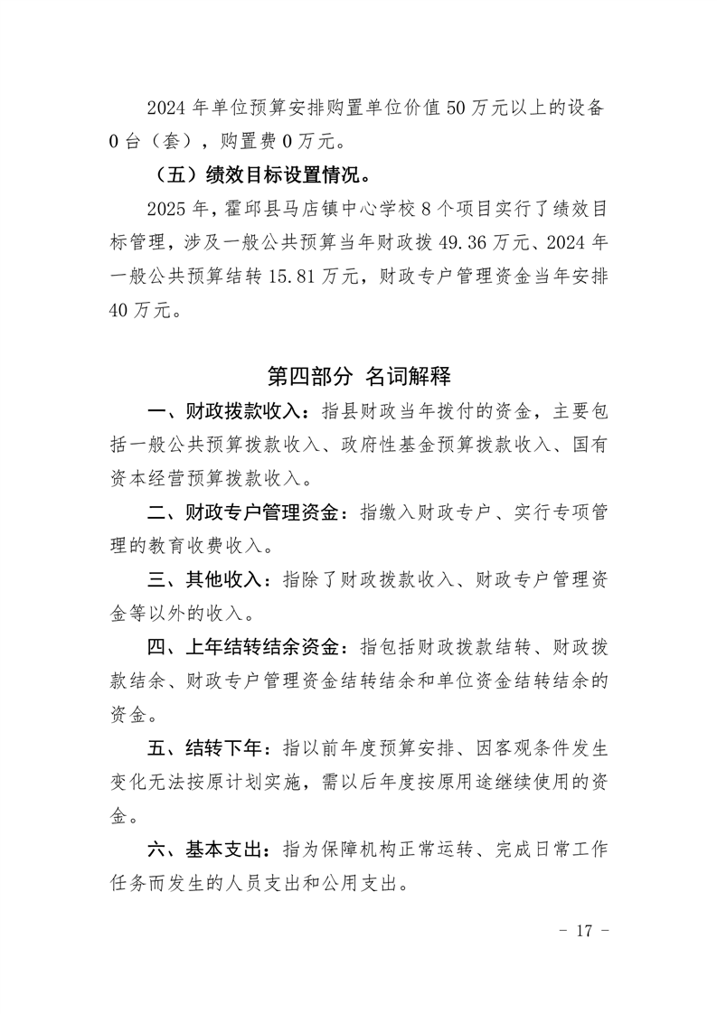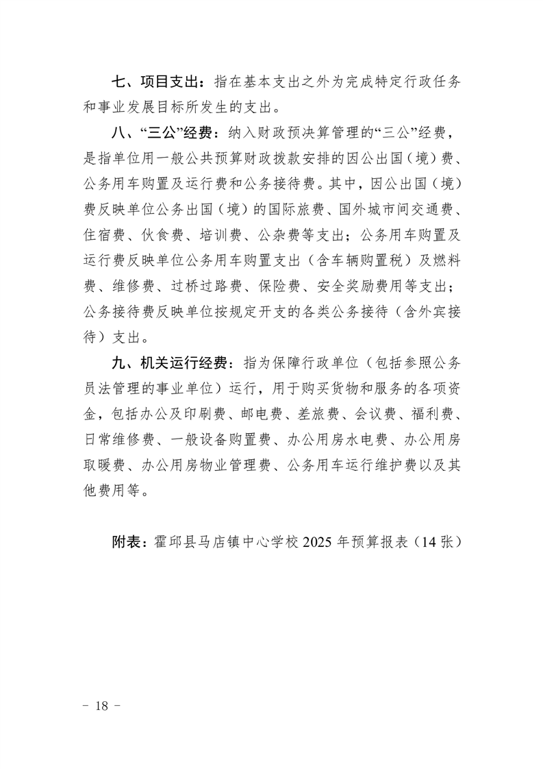 霍邱县马店镇中心学校 2025 年单位预算公开