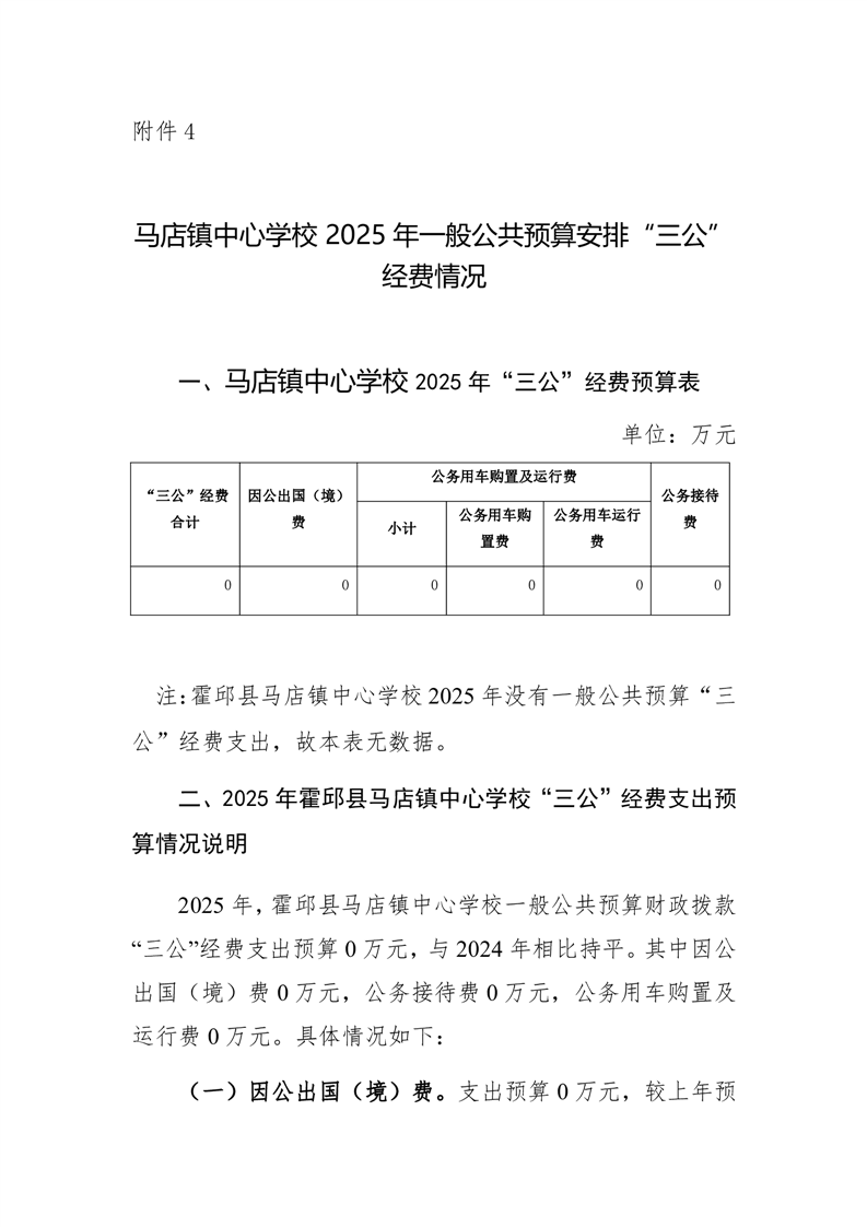 马店镇中心学校 2025 年一般公共预算安排“三公”经费情况