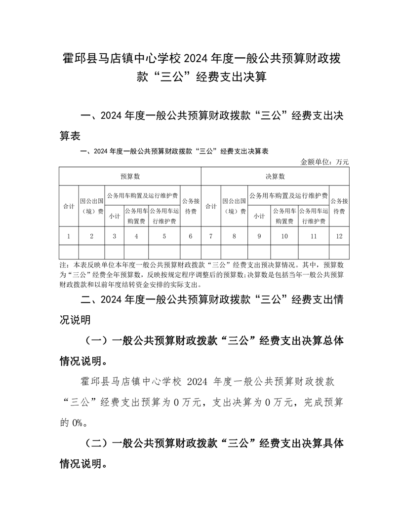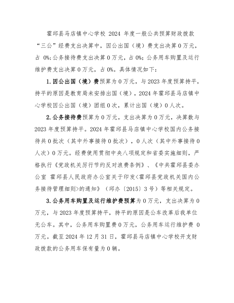 霍邱县马店镇中心学校 2024 年度一般公共预算财政拨款“三公”经费支出决算