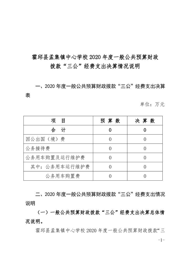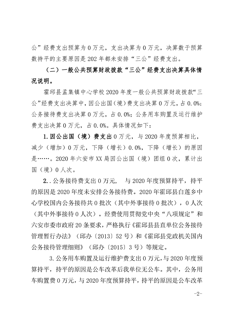 霍邱县孟集镇中心学校2020年”三公“经费决算公开