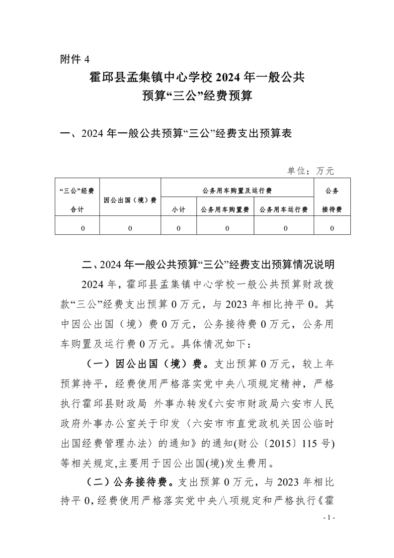 霍邱县孟集镇中心学校 2024 年一般公共预算“三公”经费预算