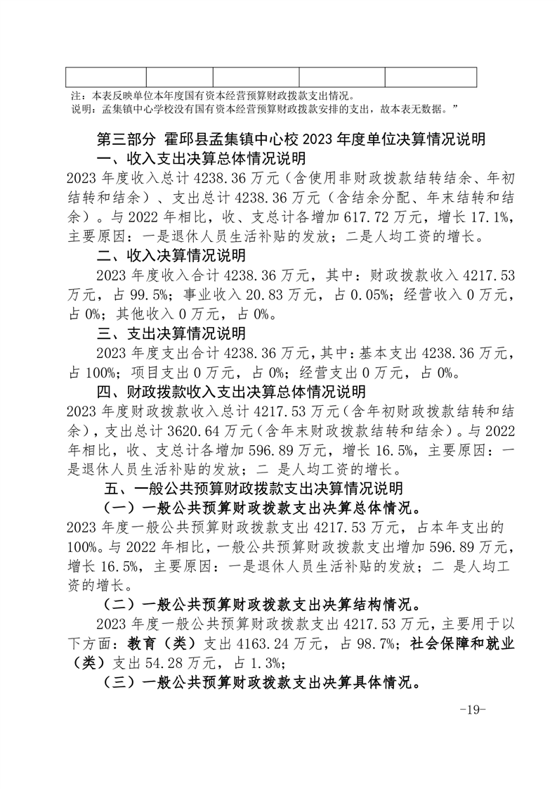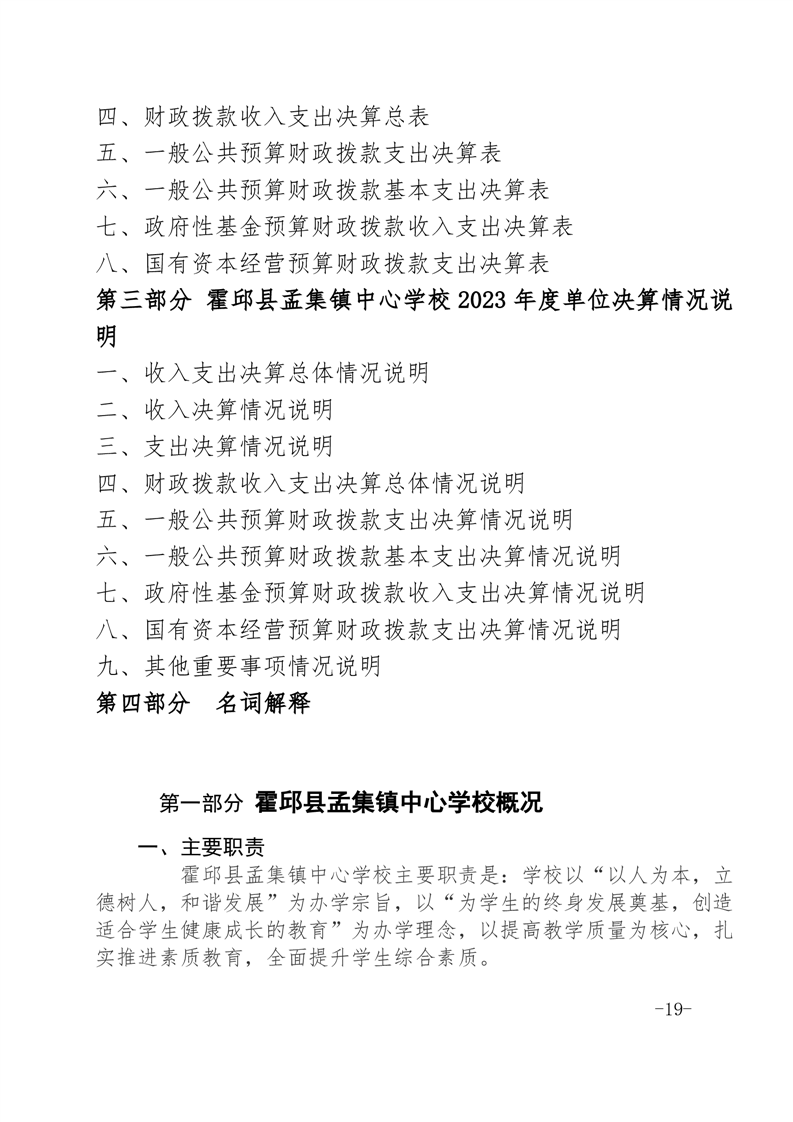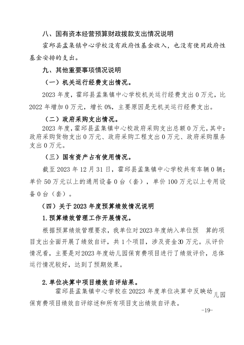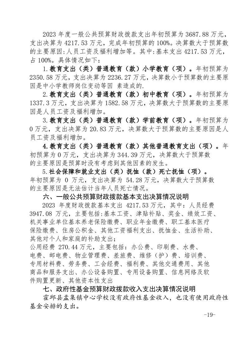 霍邱县孟集镇中心学校 2023 年度单位决算