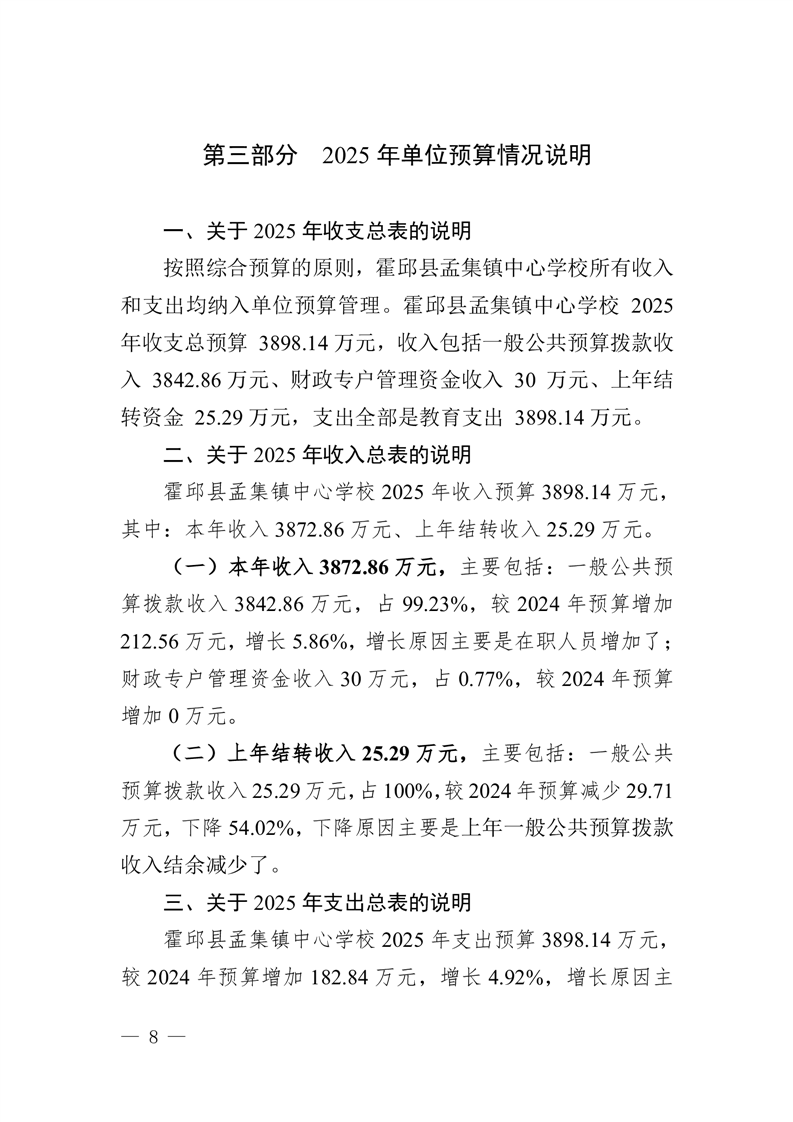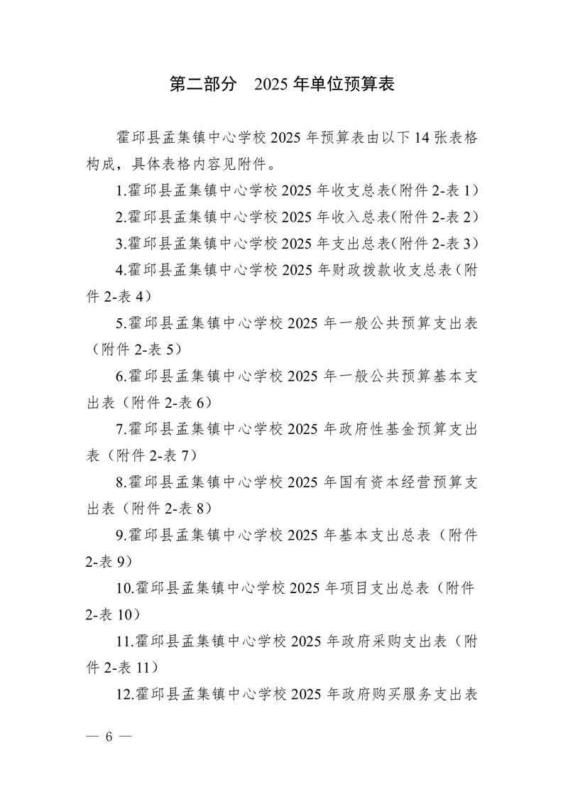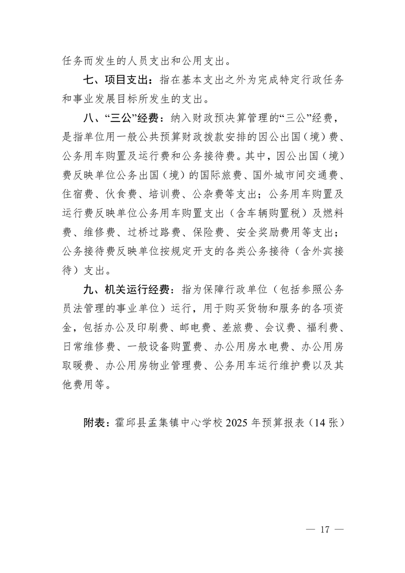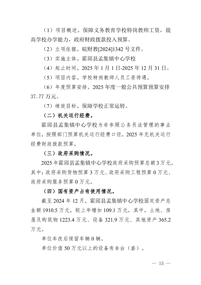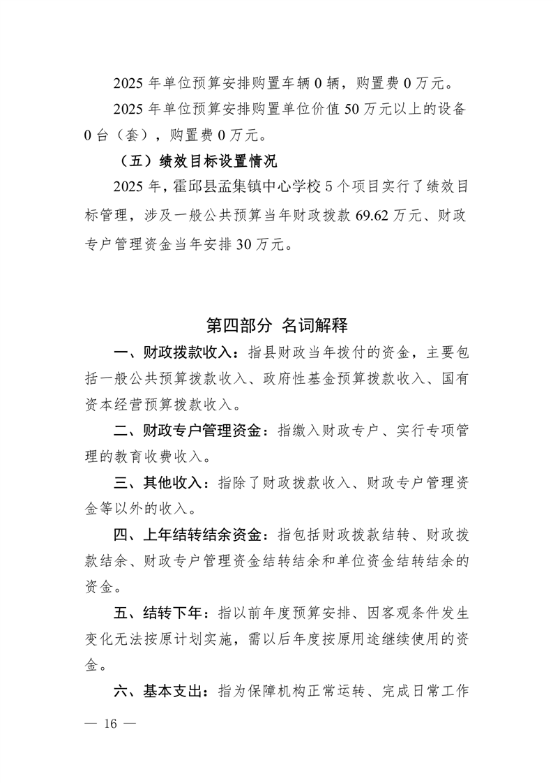 霍邱县孟集镇中心学校2025 年单位预算公开