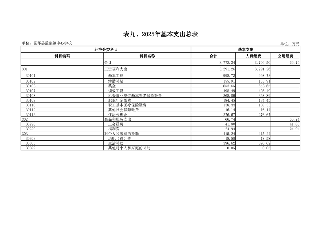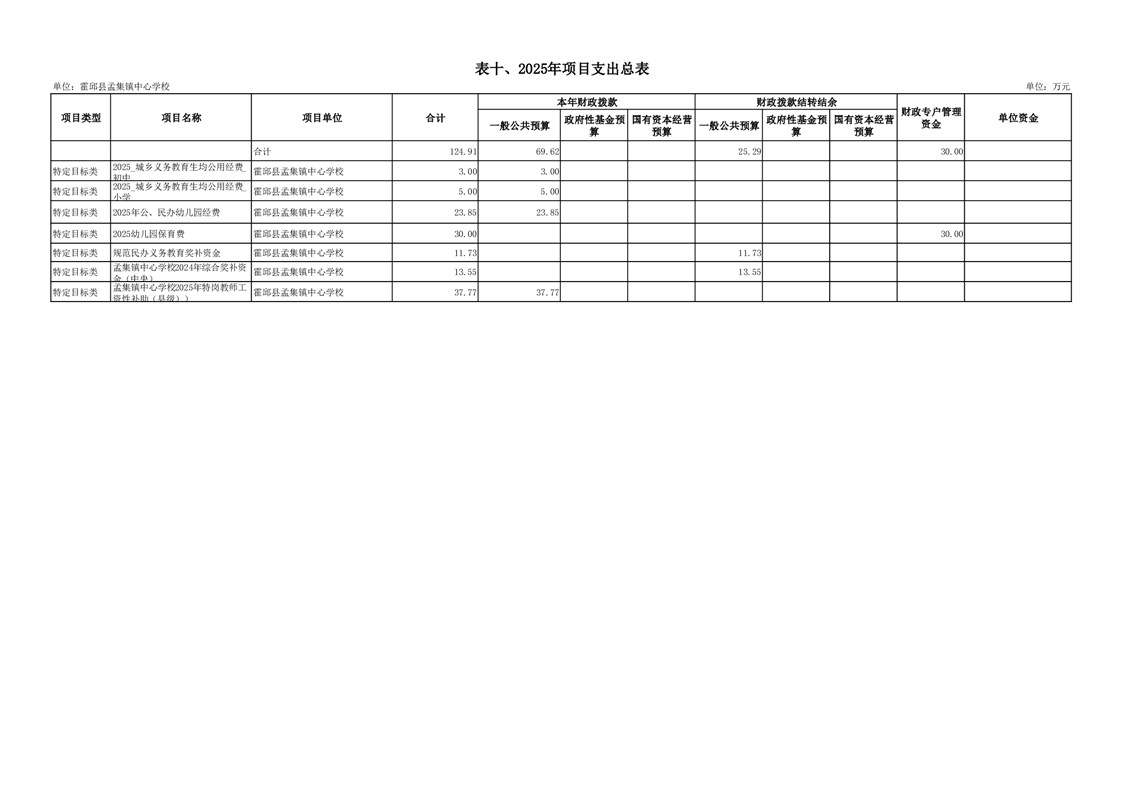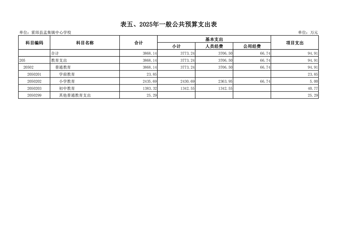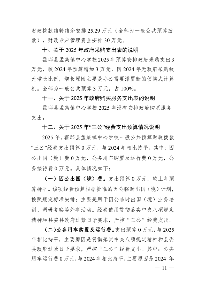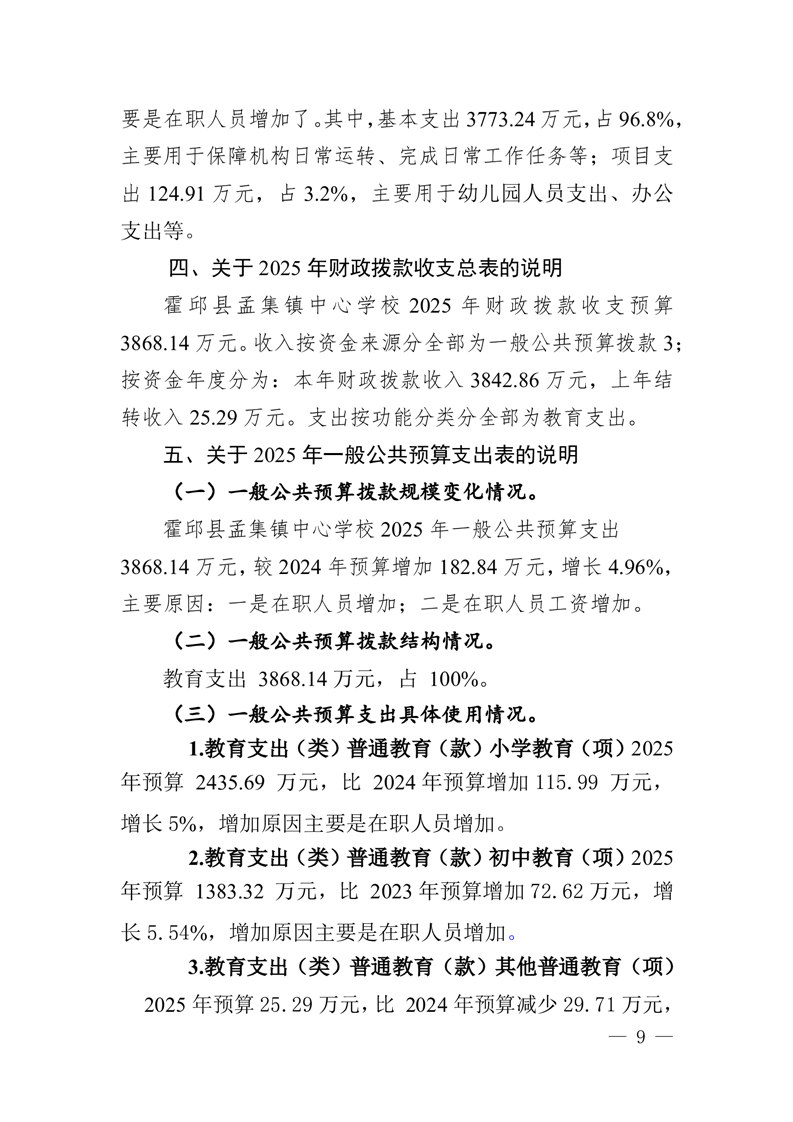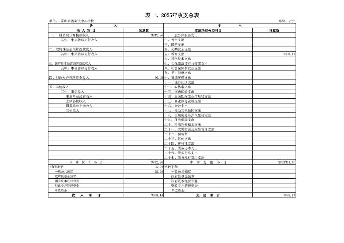 霍邱县孟集镇中心学校2025 年单位预算公开