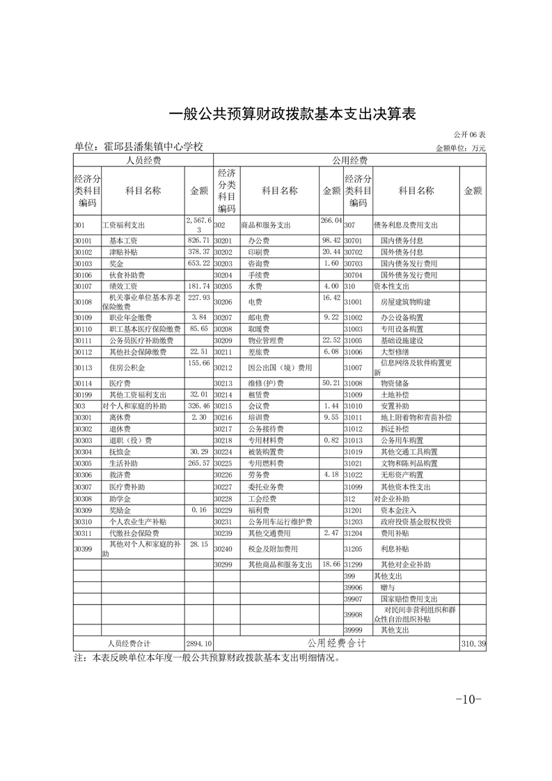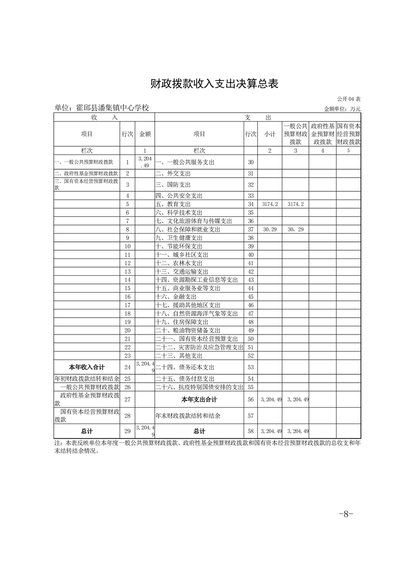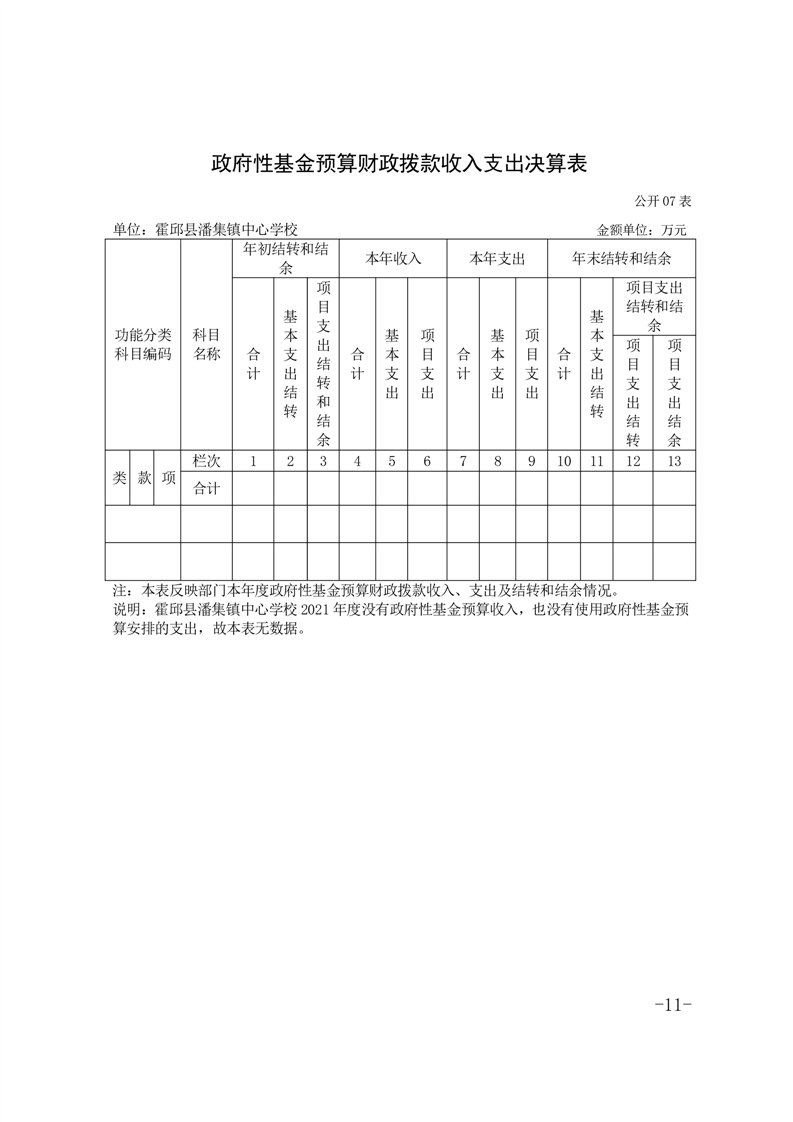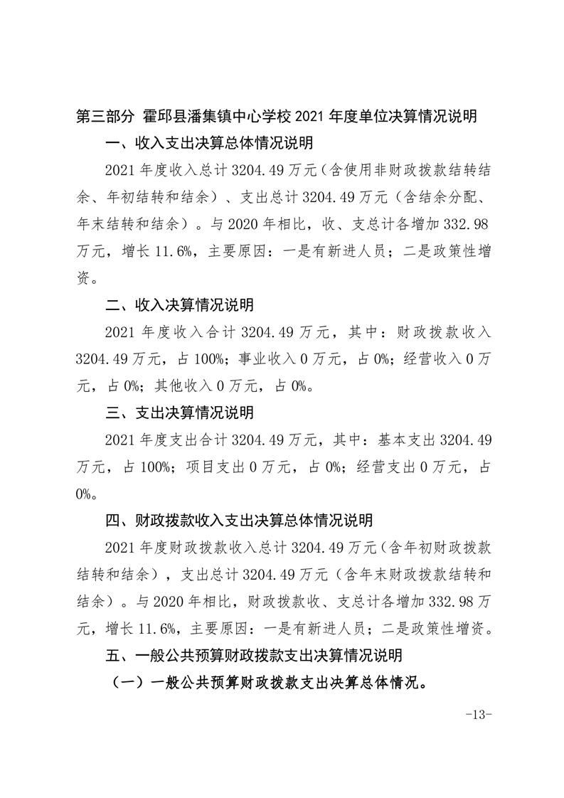霍邱县潘集镇中心学校2021年度单位决算公开