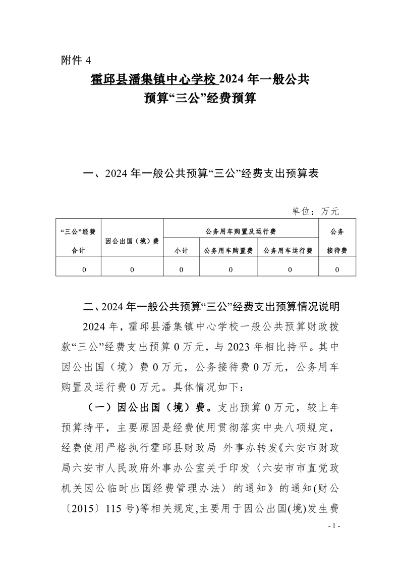 霍邱县潘集镇中心学校 2024 年一般公共预算“三公”经费预算