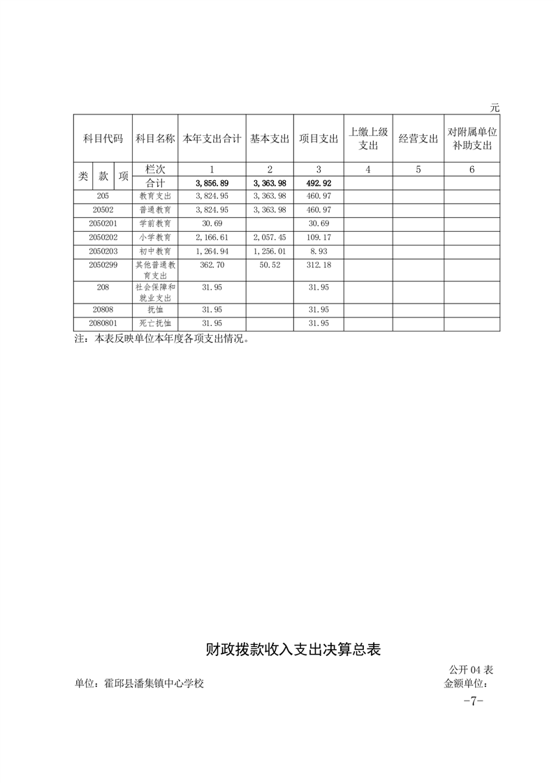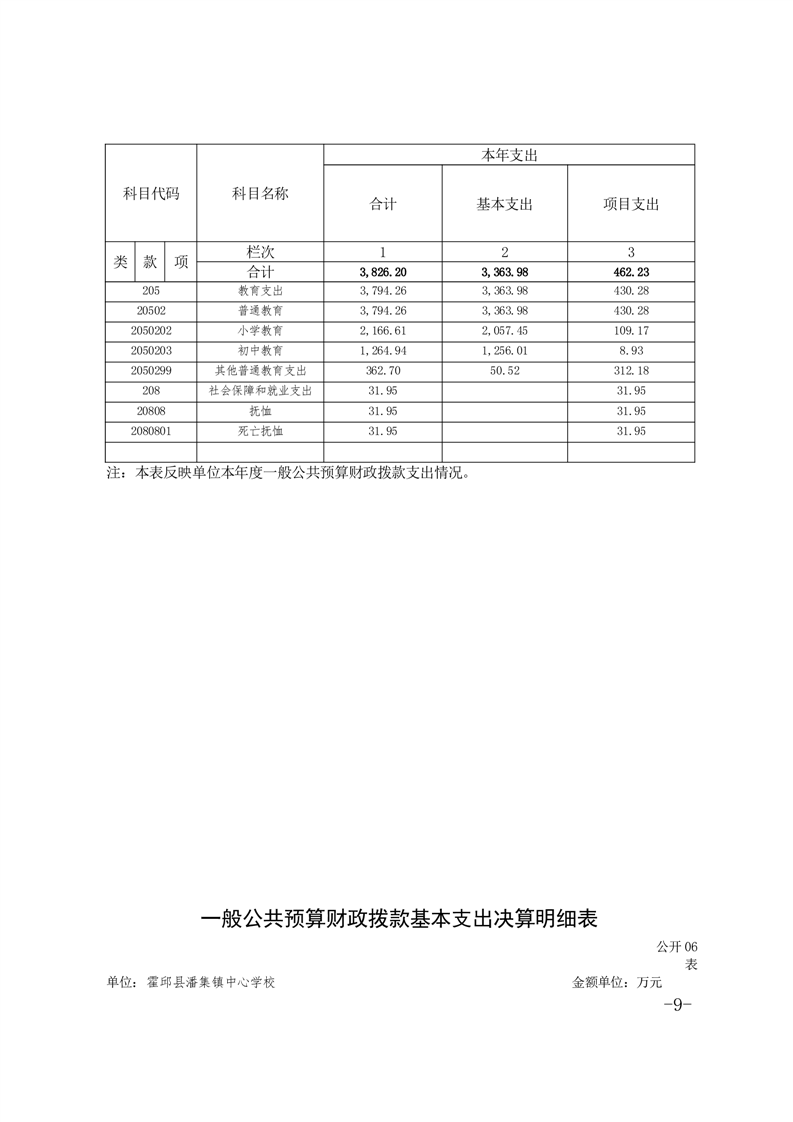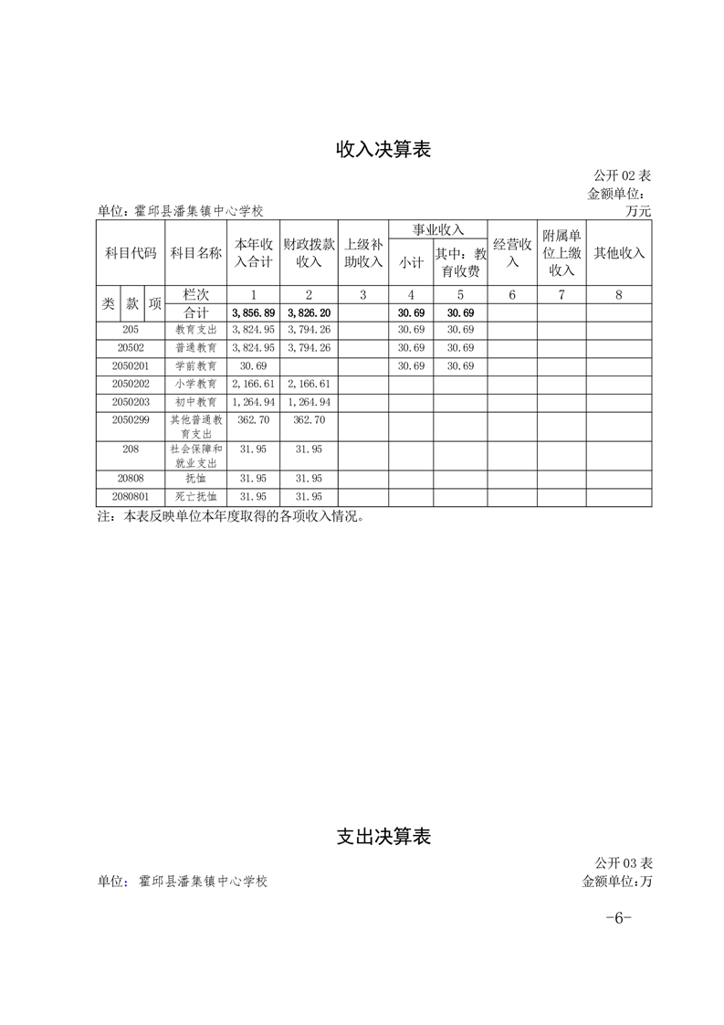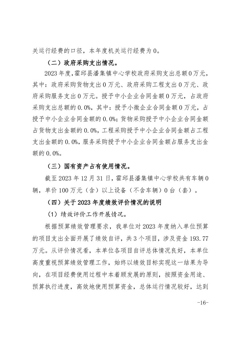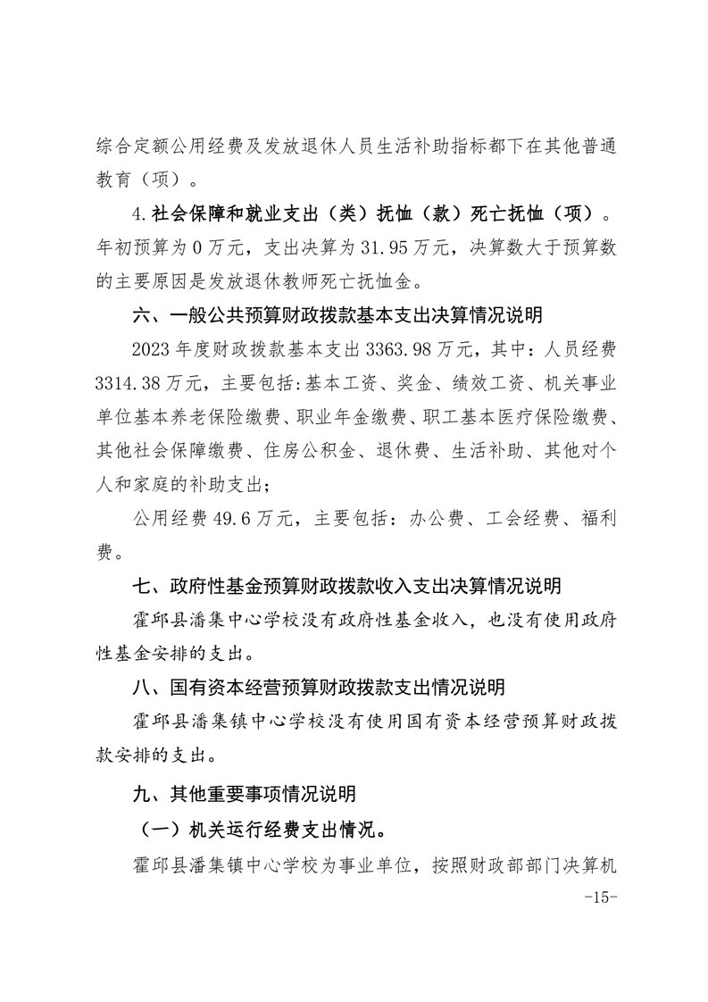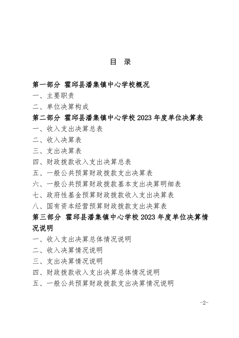 霍邱县潘集镇中心学校 2023 年度单位决算