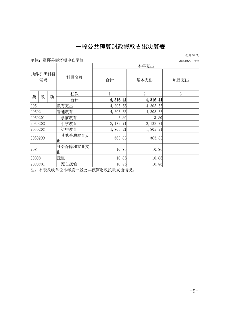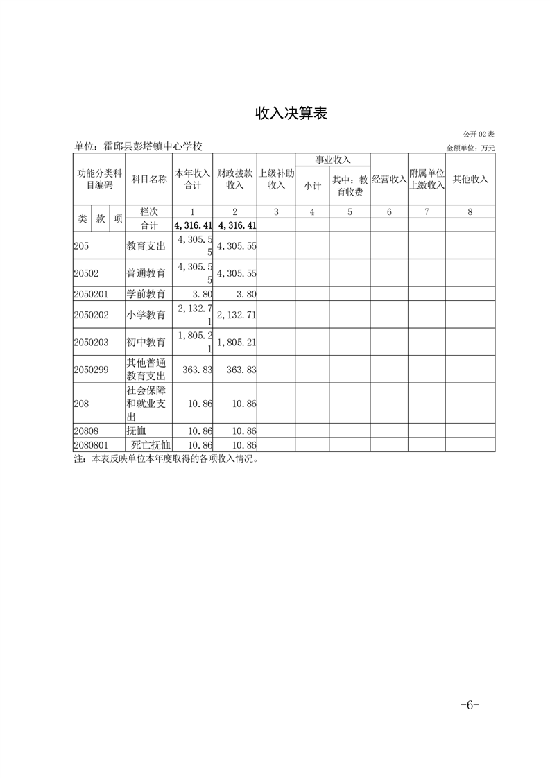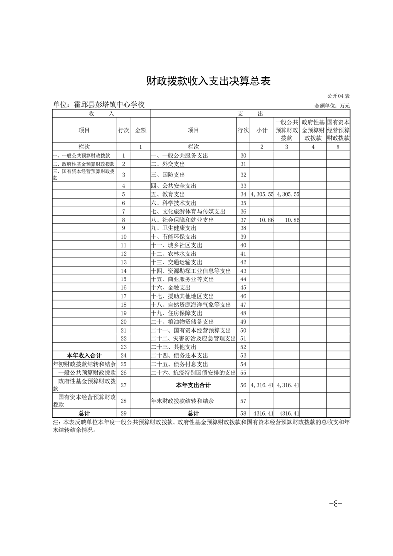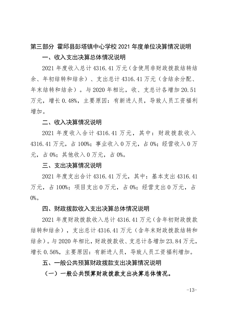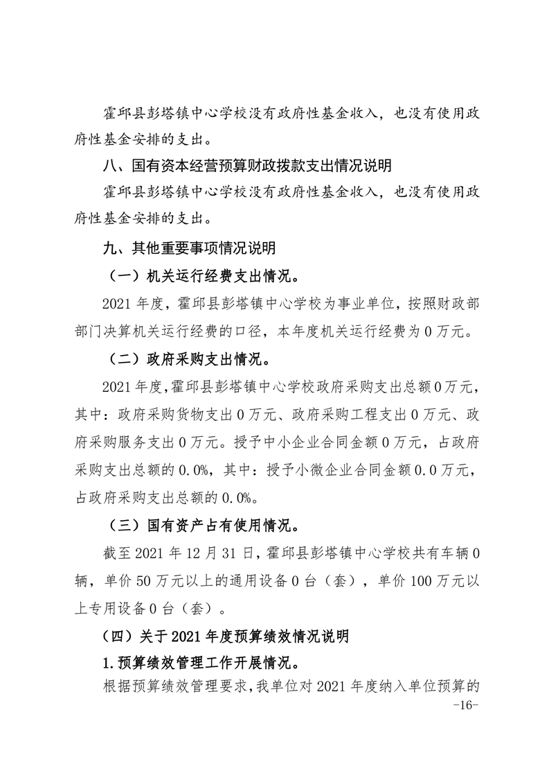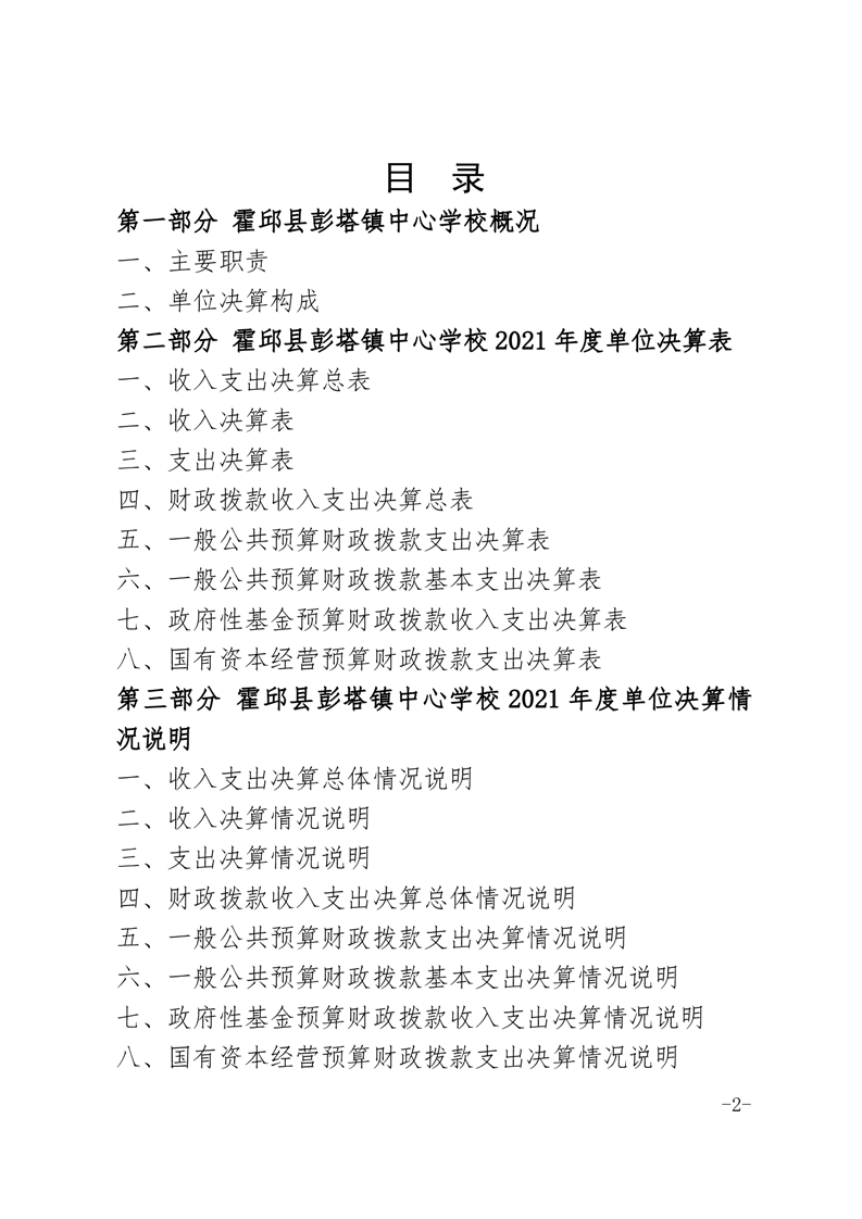 霍邱县彭塔镇中心学校2021年单位决算公开