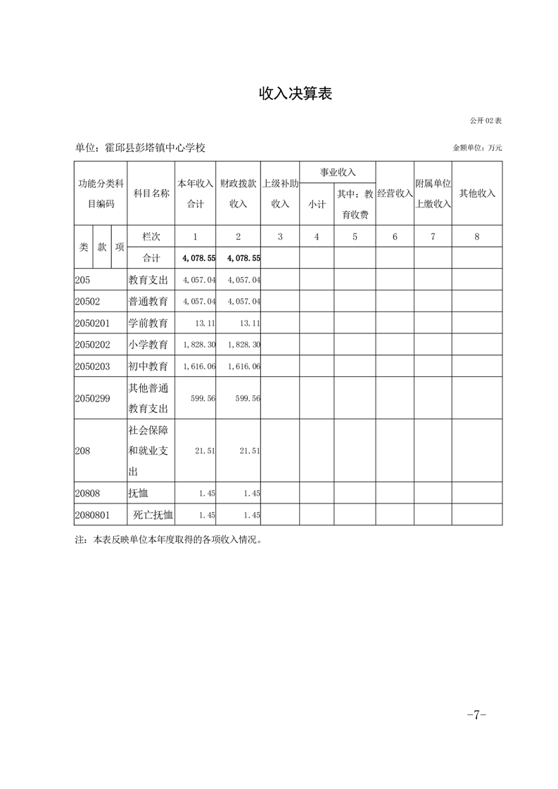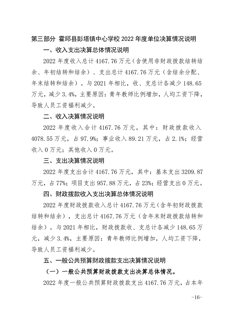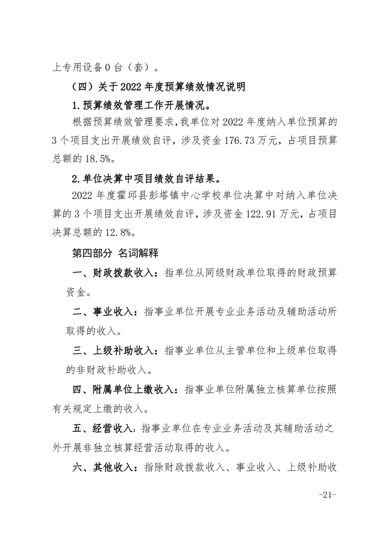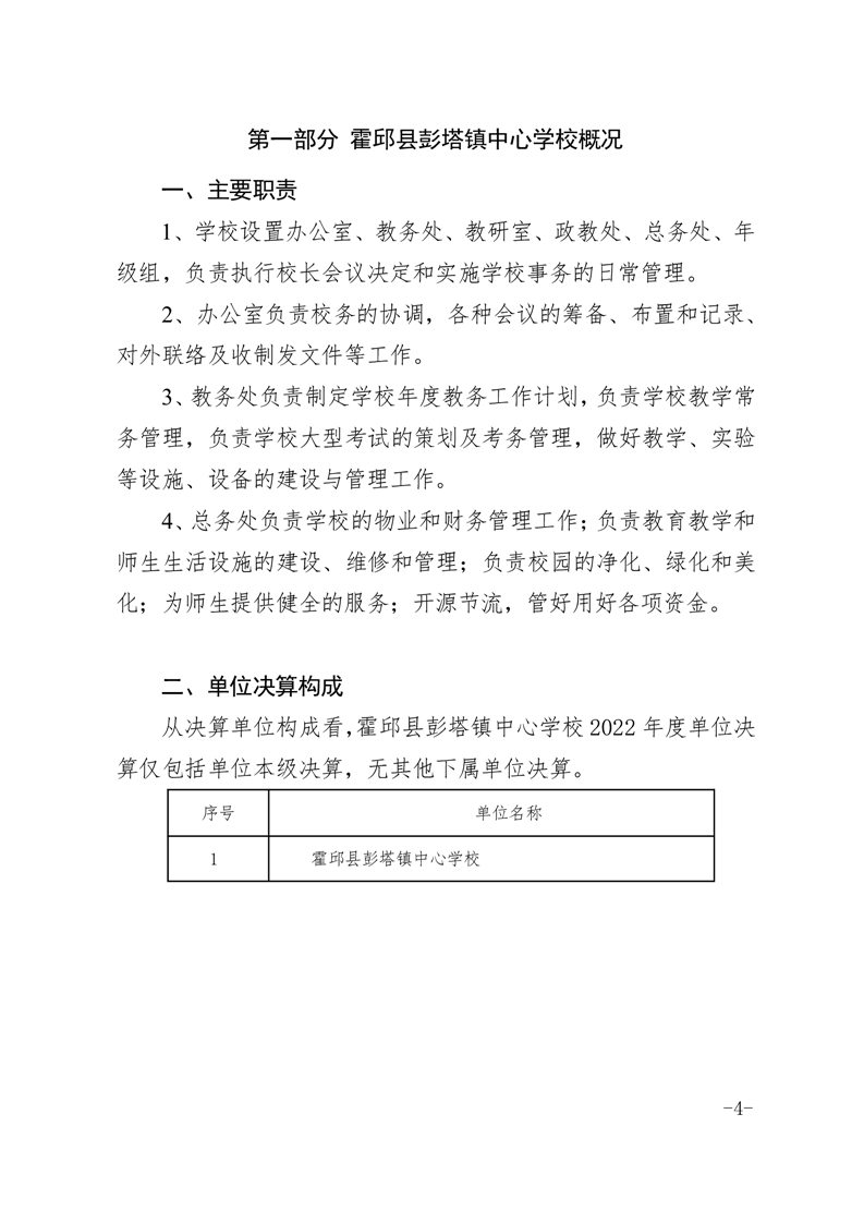 霍邱县彭塔镇中心学校 2022 年度单位决算