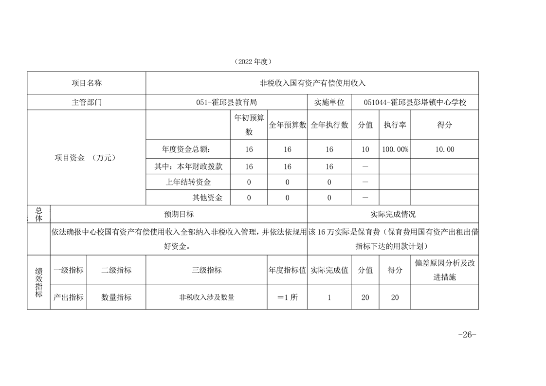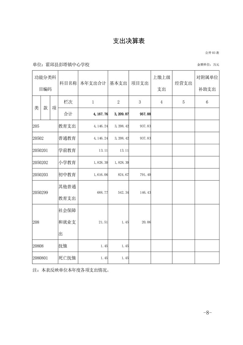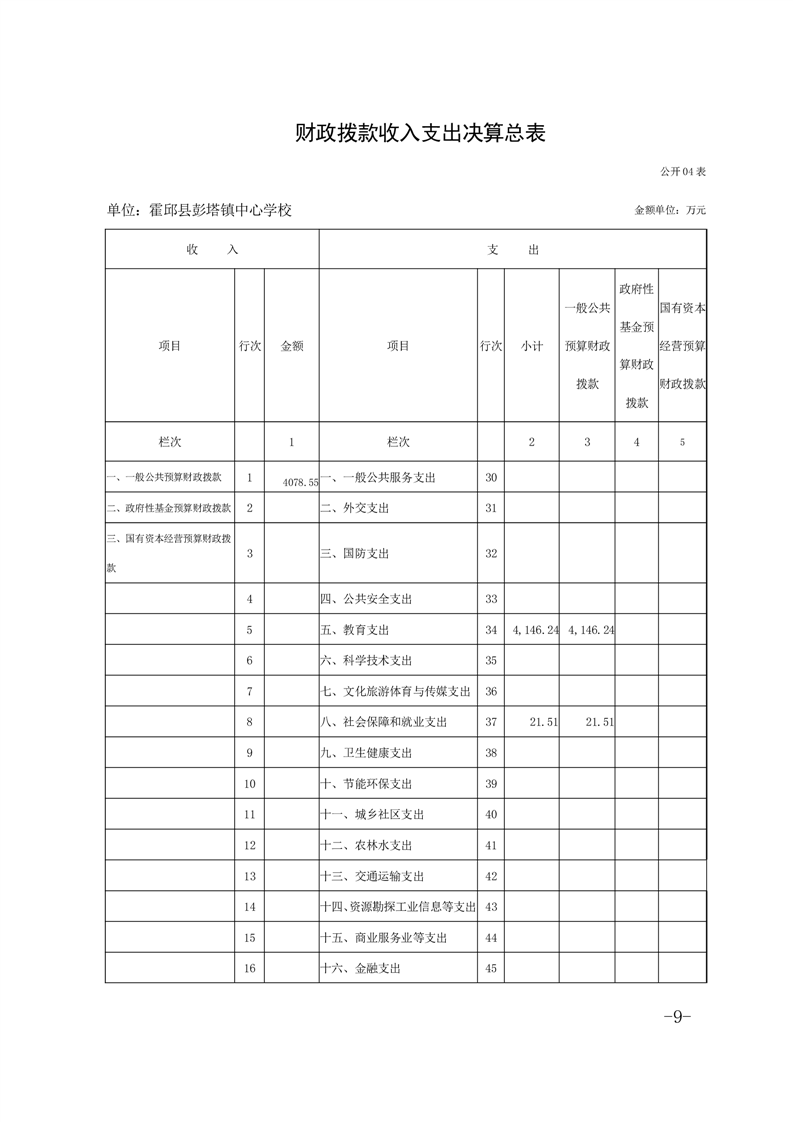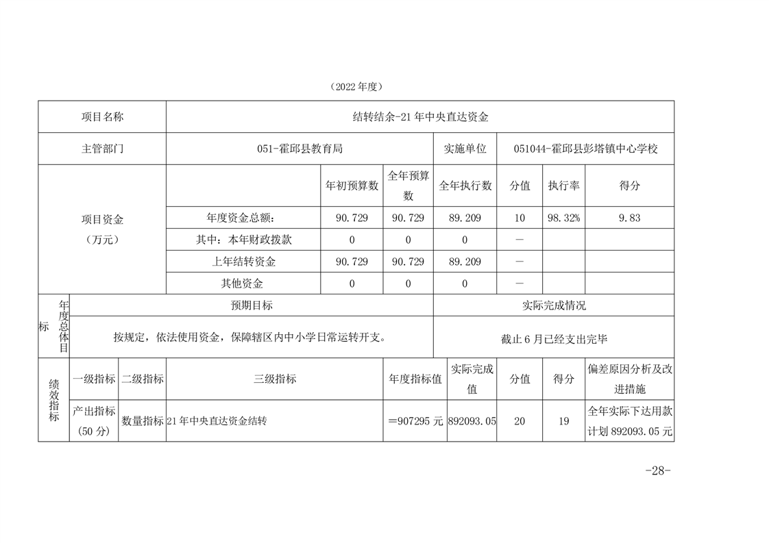霍邱县彭塔镇中心学校 2022 年度单位决算