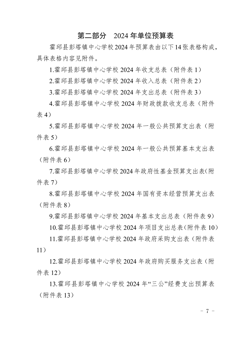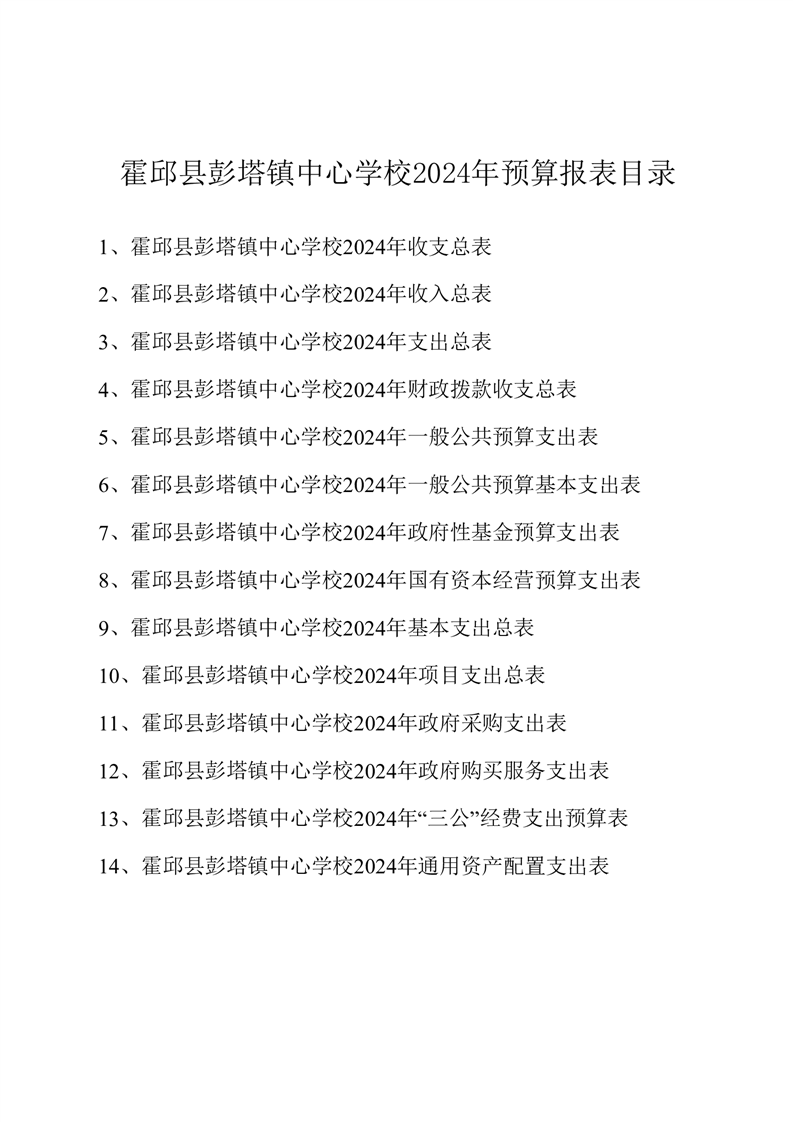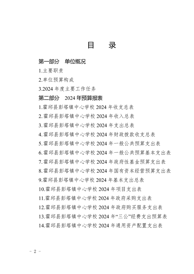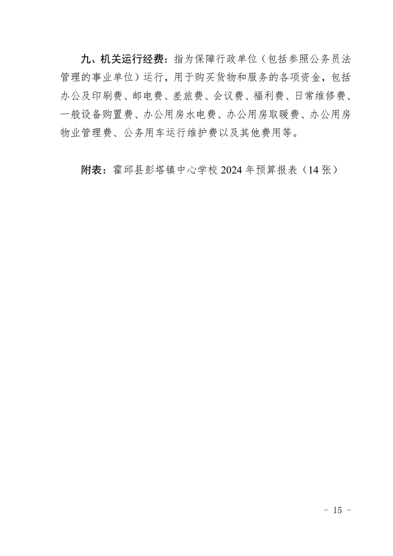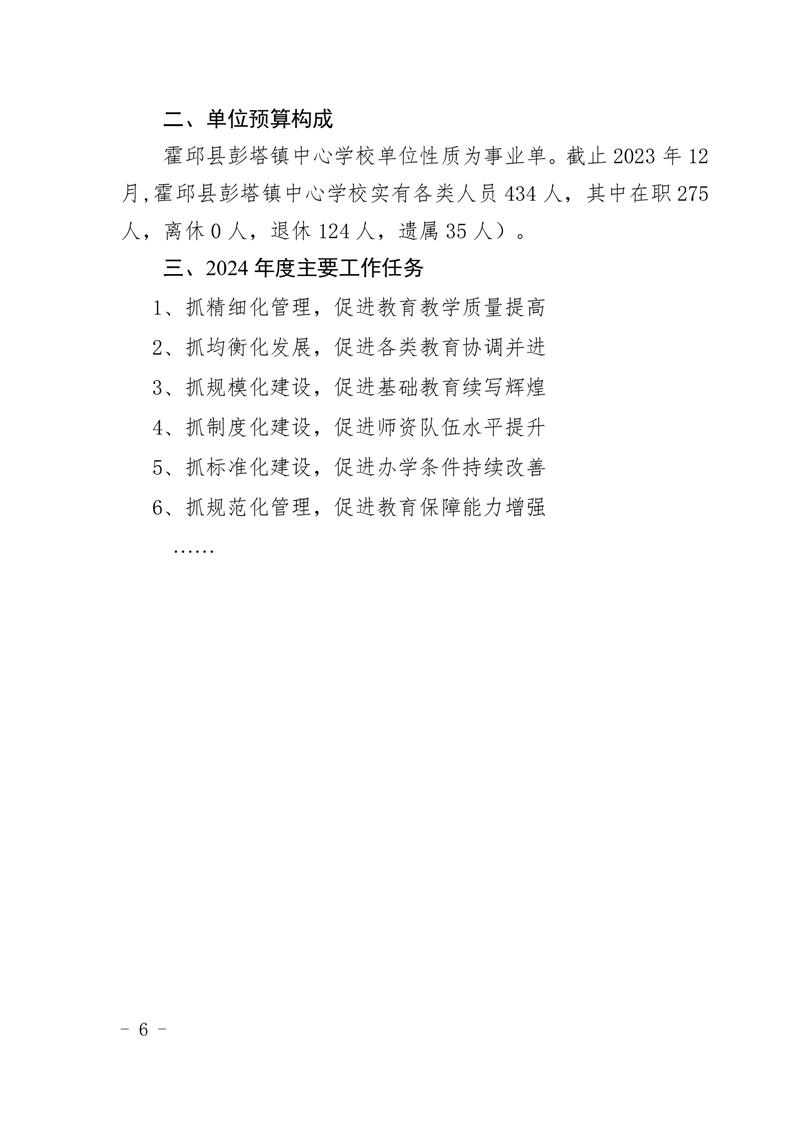 霍邱县彭塔镇中心学校2024 年单位预算公开