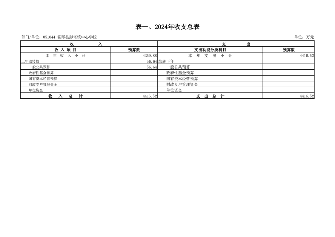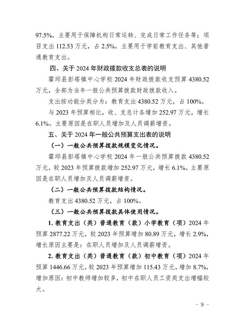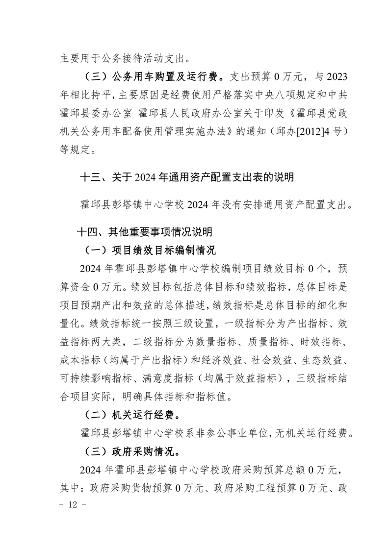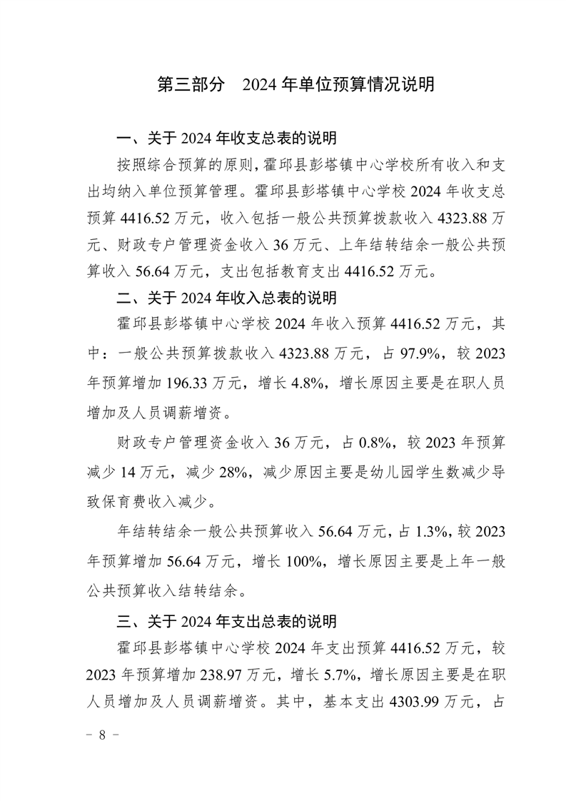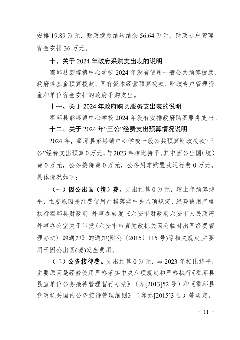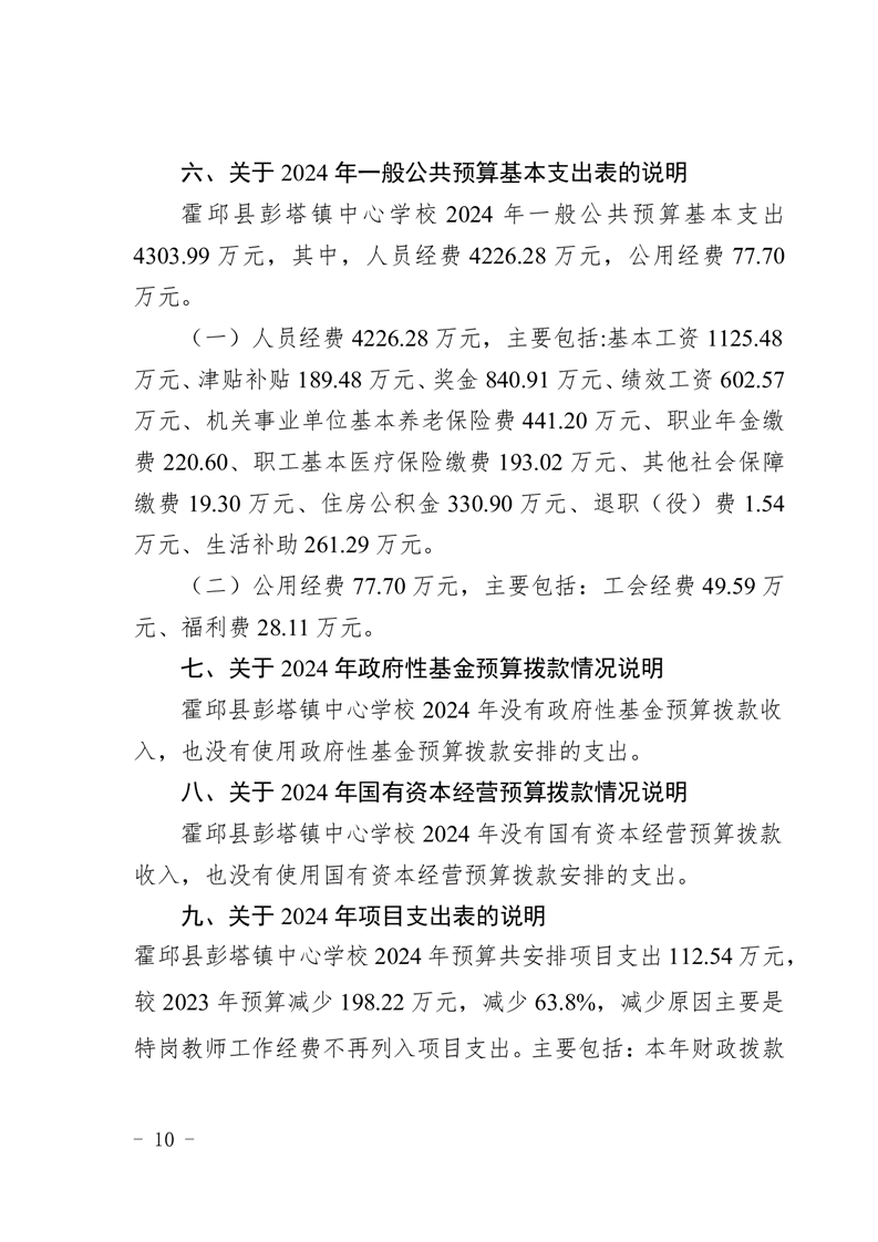 霍邱县彭塔镇中心学校2024 年单位预算公开