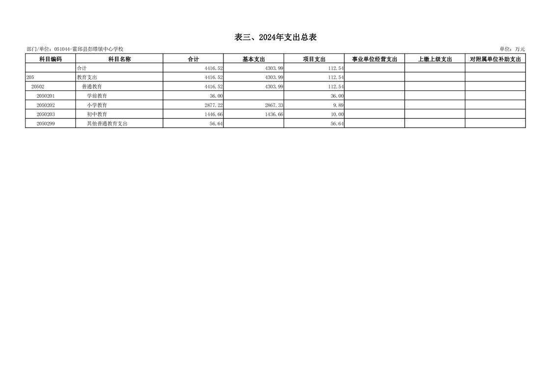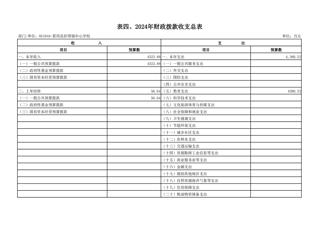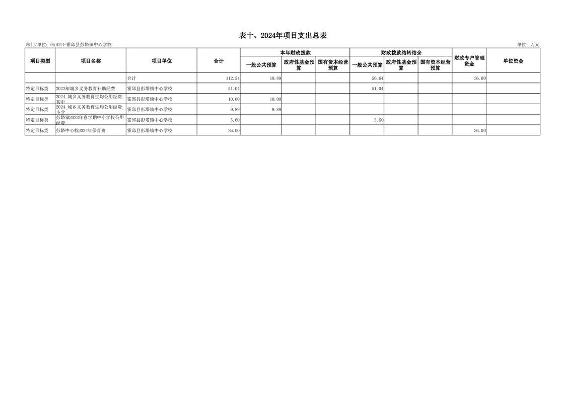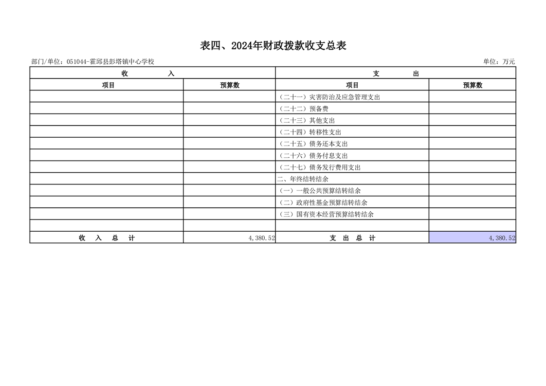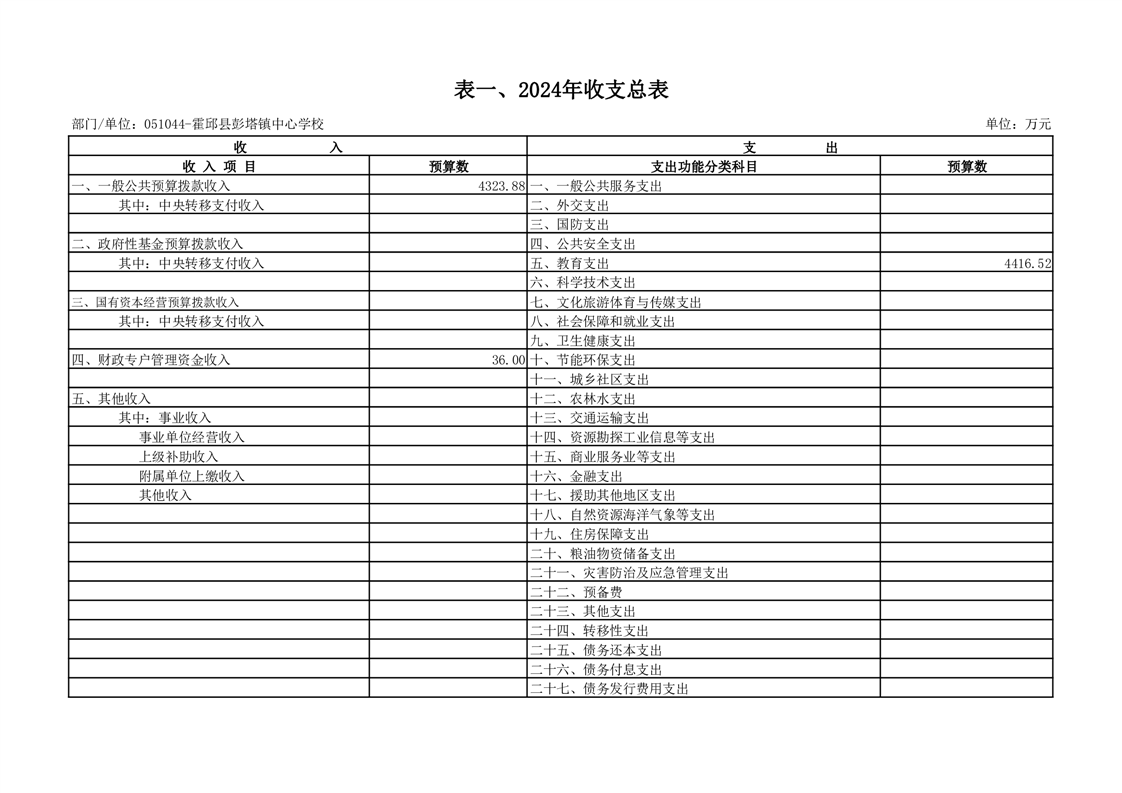 霍邱县彭塔镇中心学校2024 年单位预算公开