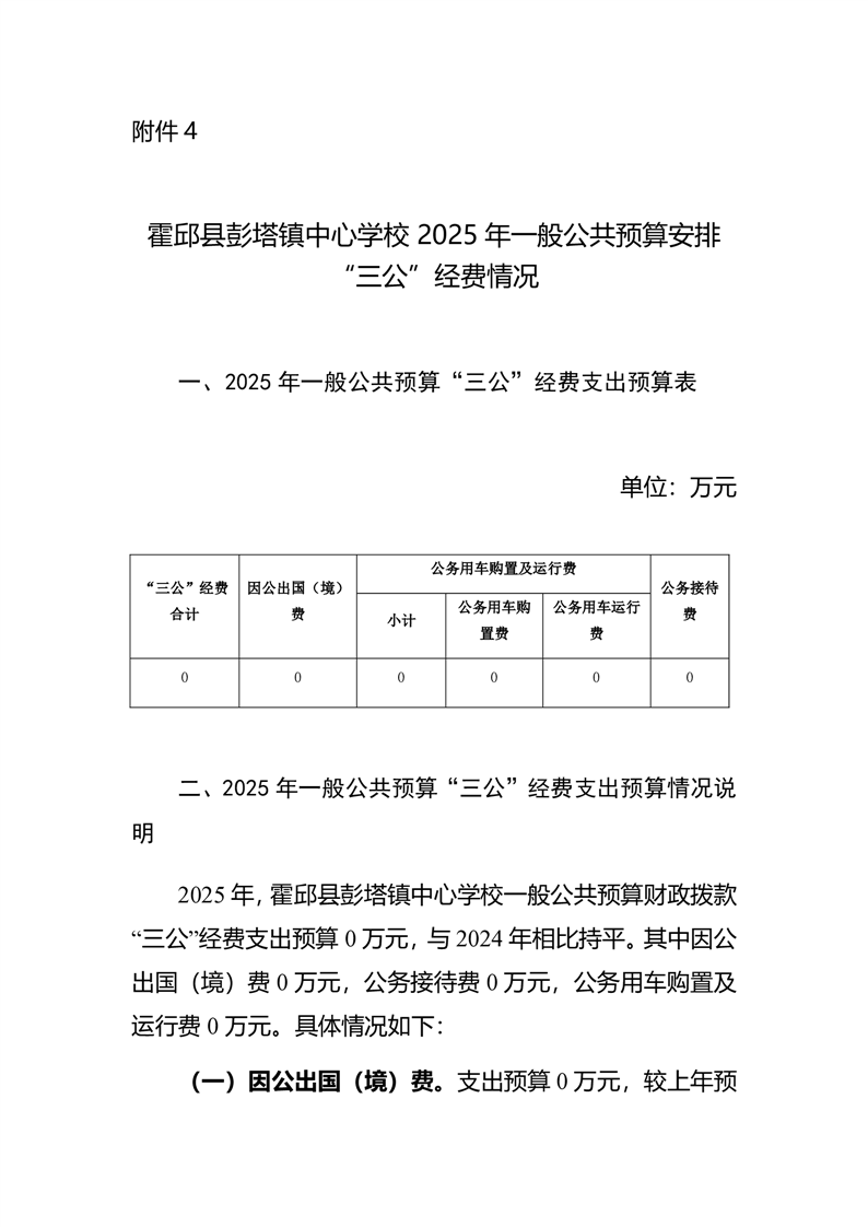 霍邱县彭塔镇中心学校 2025 年一般公共预算安排“三公”经费情况