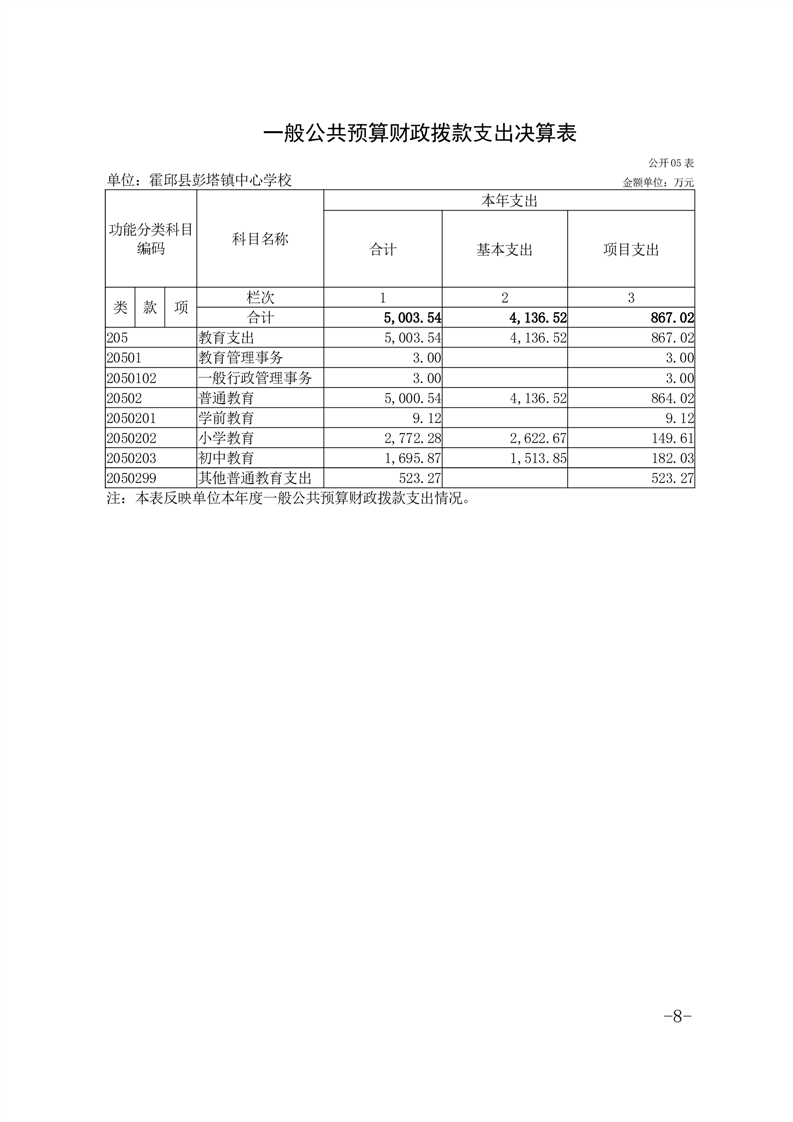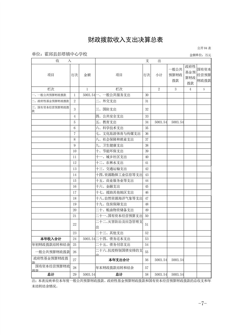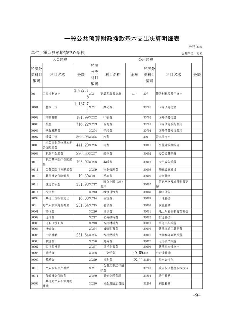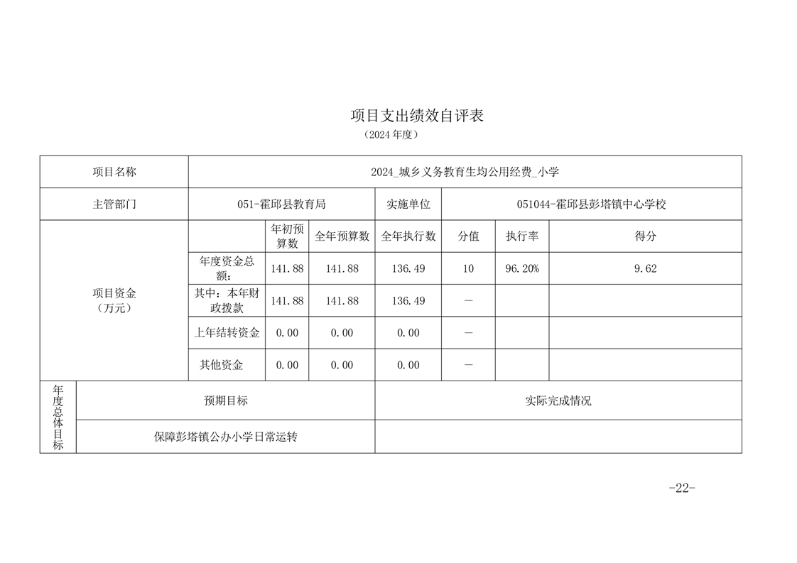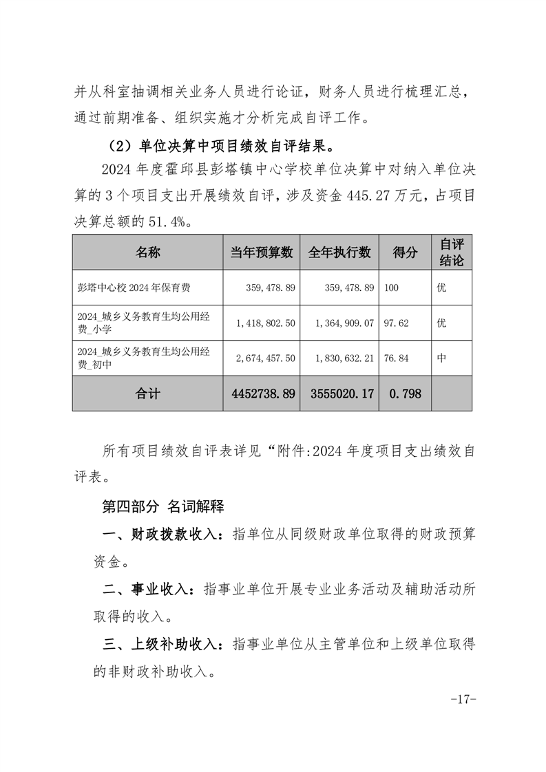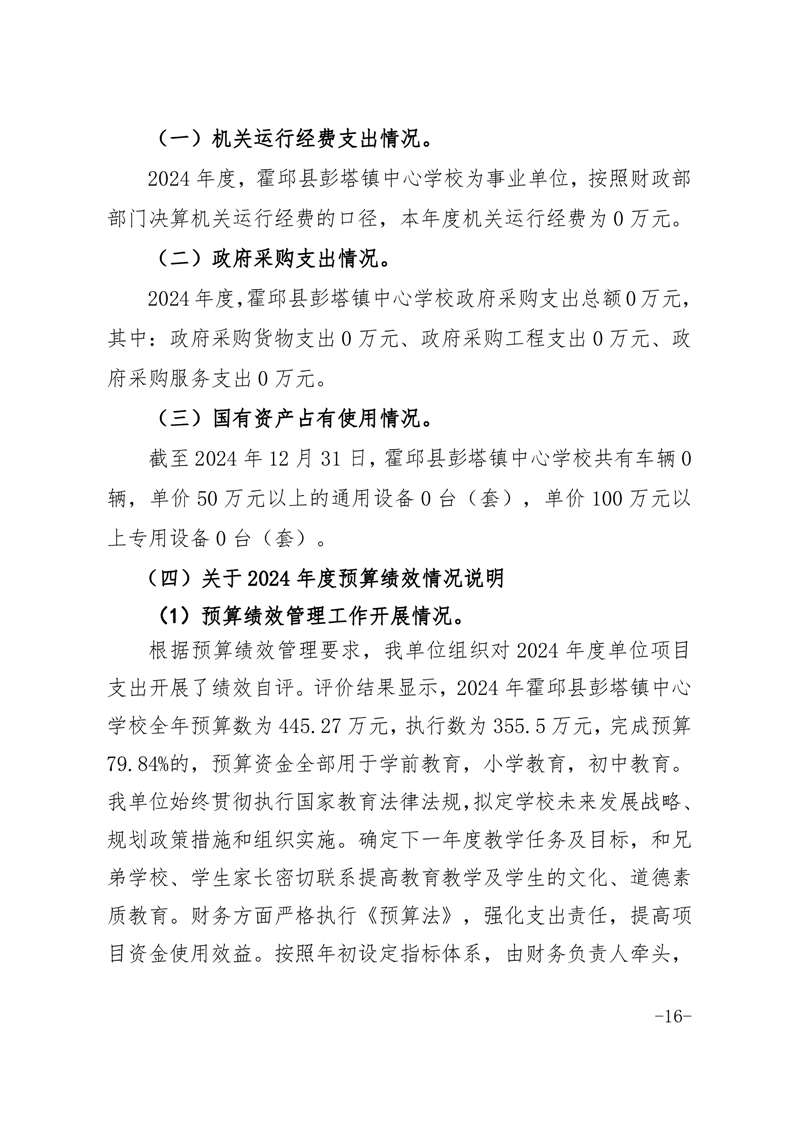 霍邱县彭塔镇中心学校 2024 年度单位决算