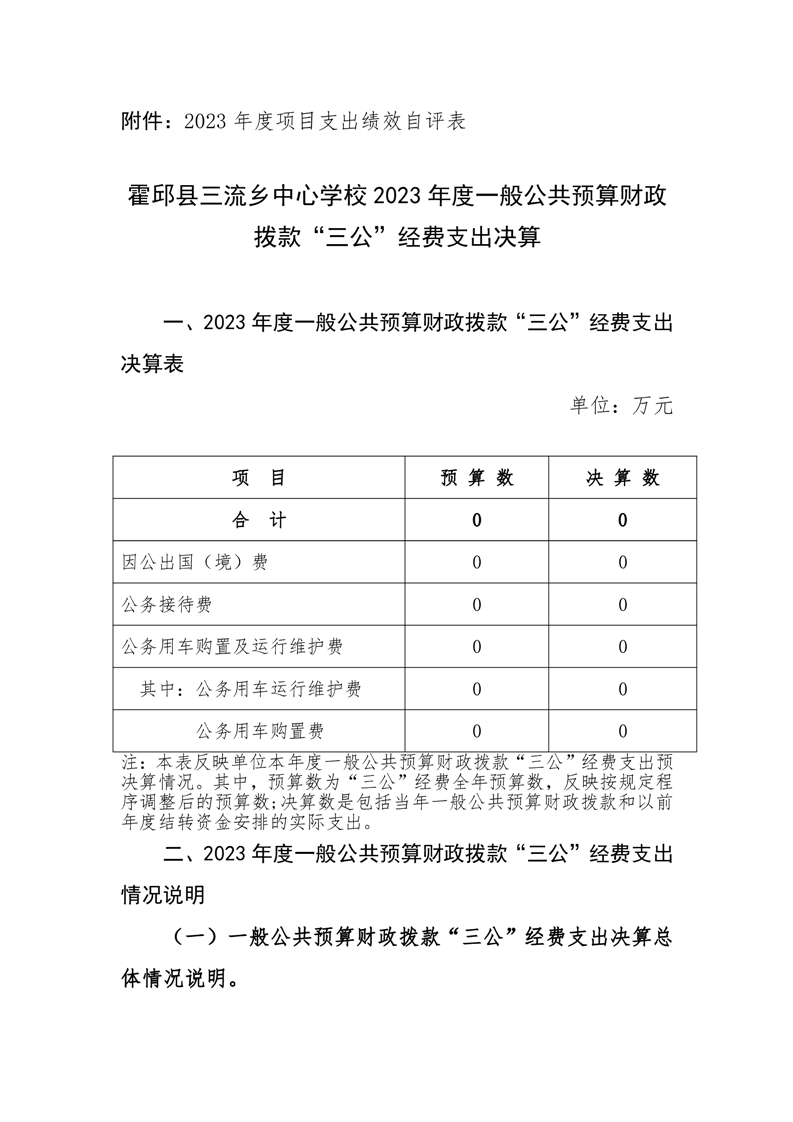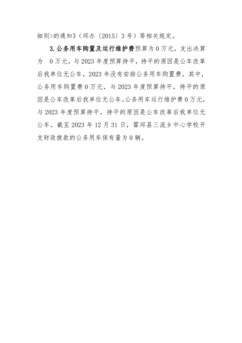 霍邱县三流乡中心学校 2023 年度一般公共预算财政拨款“三公” 经费支出决算