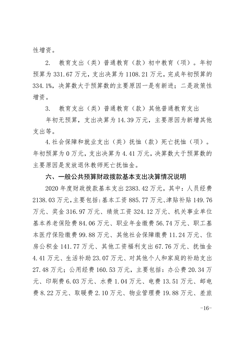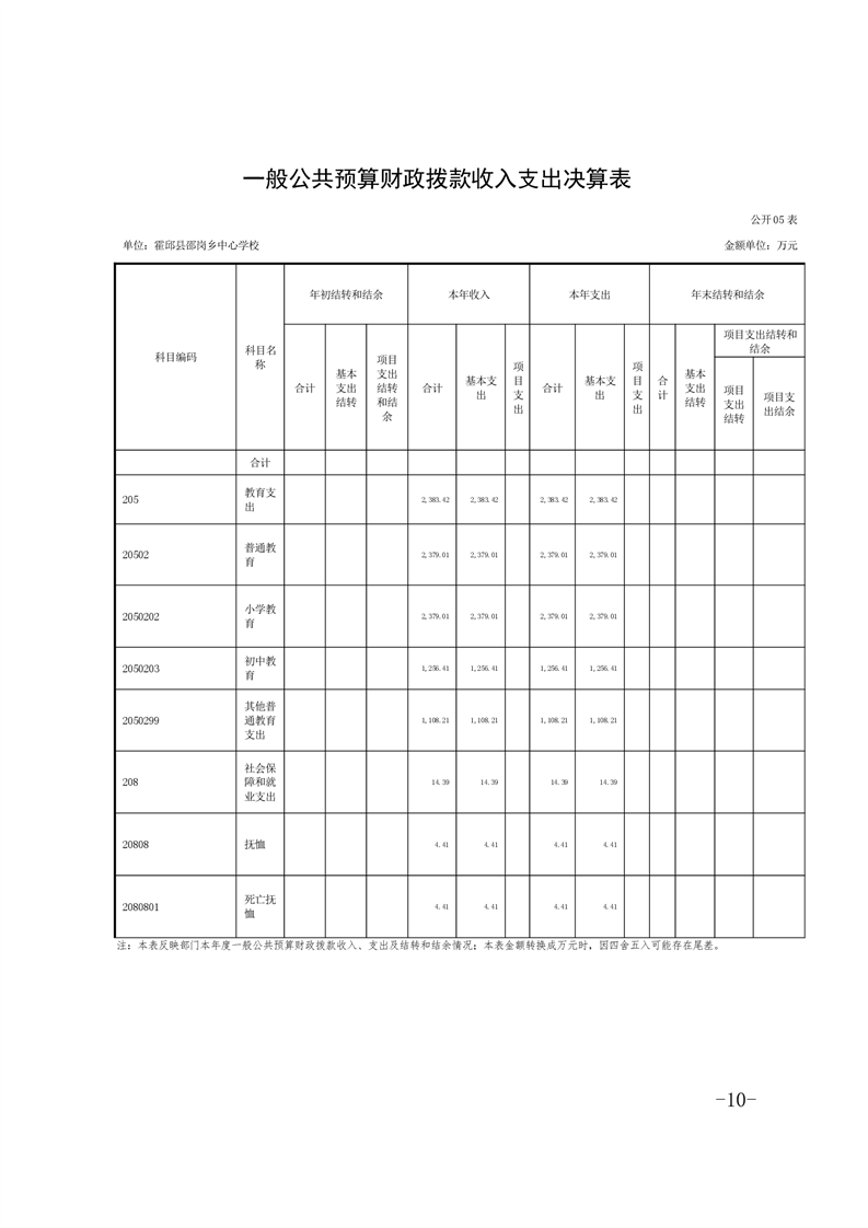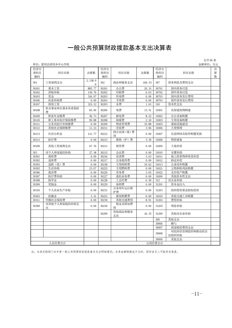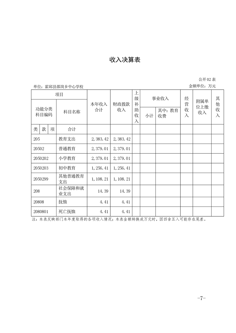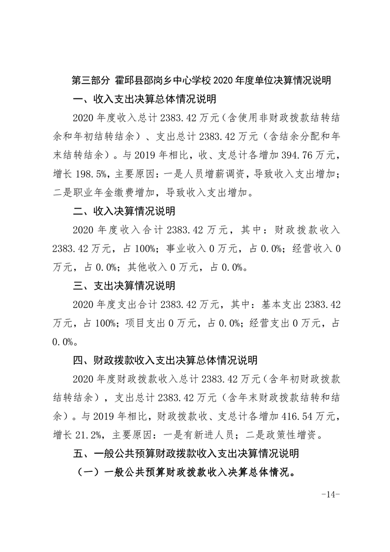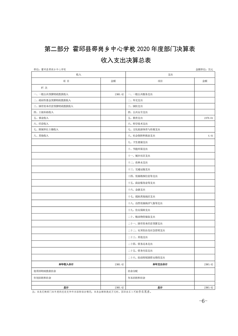 霍邱县邵岗乡中心学校 2020 年 单位决算