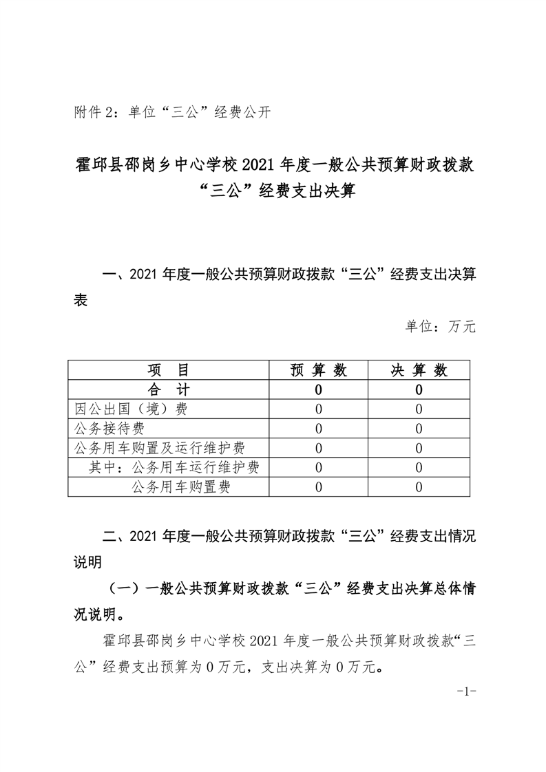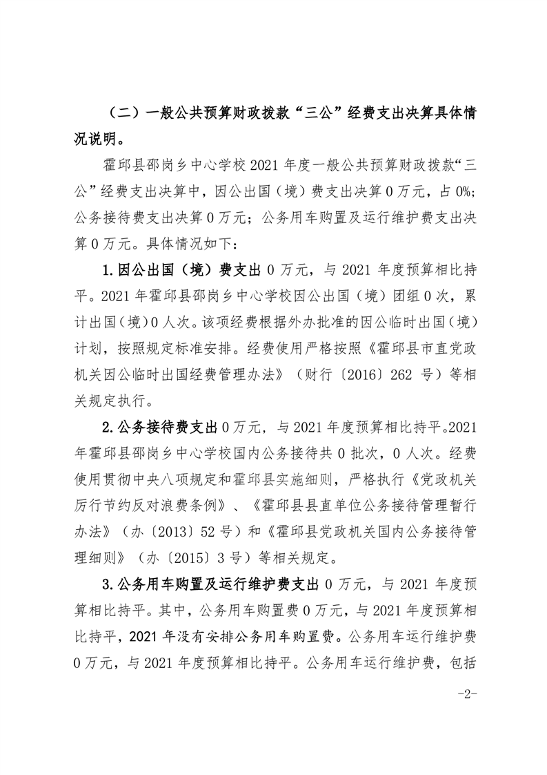 霍邱县邵岗乡中心学校2021年度一般公共预算财政拨款“三公”经费支出决算