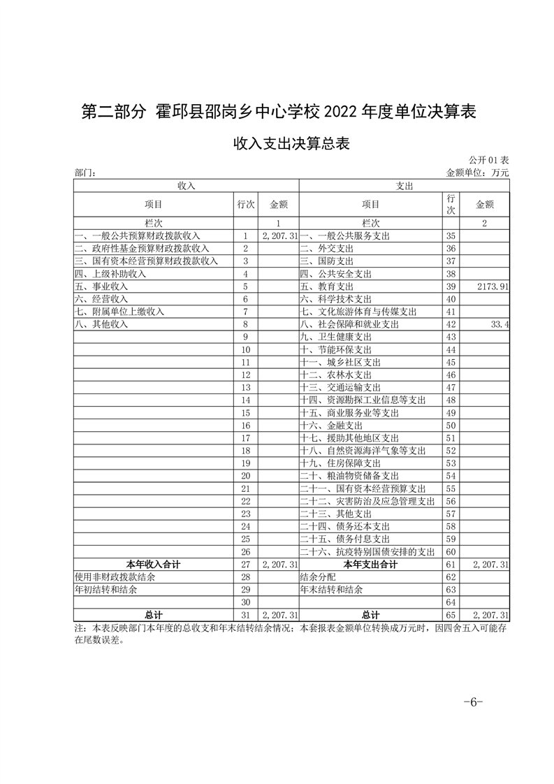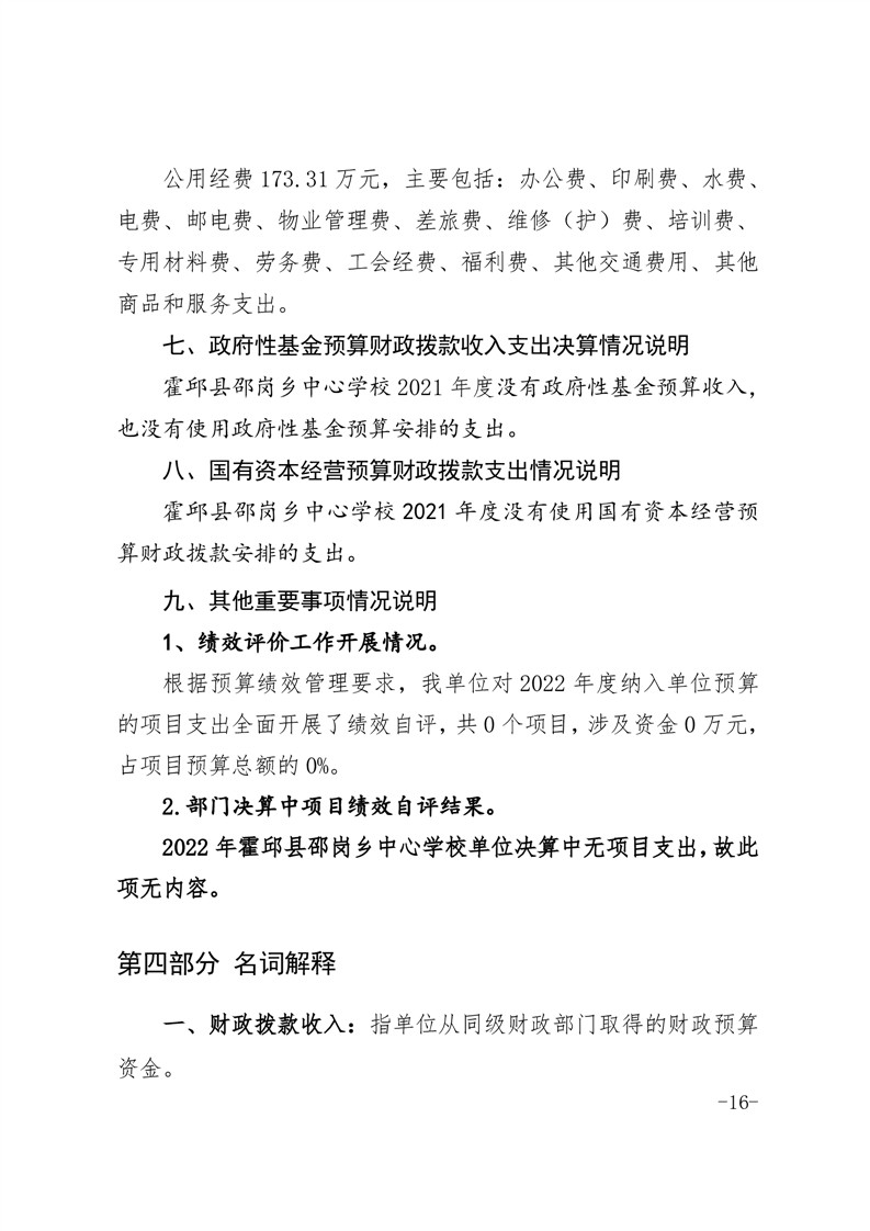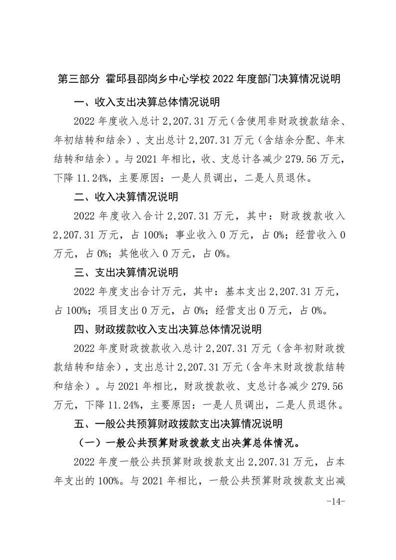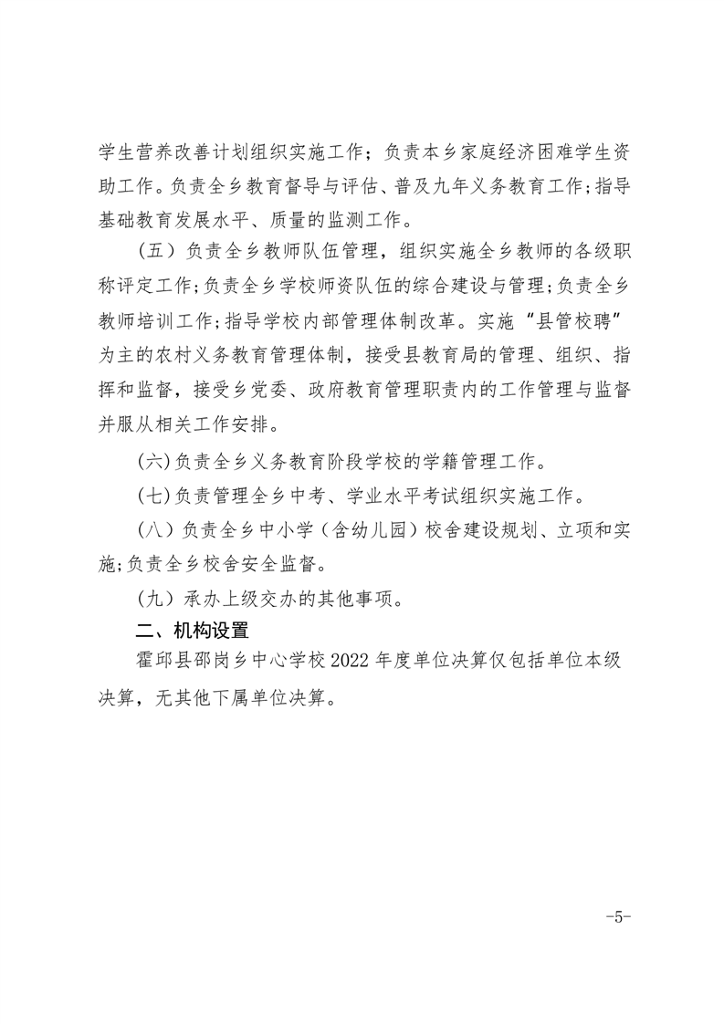 霍邱县邵岗乡中心学校 2022 年度单位决算