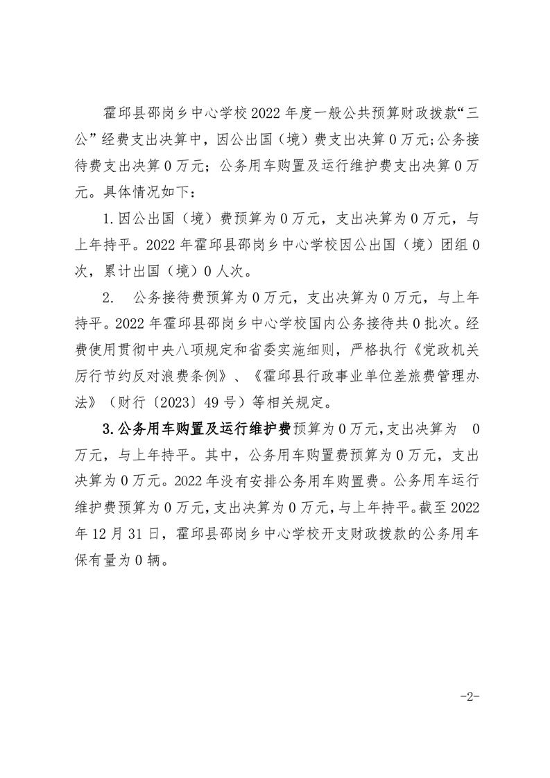 霍邱县邵岗乡中心学校 2022 年度一般公共预算财政拨款