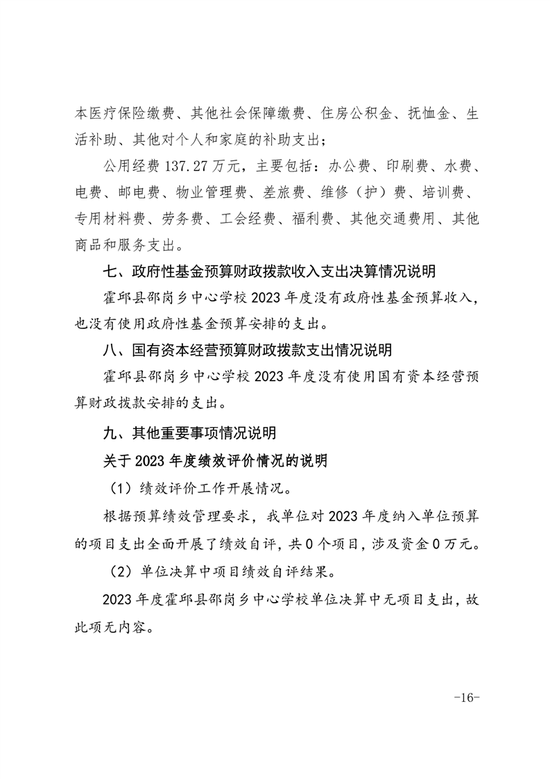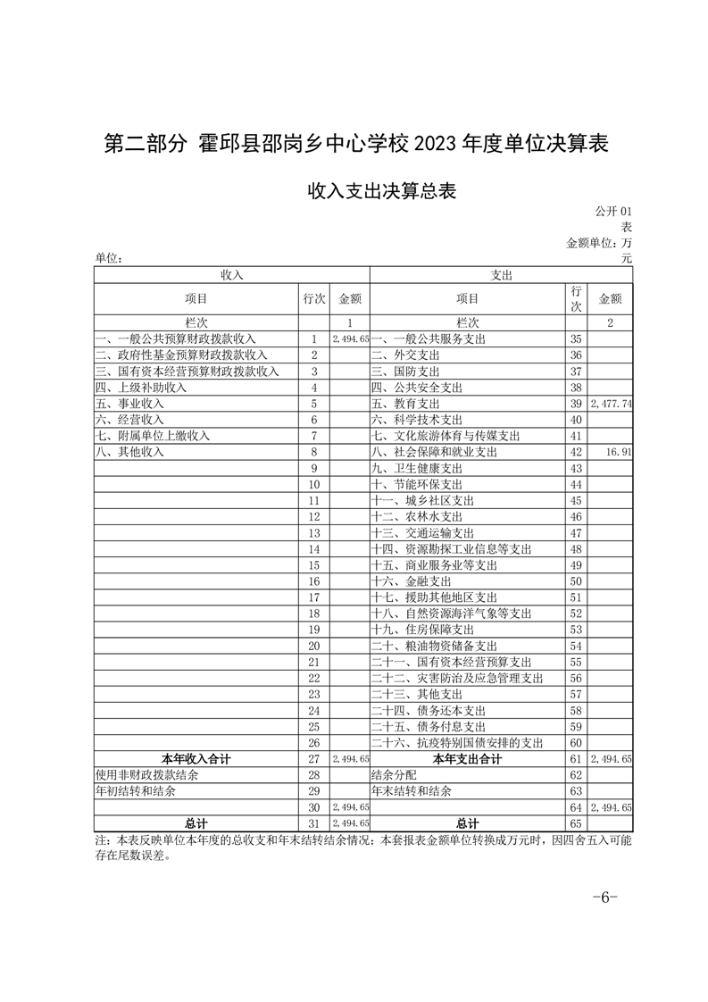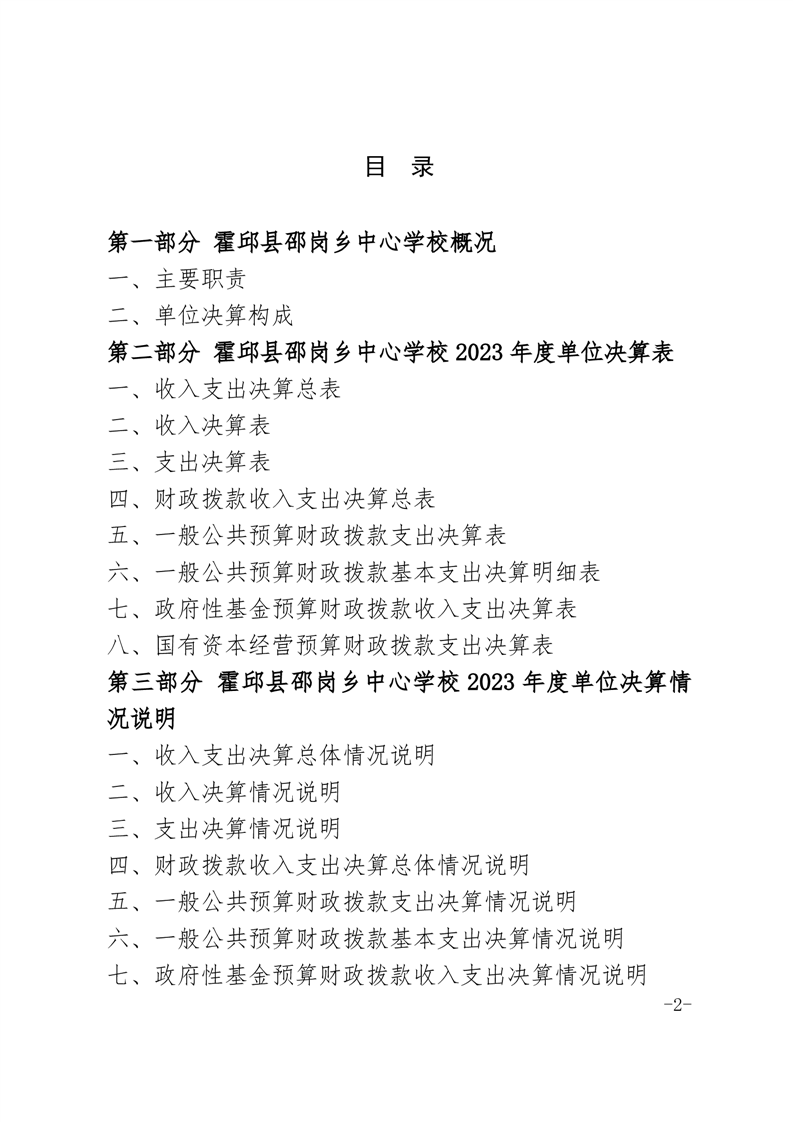 霍邱县邵岗乡中心学校 2023 年度单位决算