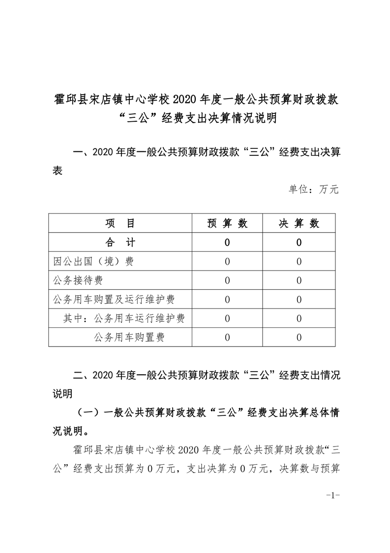 霍邱县宋店镇中心学校2020年度一般公共预算财政拨款“三公”经费支出决算情况说明