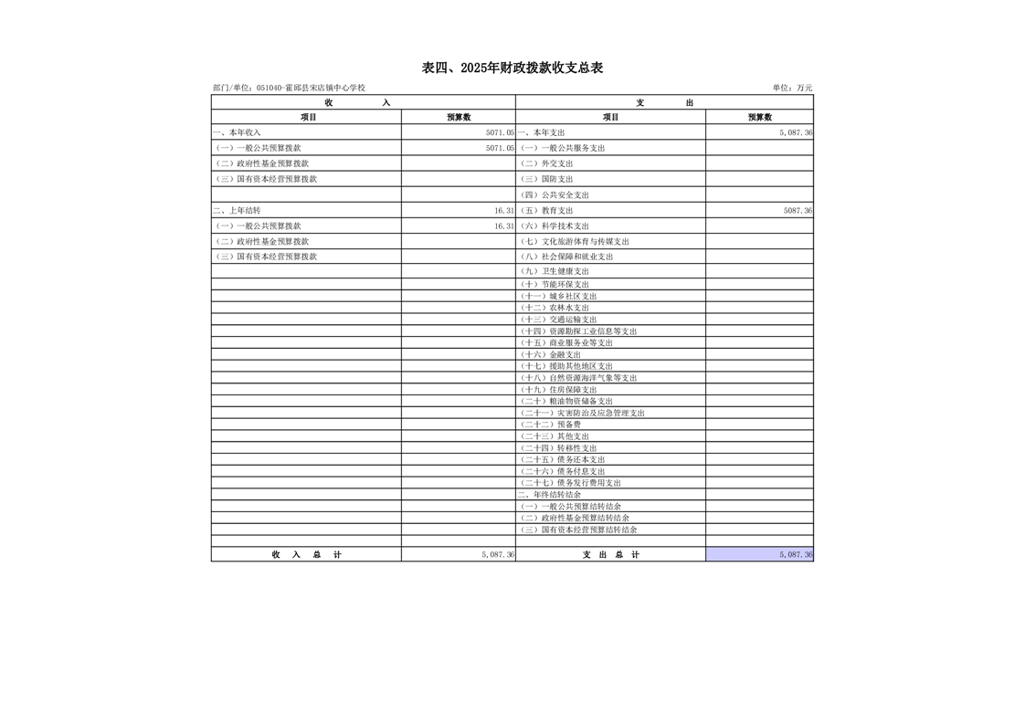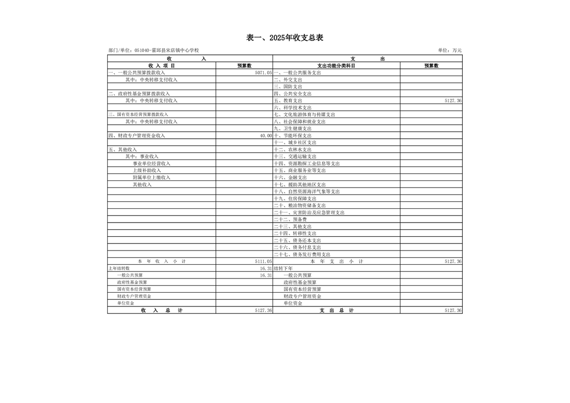 霍邱县宋店镇中心学校2025 年单位预算公开