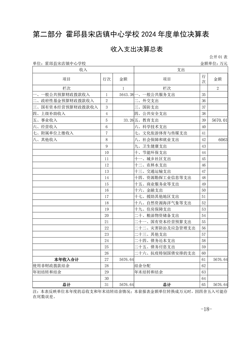 霍邱县宋店镇中心学校 2024 年度单位决算