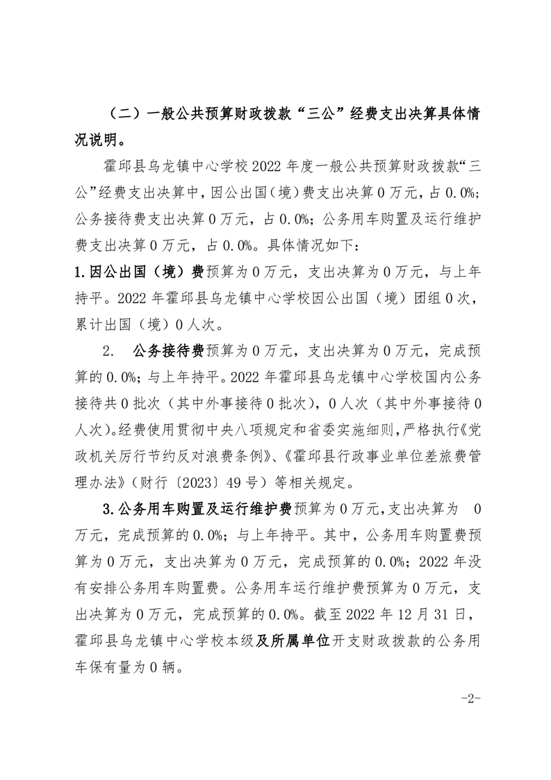 霍邱县乌龙镇中心学校 2022 年度一般公共预算财政拨款