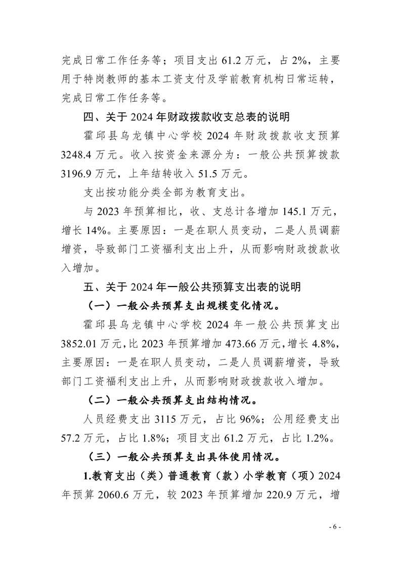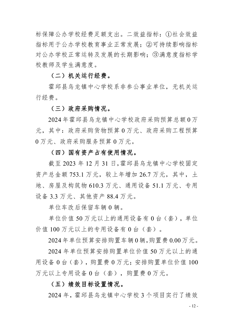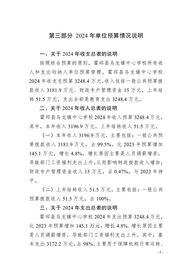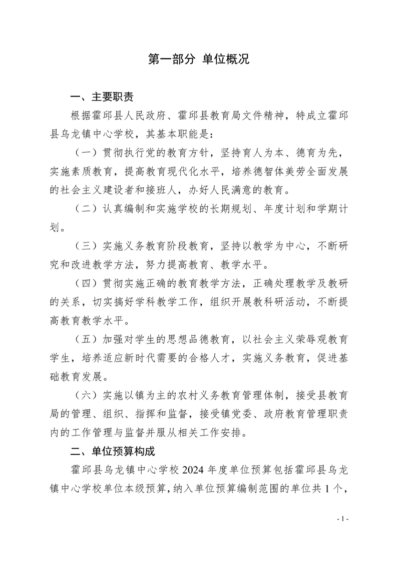 霍邱县乌龙镇中心学校2024 年单位预算公开