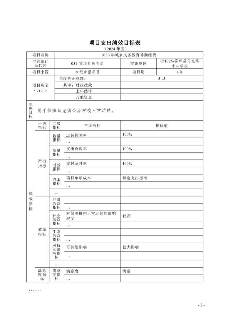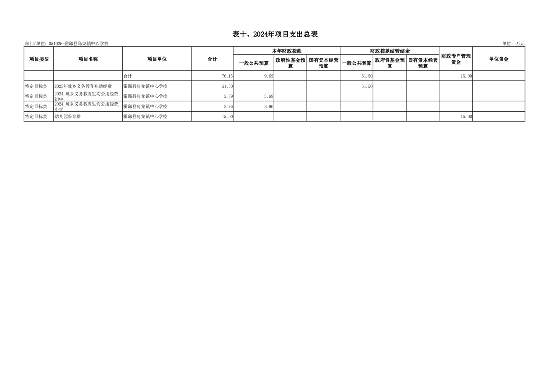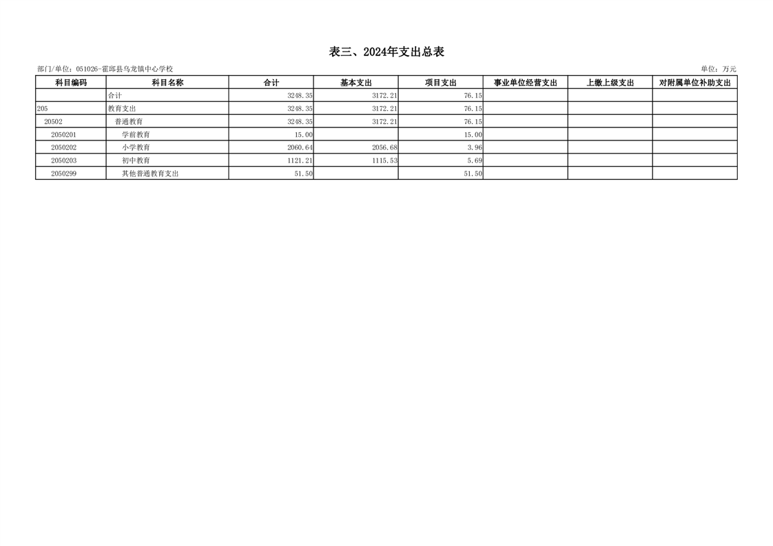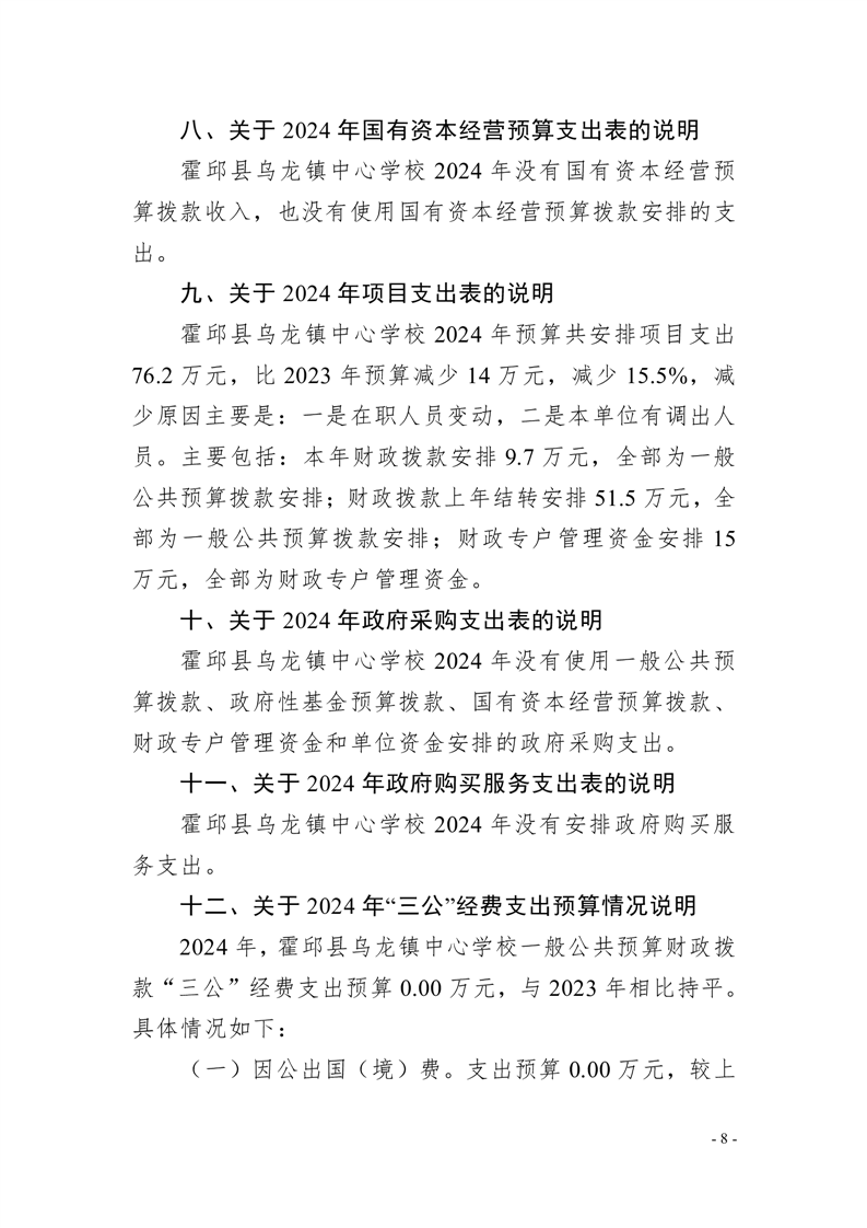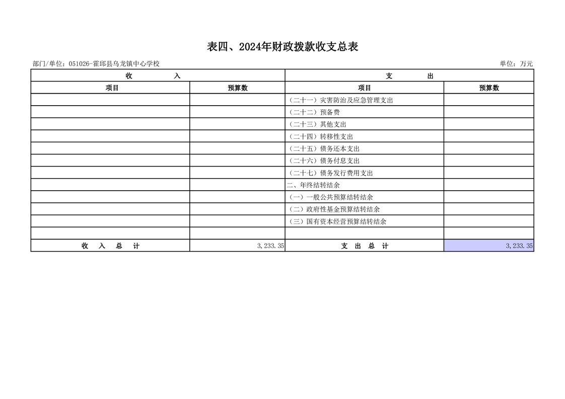霍邱县乌龙镇中心学校2024 年单位预算公开