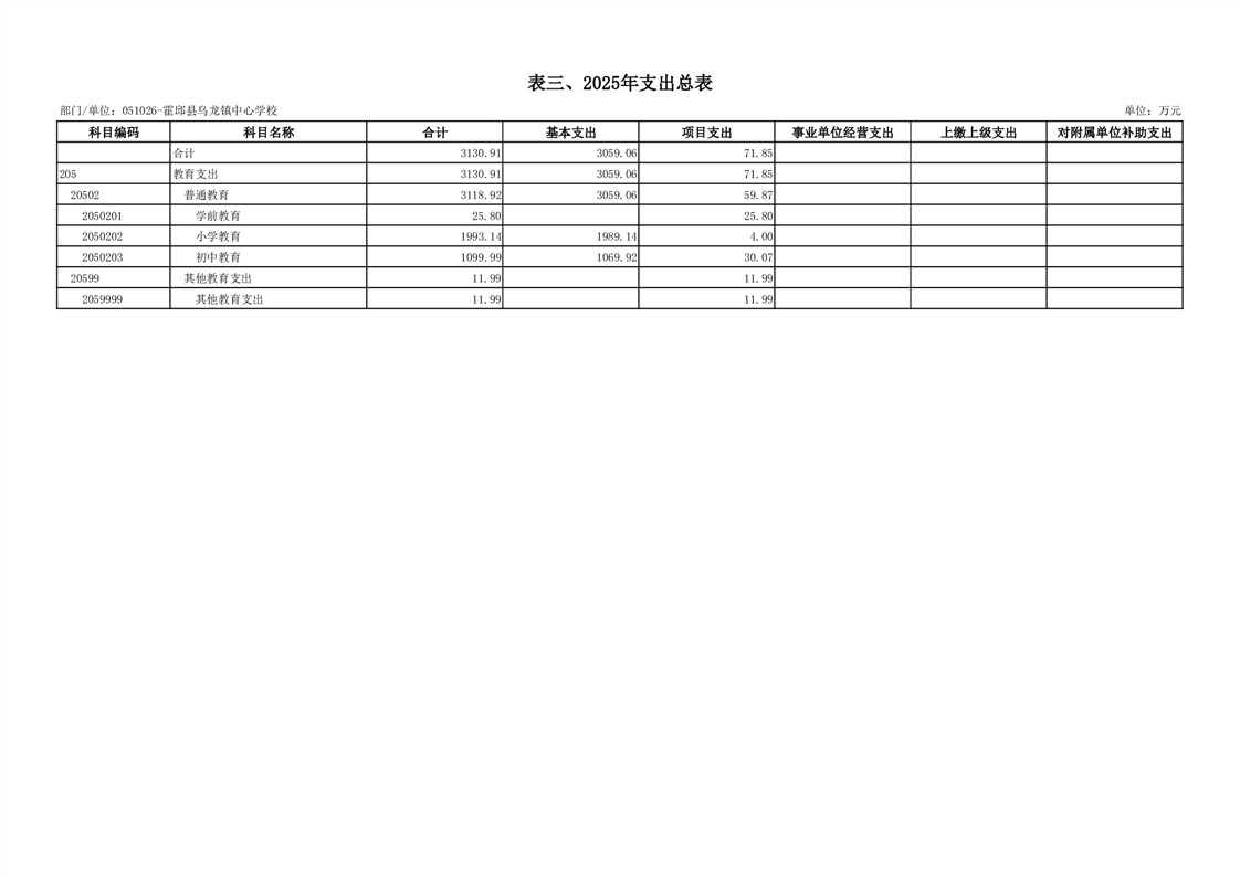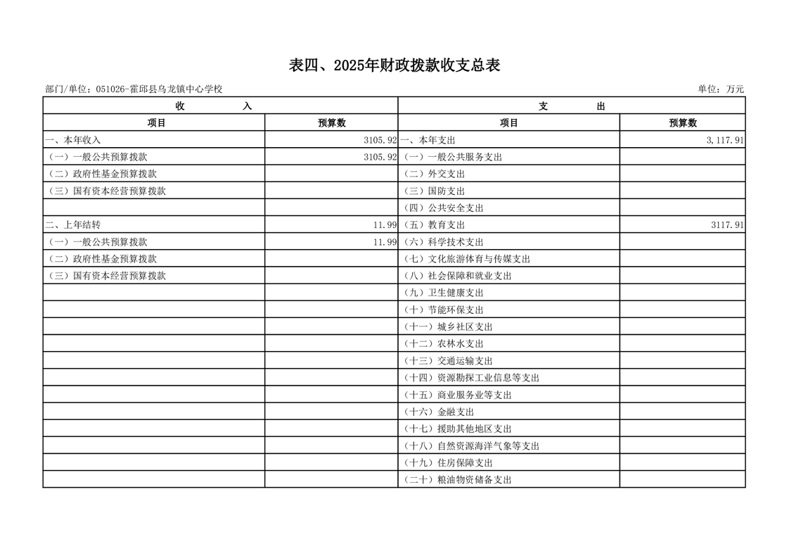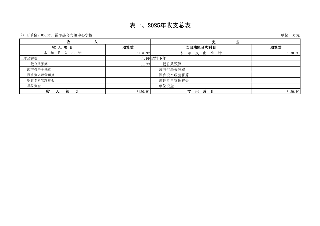 霍邱县乌龙镇中心学校 2025 年单位预算公开