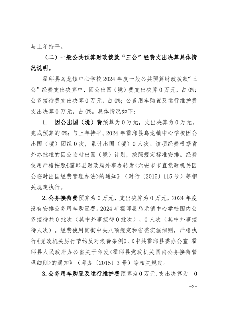 霍邱县乌龙镇中心学校 2024 年度单位决算