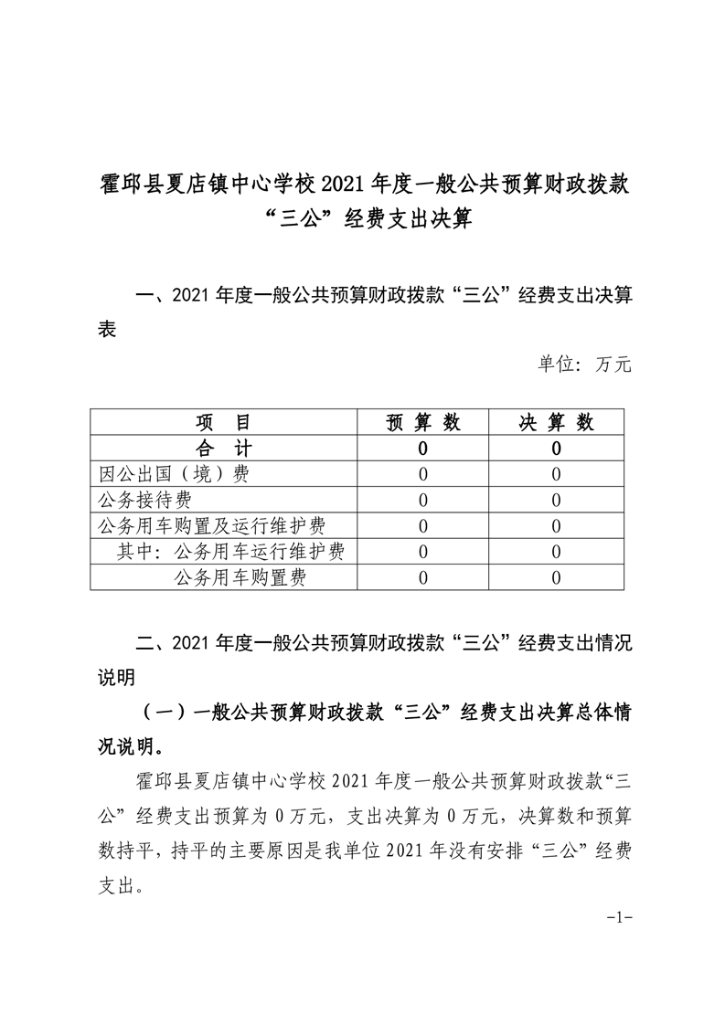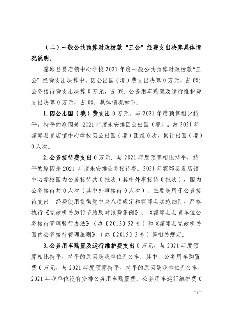 霍邱县夏店镇中心学校 2021 年度一般公共预算财政拨款“ 三公” 经费支出决算