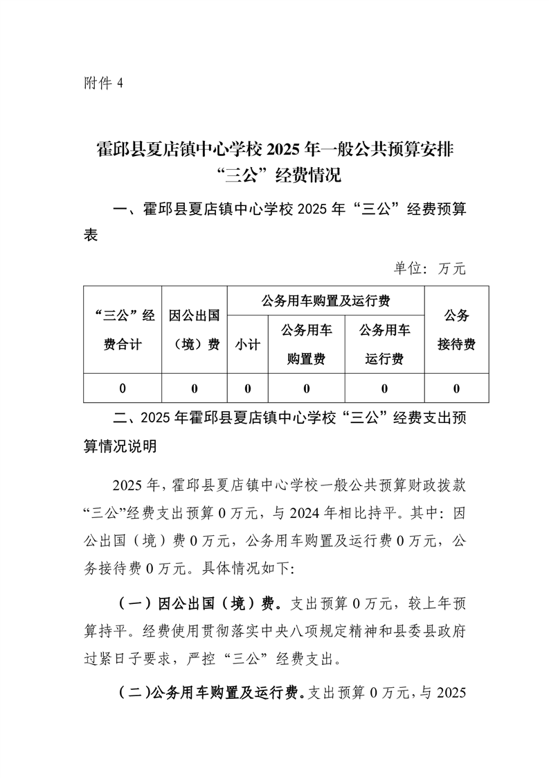 霍邱县夏店镇中心学校 2025 年一般公共预算安排“三公” 经费情况