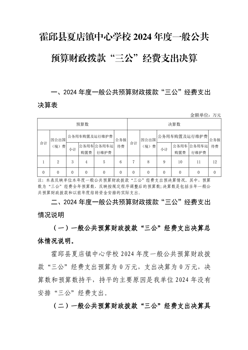 霍邱县夏店镇中心学校 2024 年度一般公共预算财政拨款“三公”经费支出决算
