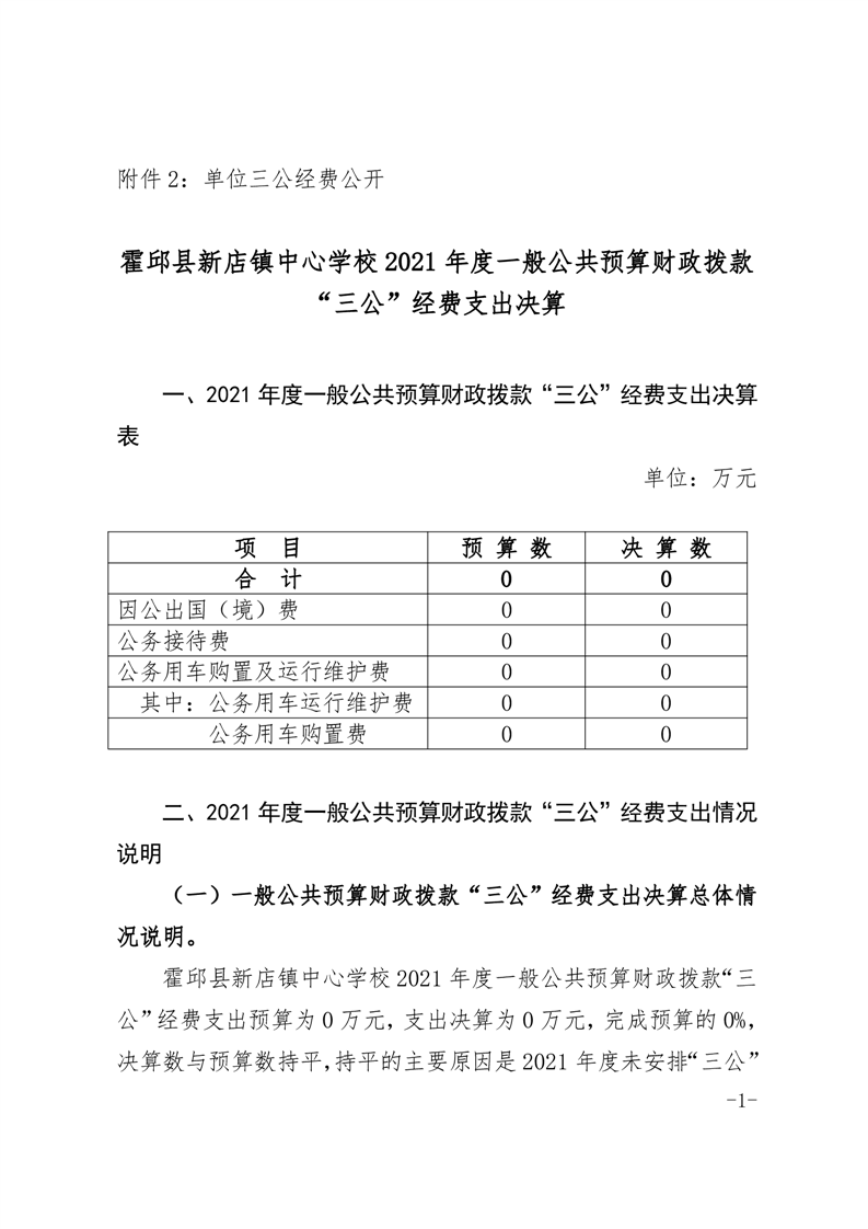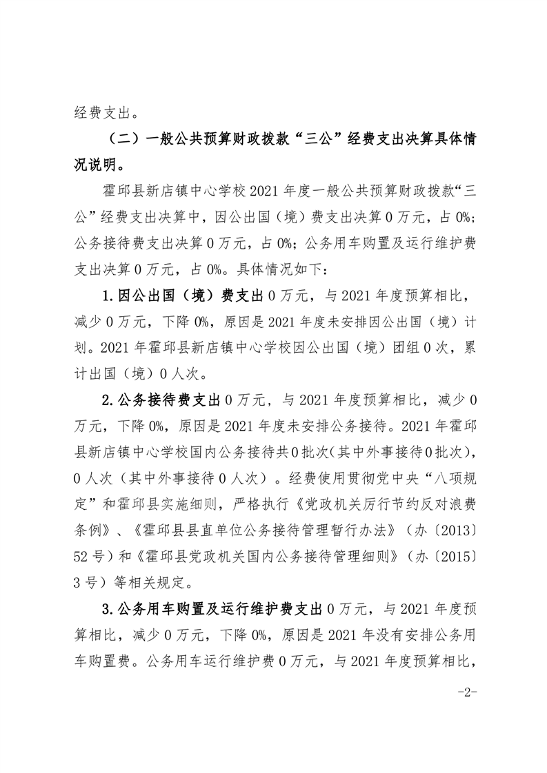 霍邱县新店镇中心学校2021年度一般公共预算财政拨款“三公”经费支出决算