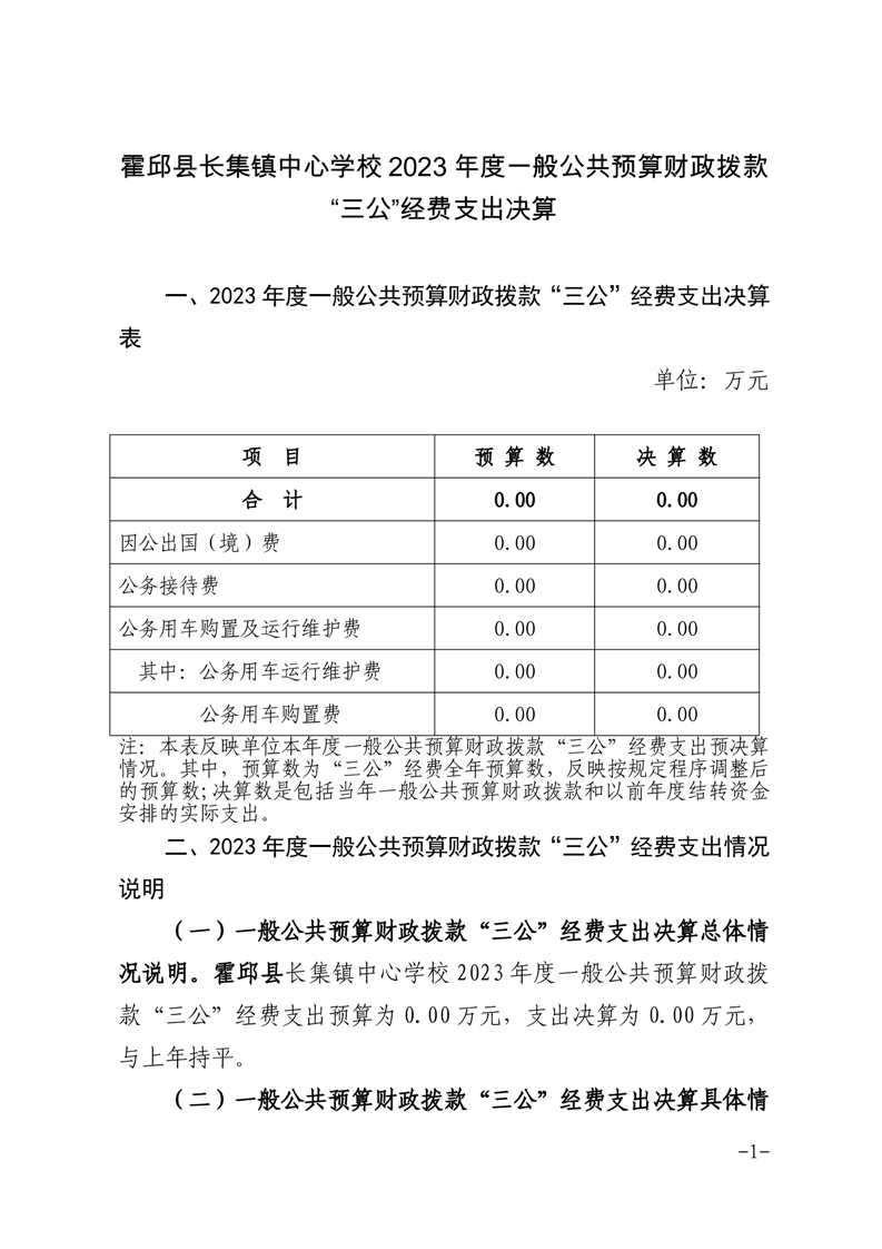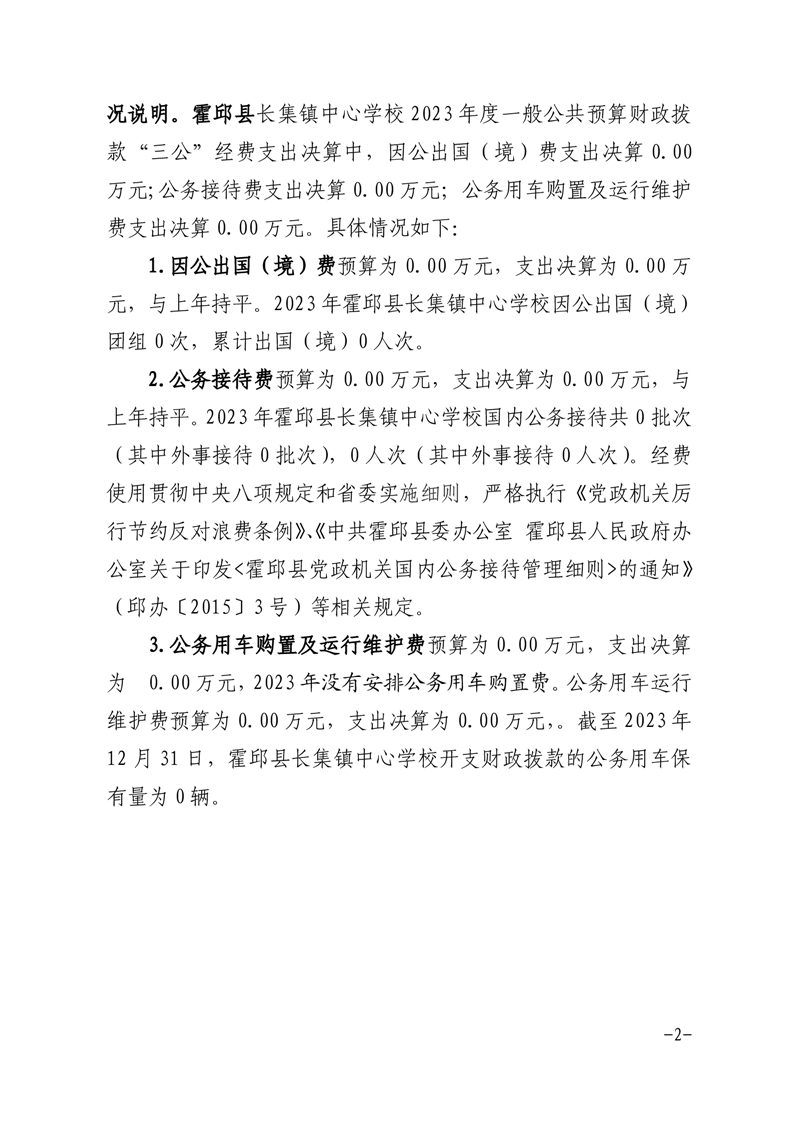 霍邱县长集镇中心学校 2023 年度一般公共预算财政拨款“三公”经费支出决算