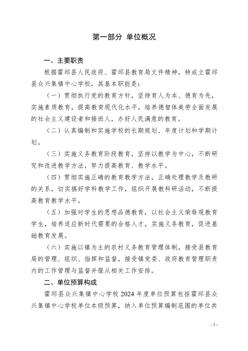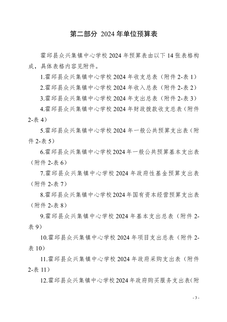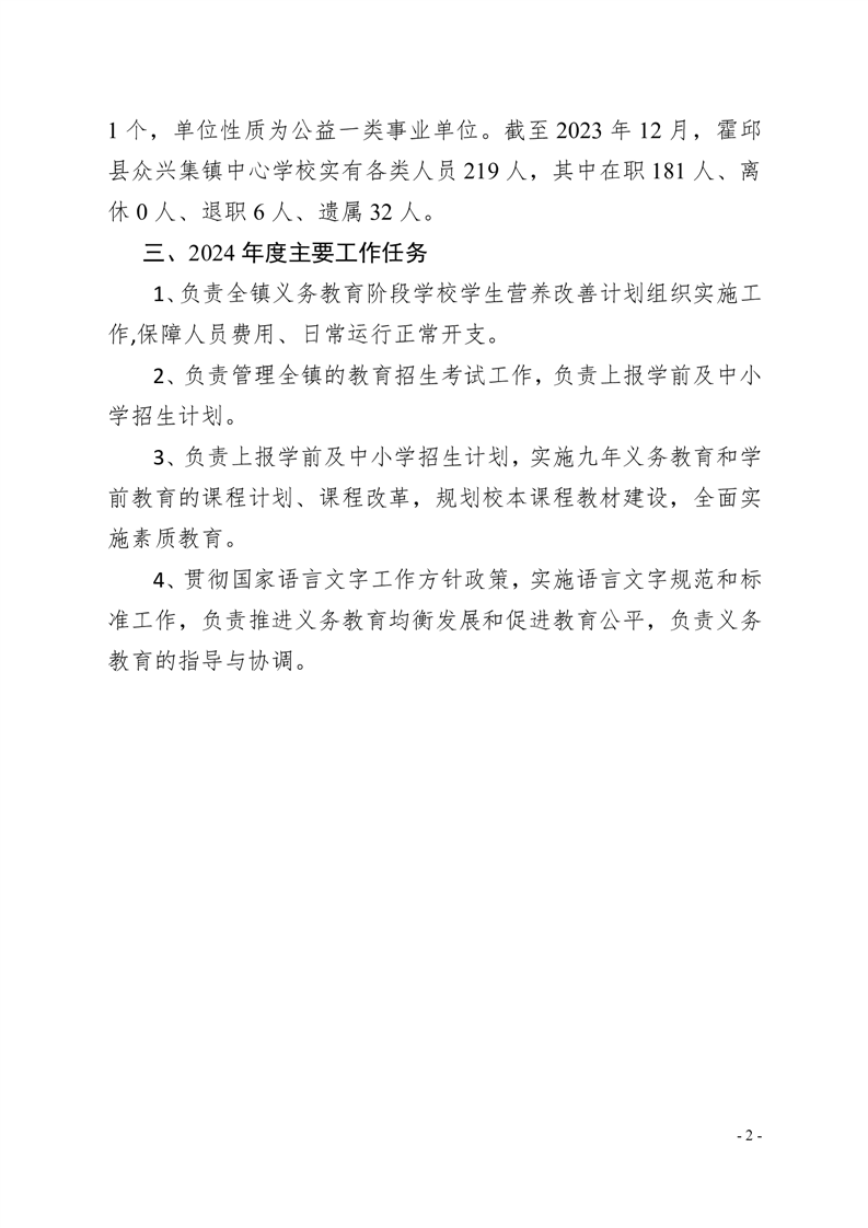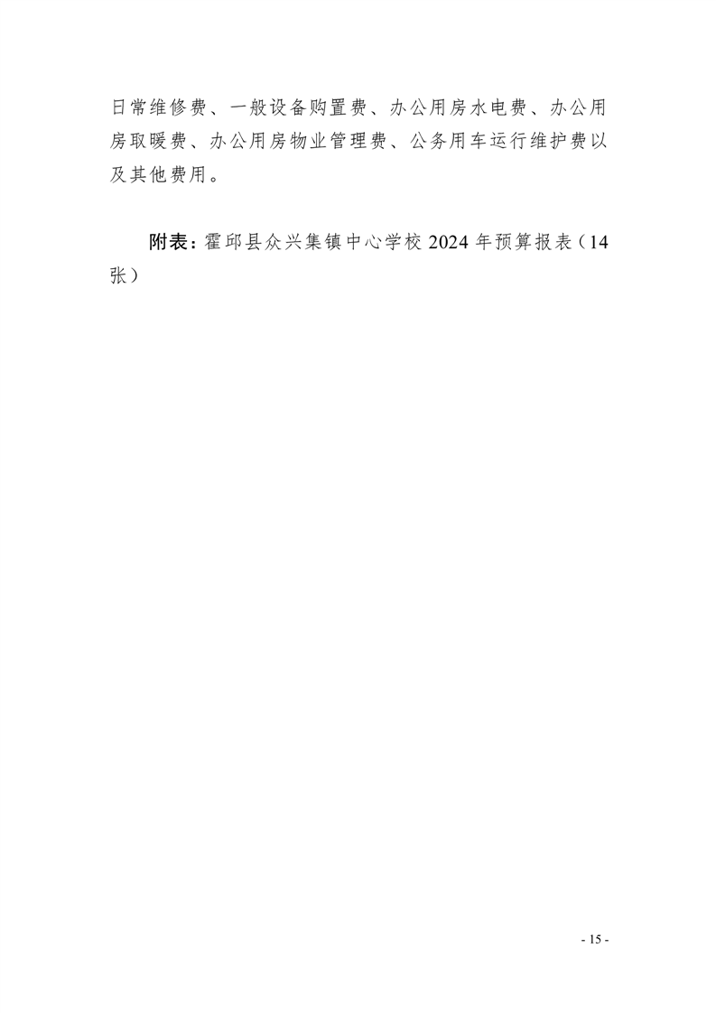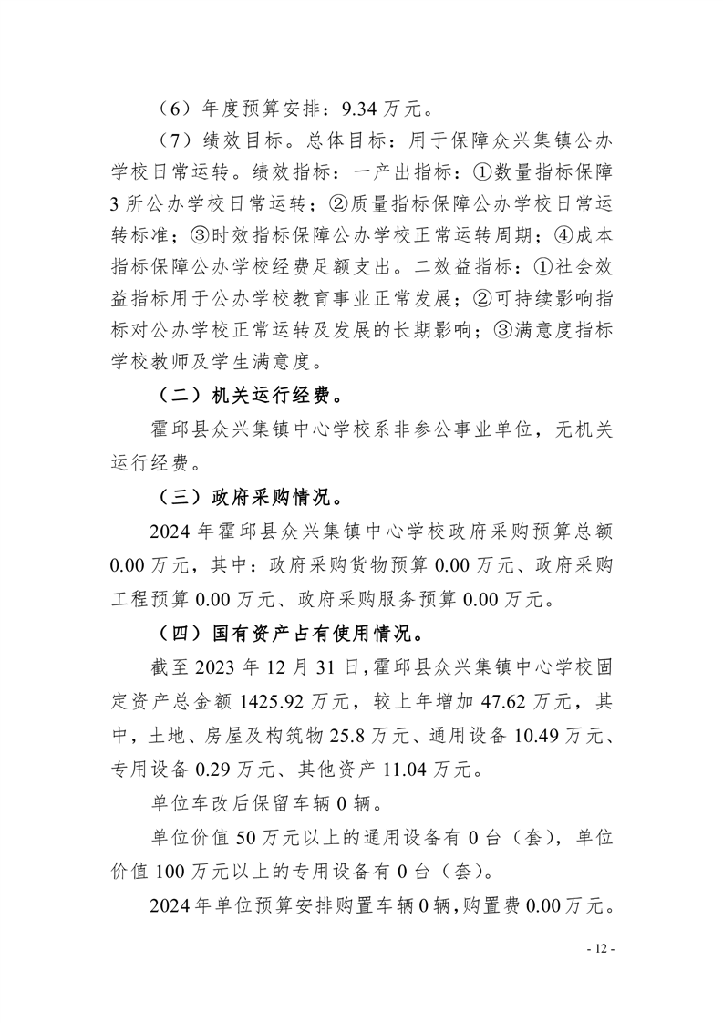 霍邱县众兴集镇中心学校2024 年单位预算公开