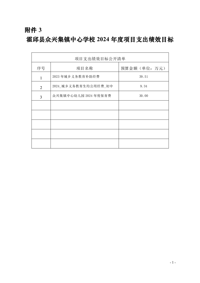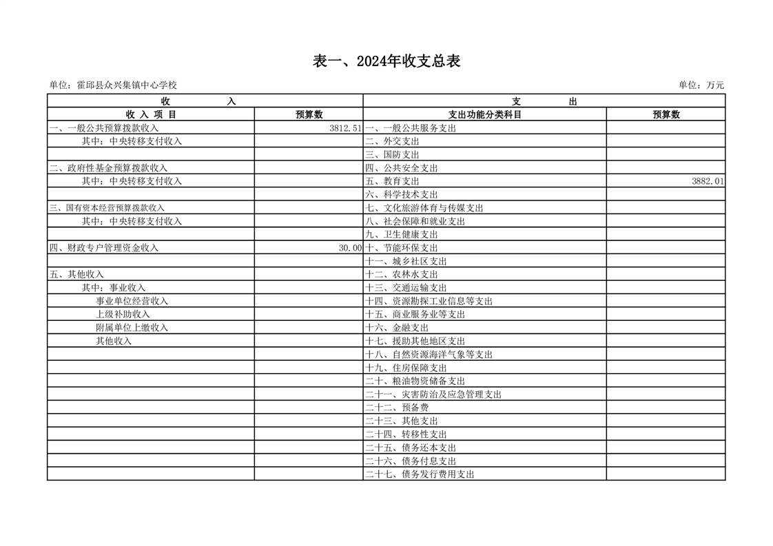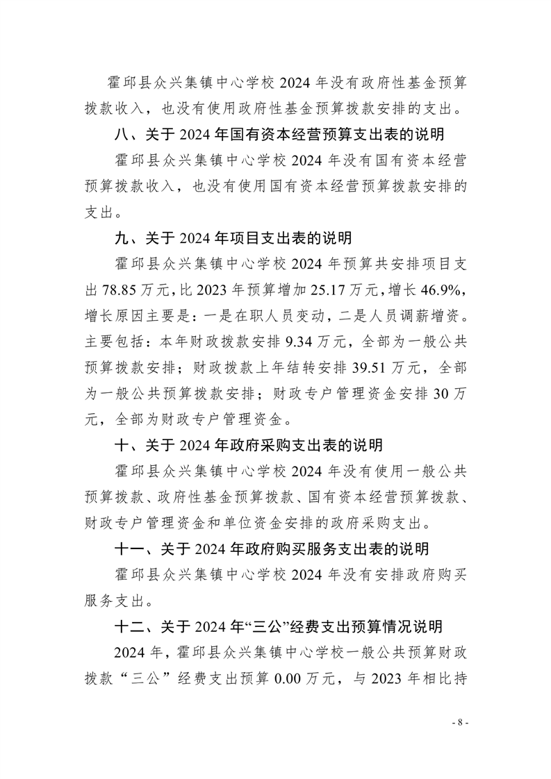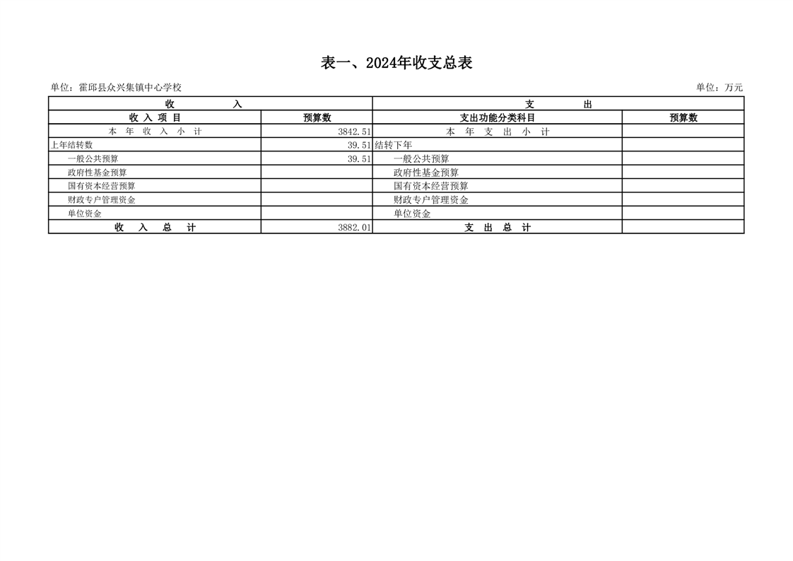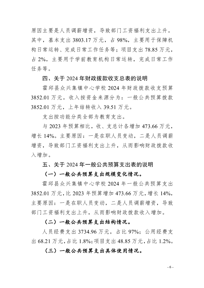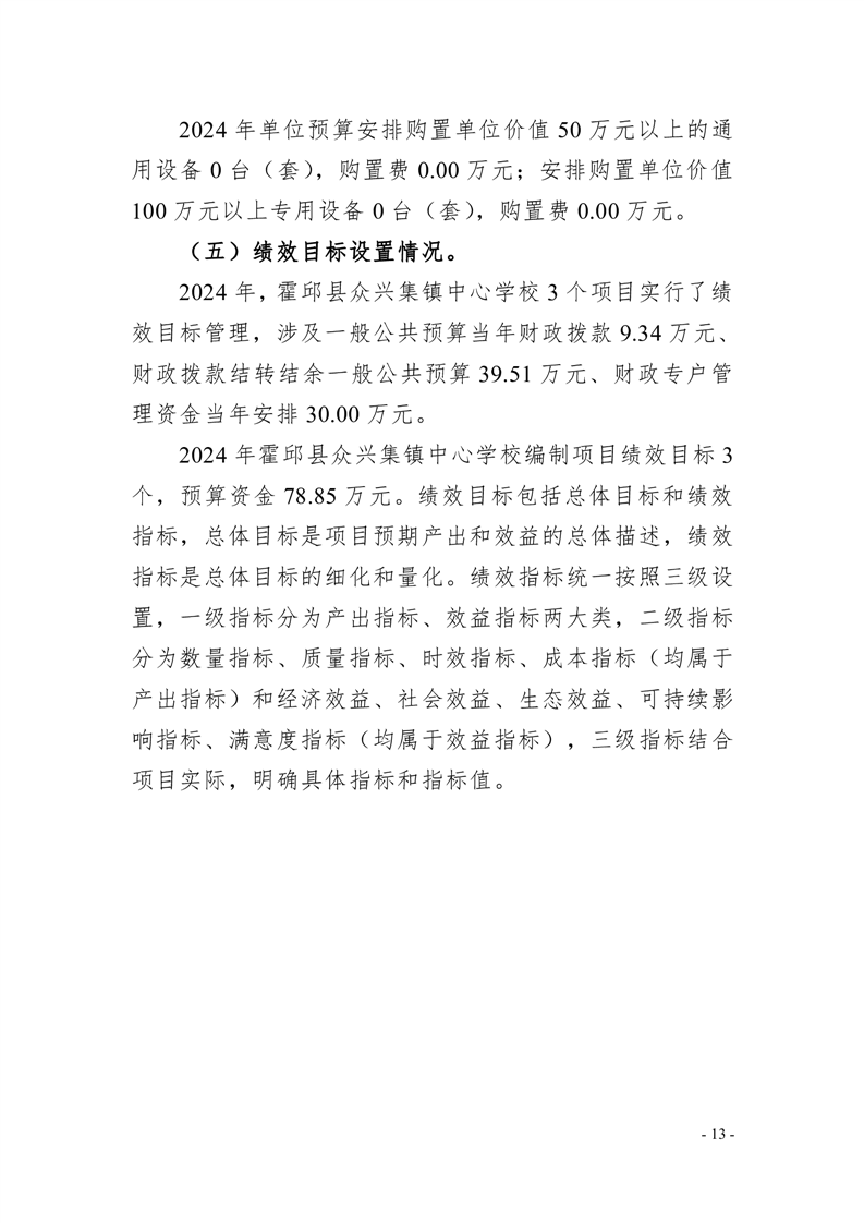 霍邱县众兴集镇中心学校2024 年单位预算公开