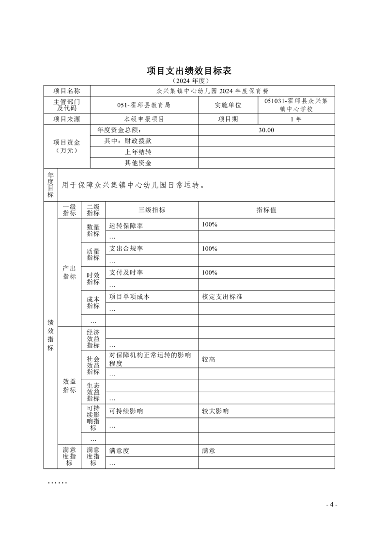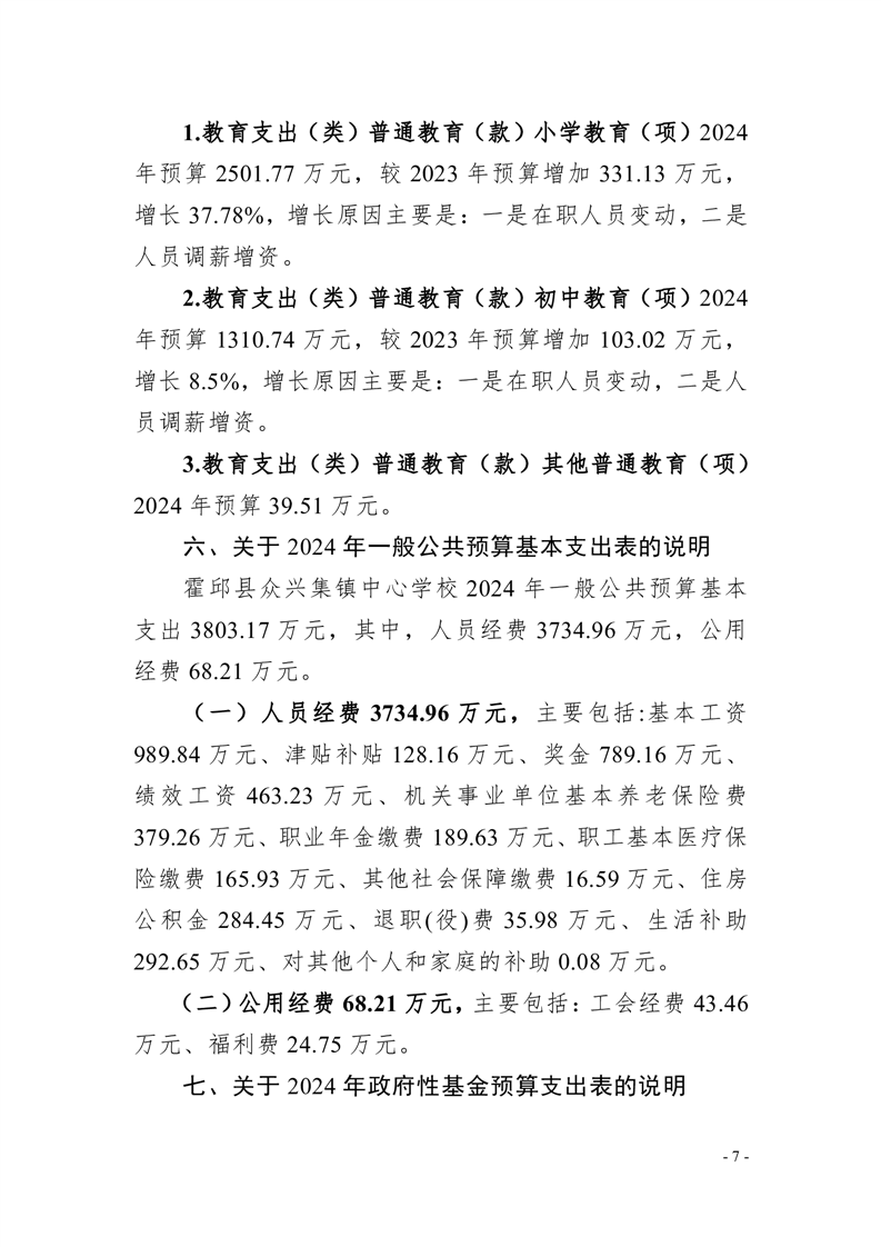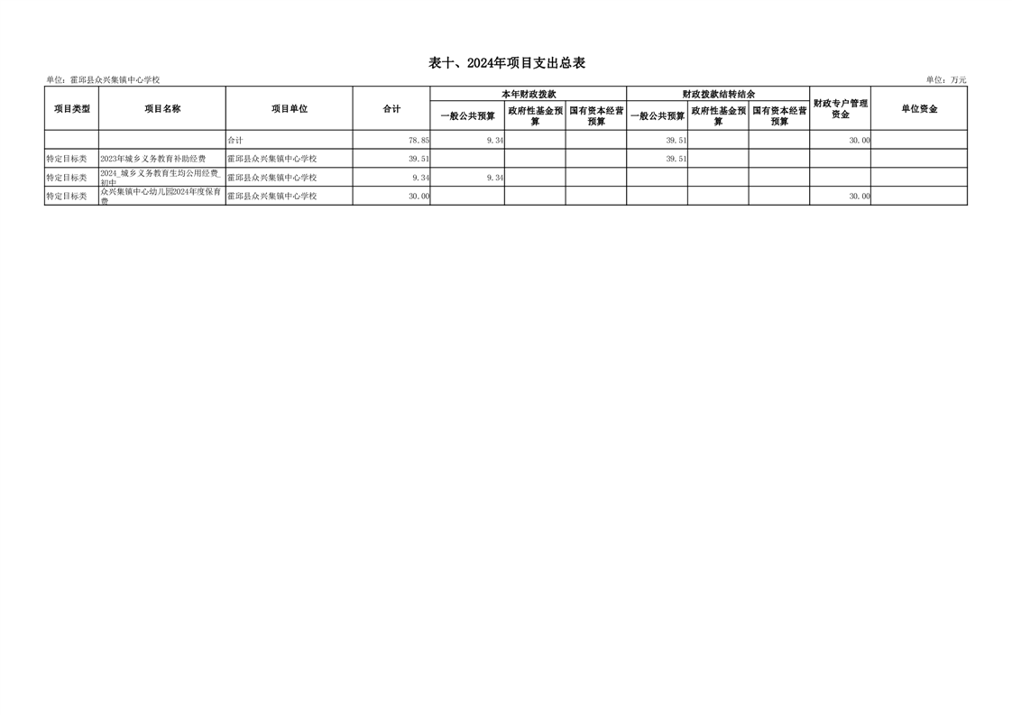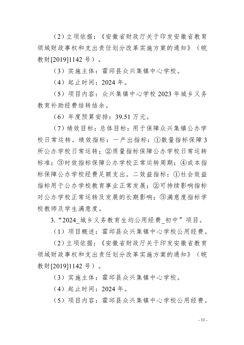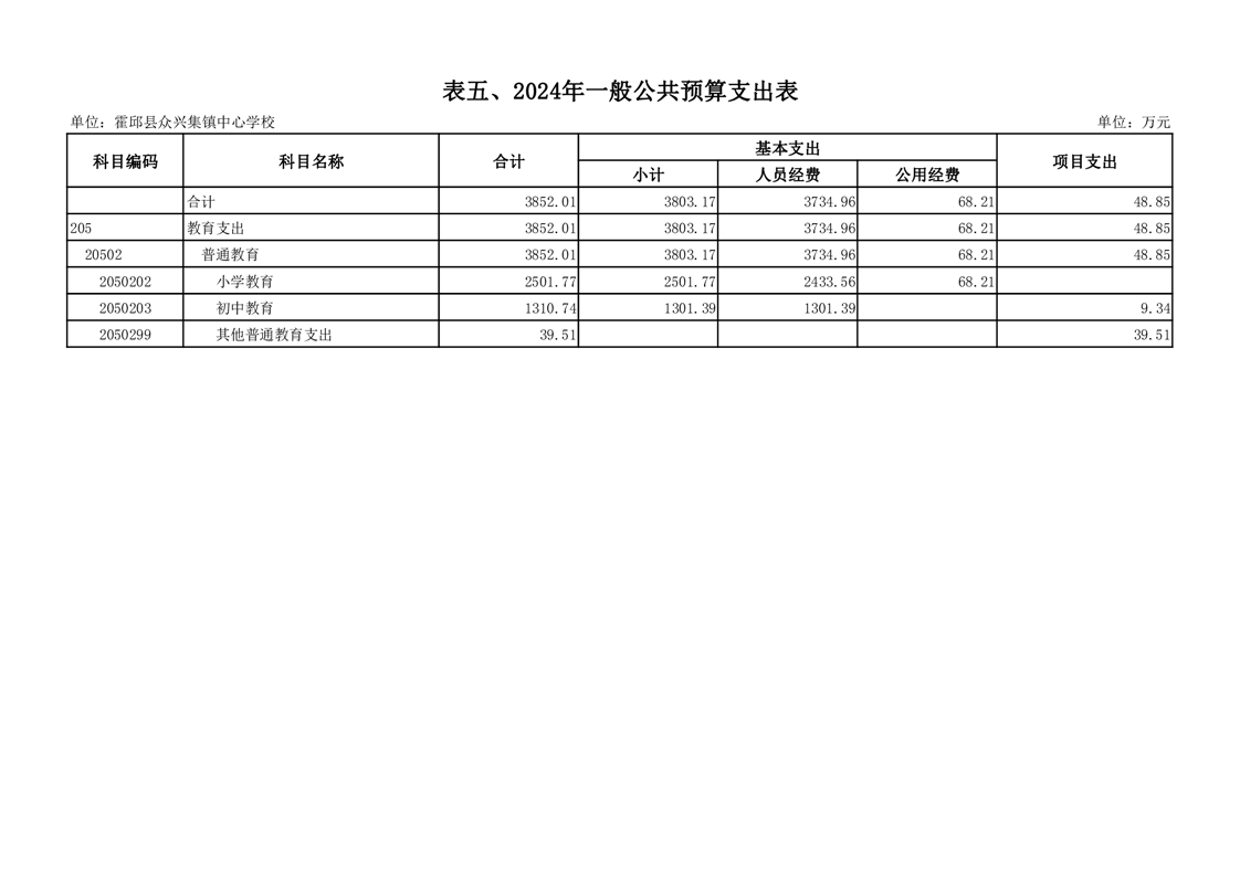 霍邱县众兴集镇中心学校2024 年单位预算公开