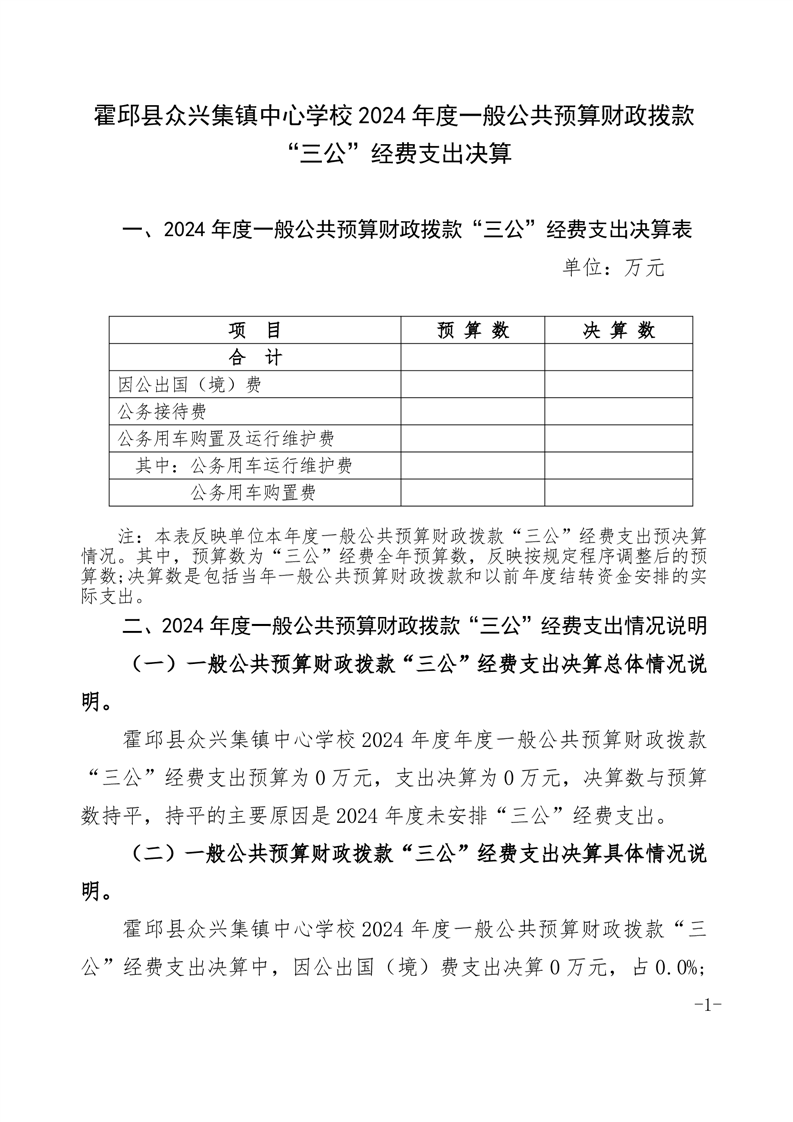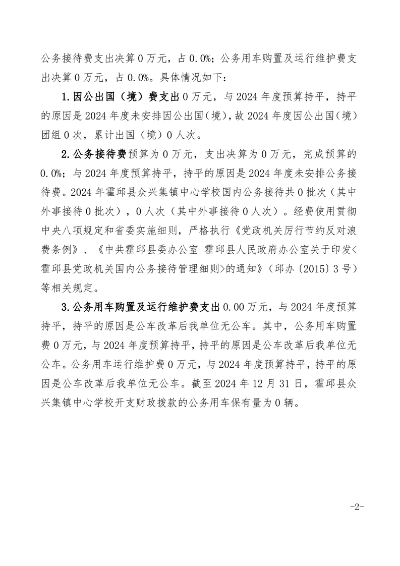 霍邱县众兴集镇中心学校 2024 年度一般公共预算财政拨款“三公”经费支出决算