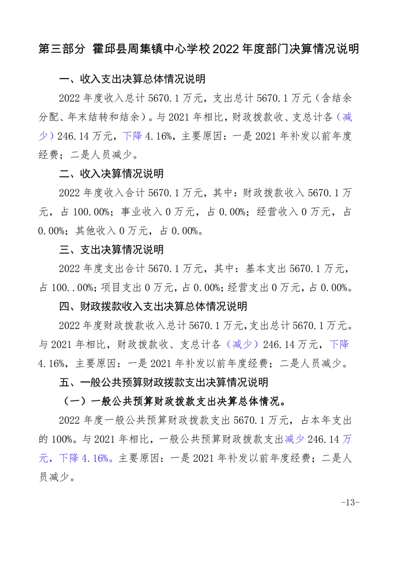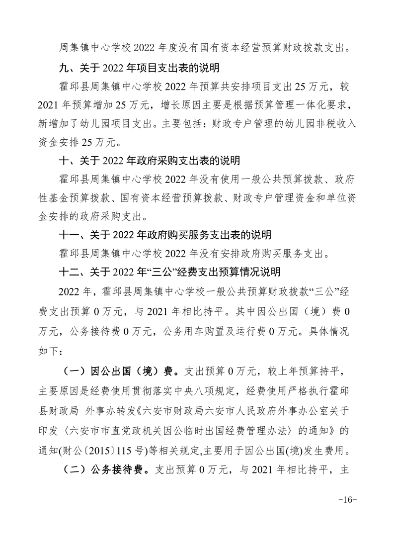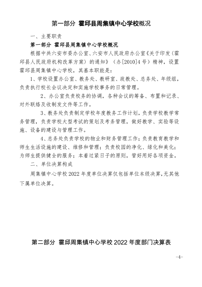霍邱县周集镇中心学校 2022 年度单位决算