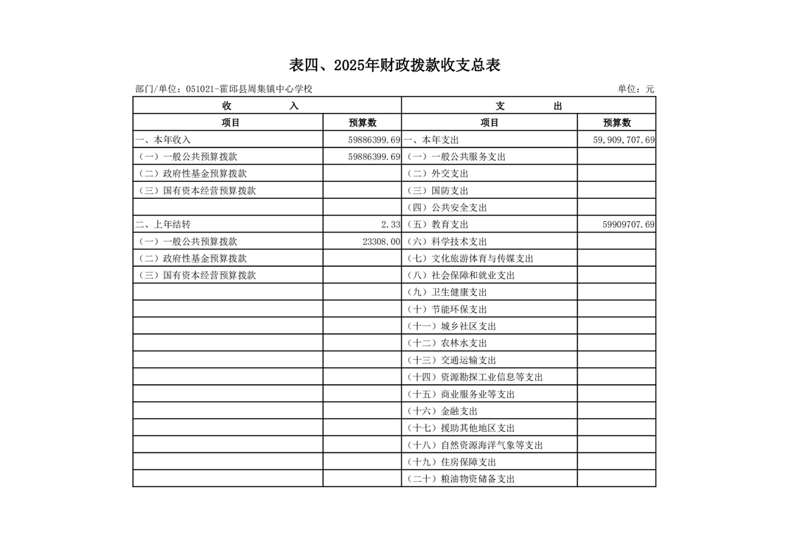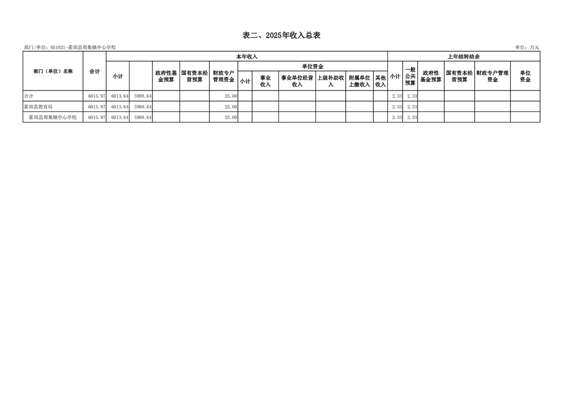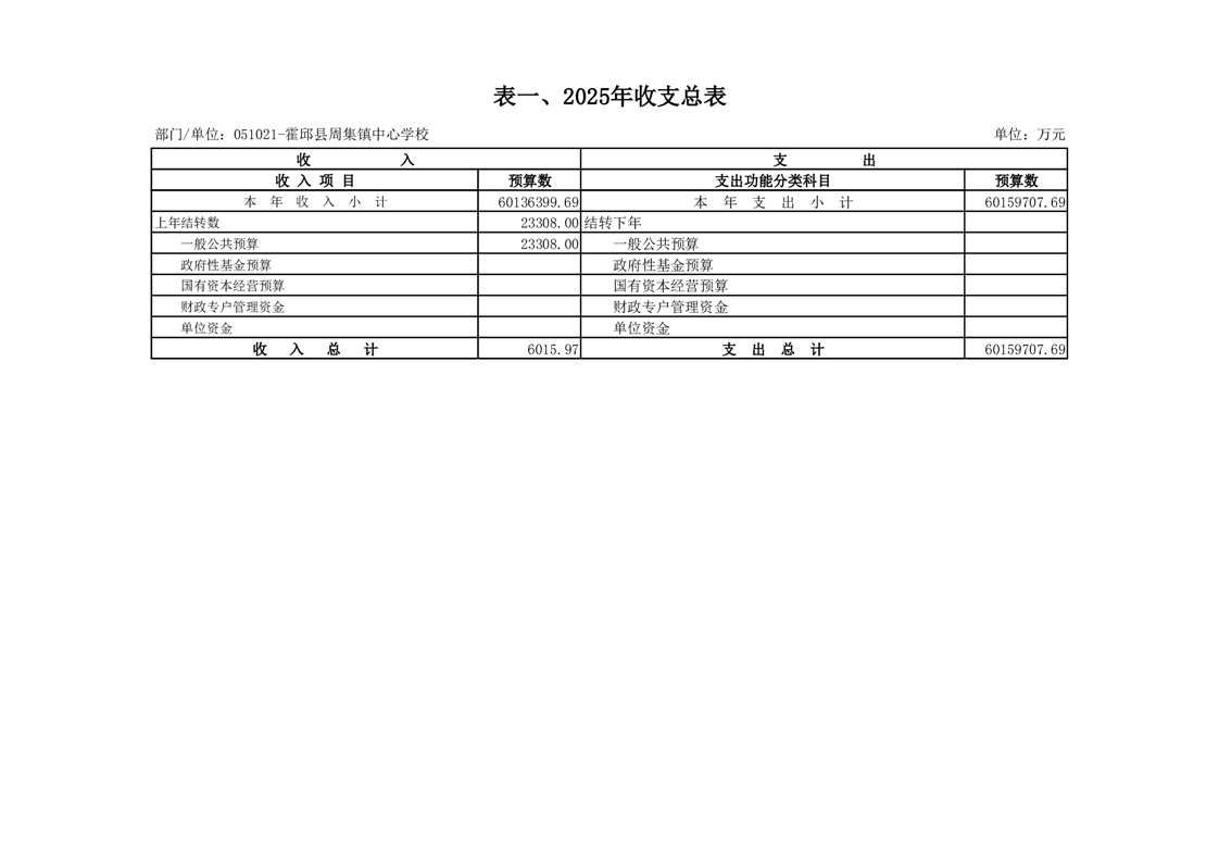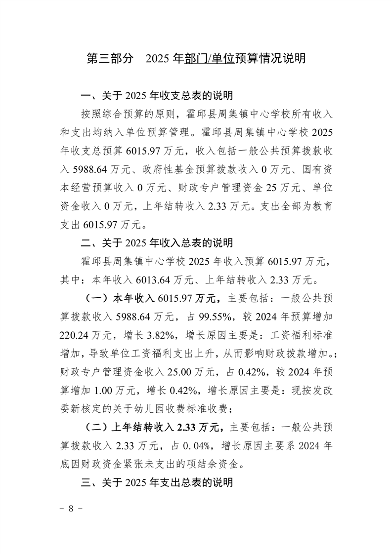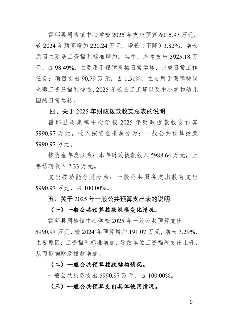 霍邱县周集镇中心学校 2025 年单位预算公开