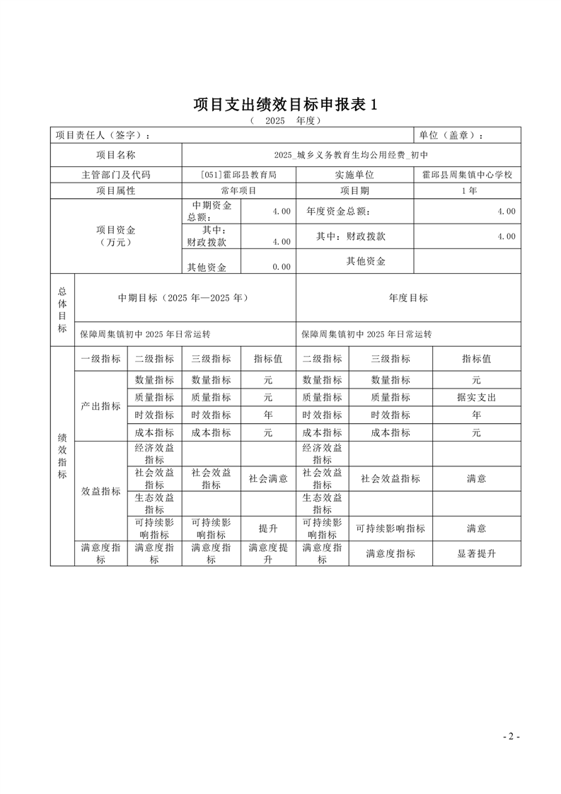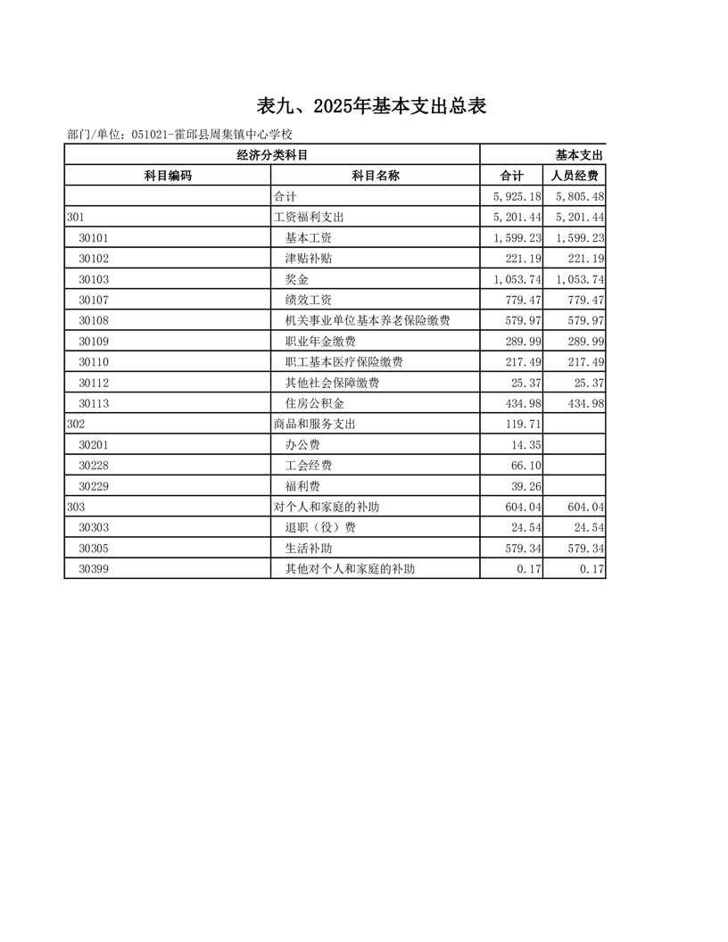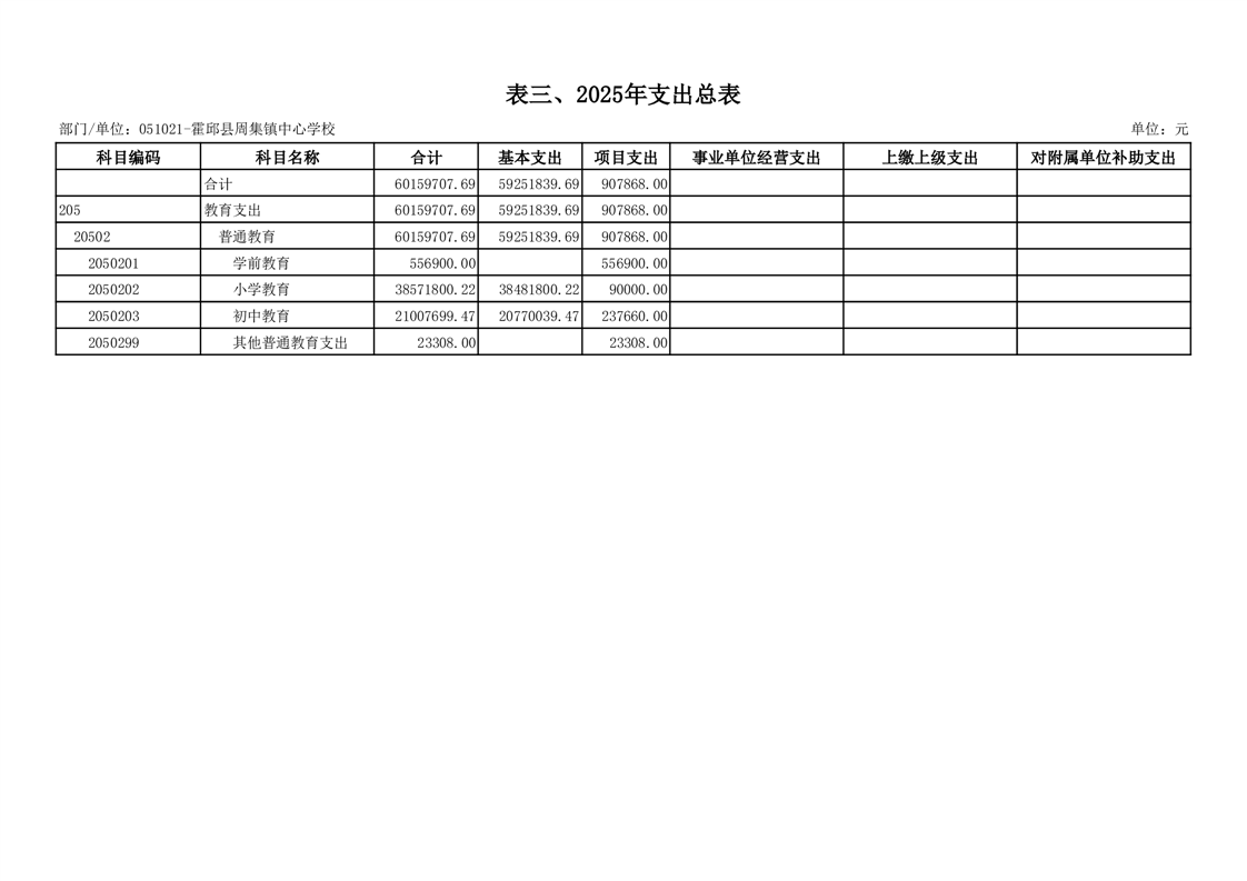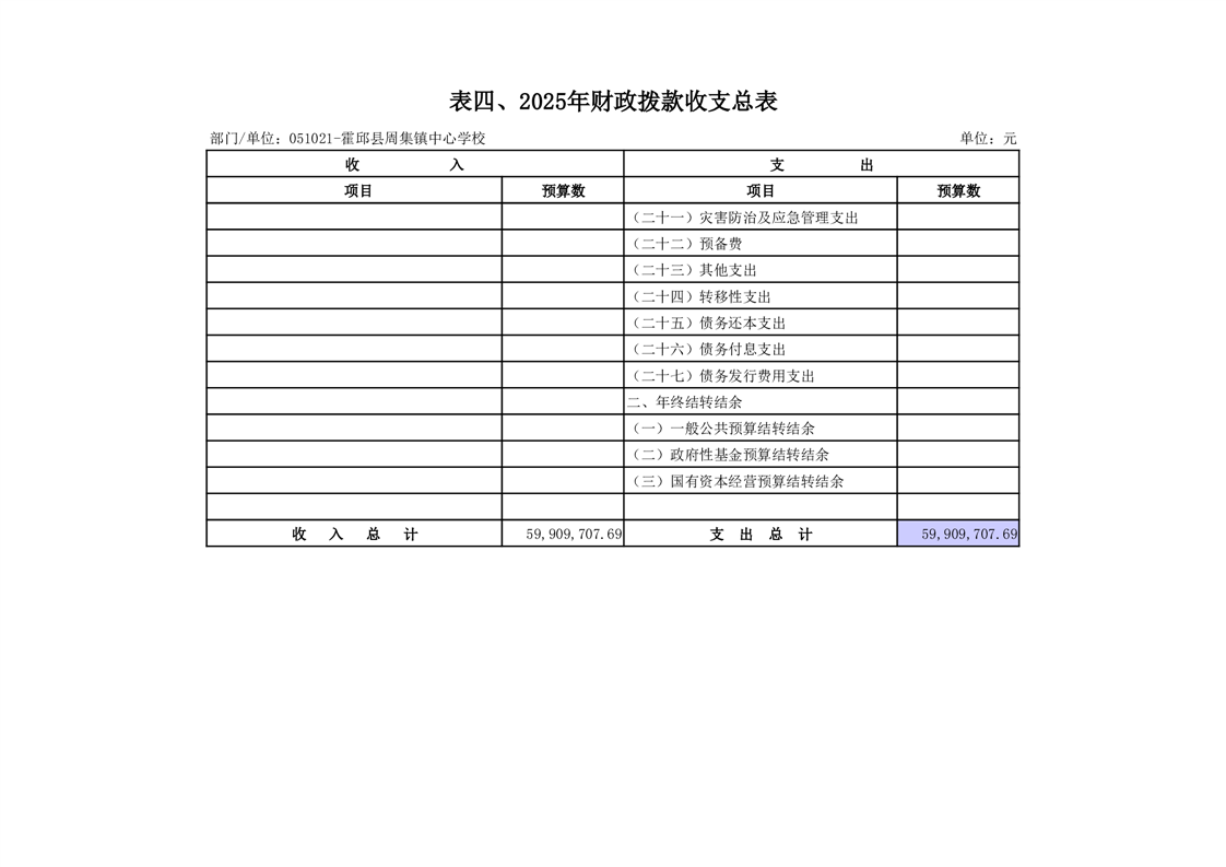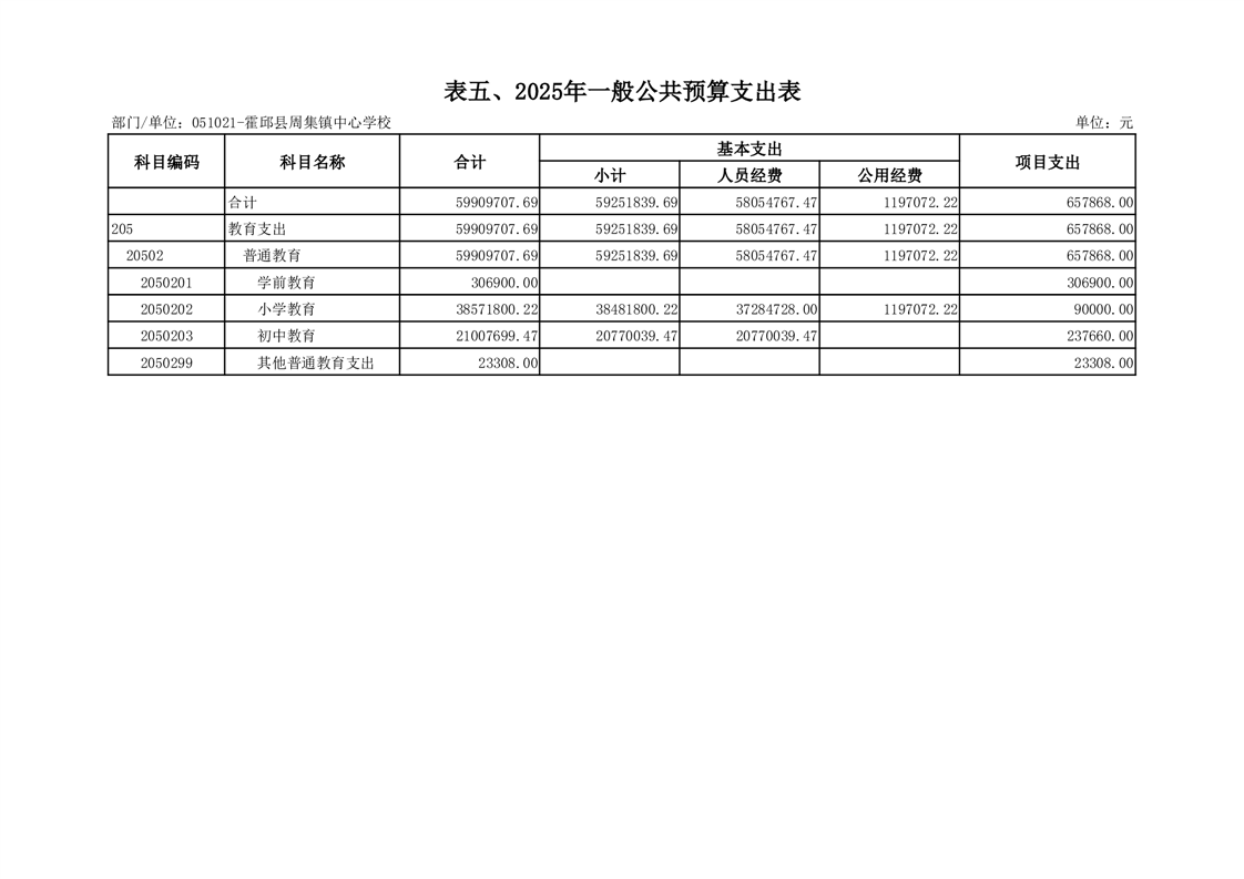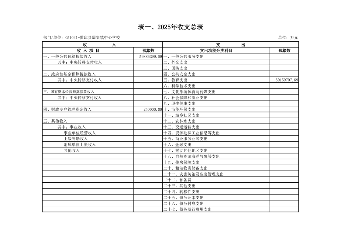霍邱县周集镇中心学校 2025 年单位预算公开