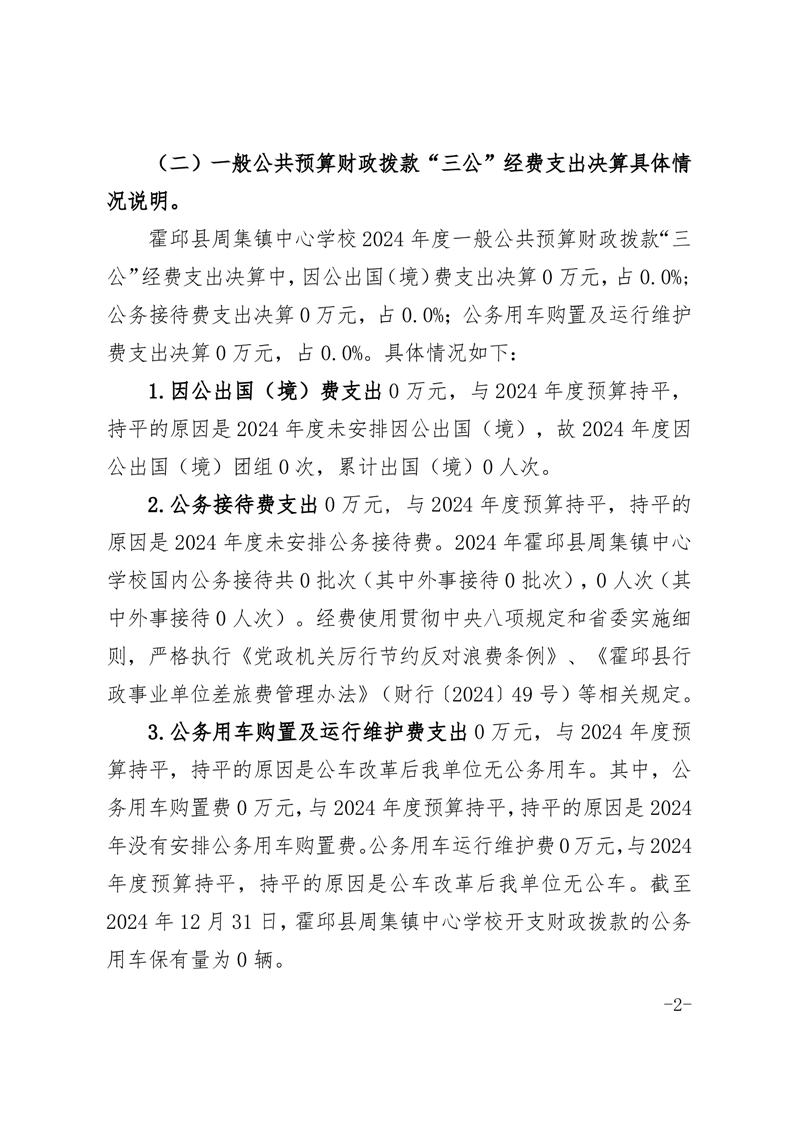 霍邱县周集镇中心学校 2024 年度一般公共预算财政拨款“三公”经费支出决算