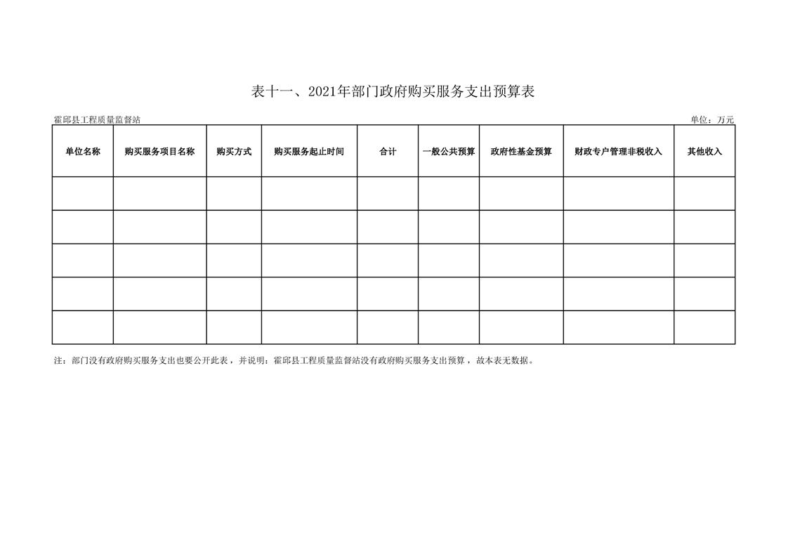 霍邱县工程质量监督站2021年政府性基金支出预算0万元。