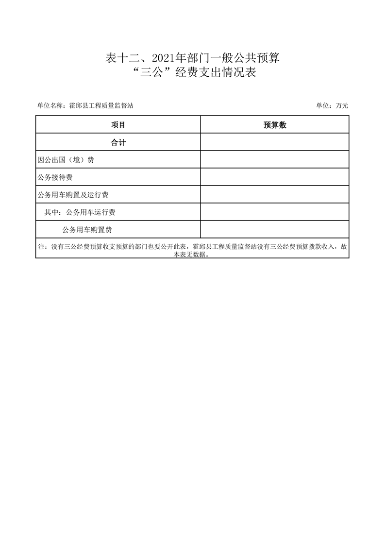 霍邱县工程质量监督站2021年单位预算表由以下14张表格构成,具体表格内容见附表。